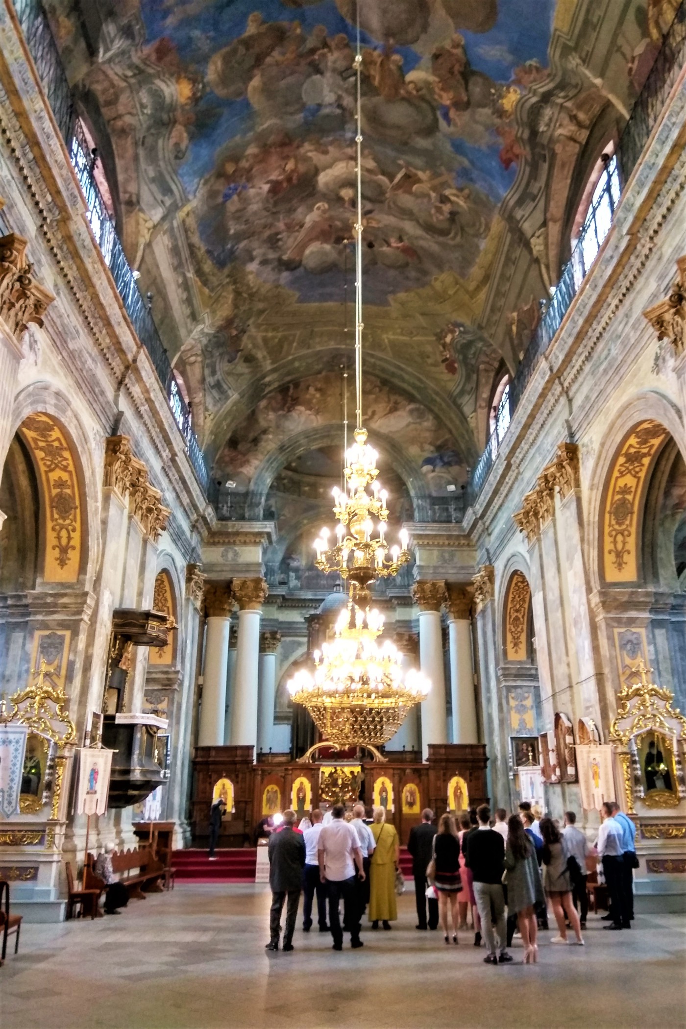 Zanim dotrzemy do Pałacu Gubernatora (pokazanego powyżej) , miniemy jeszcze ciekawą cerkiew. Zaczyna bardzo padać , chowamy się więc do środka zaskoczeni tym co widzimy. Wnętrza są bowiem przepiękne.