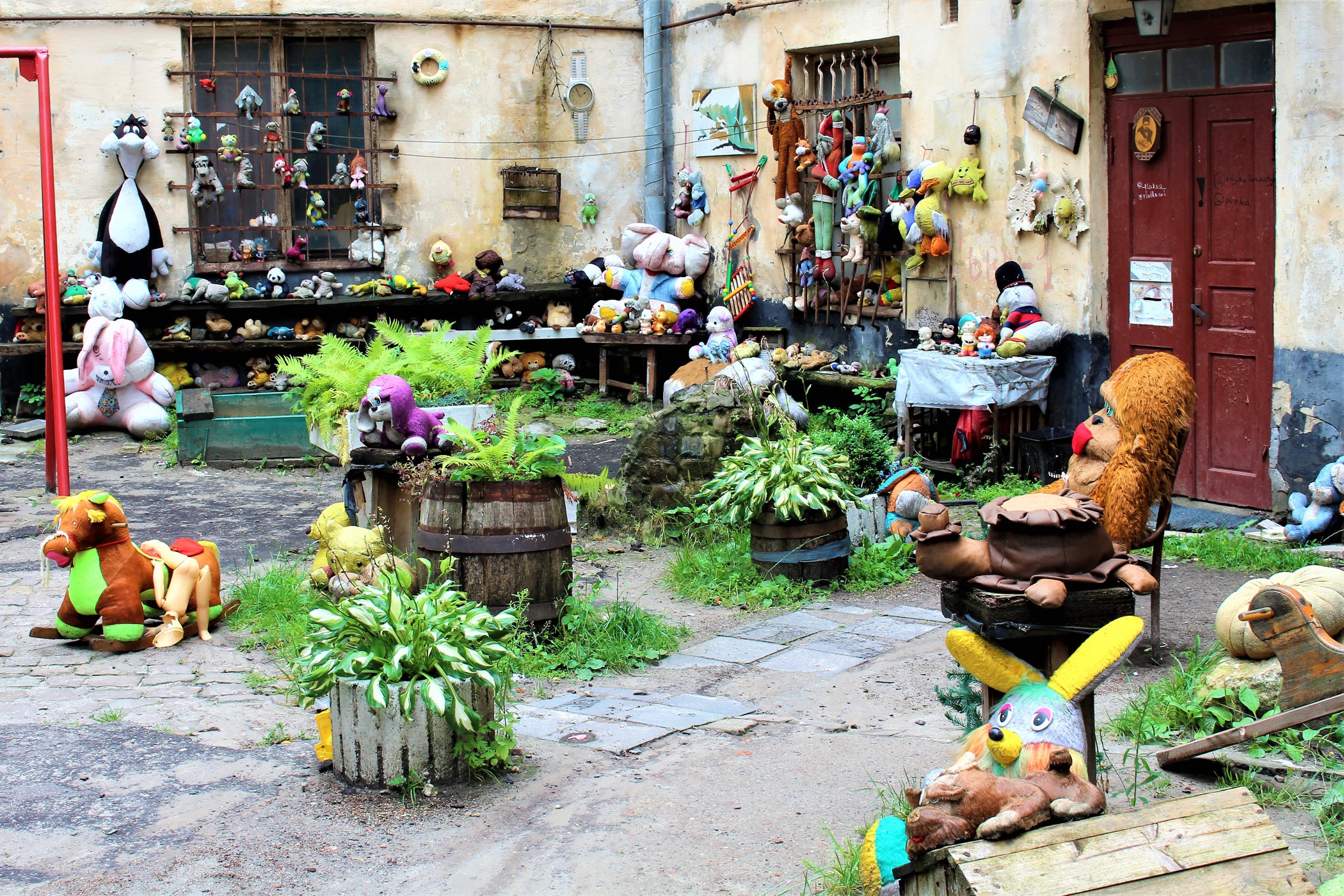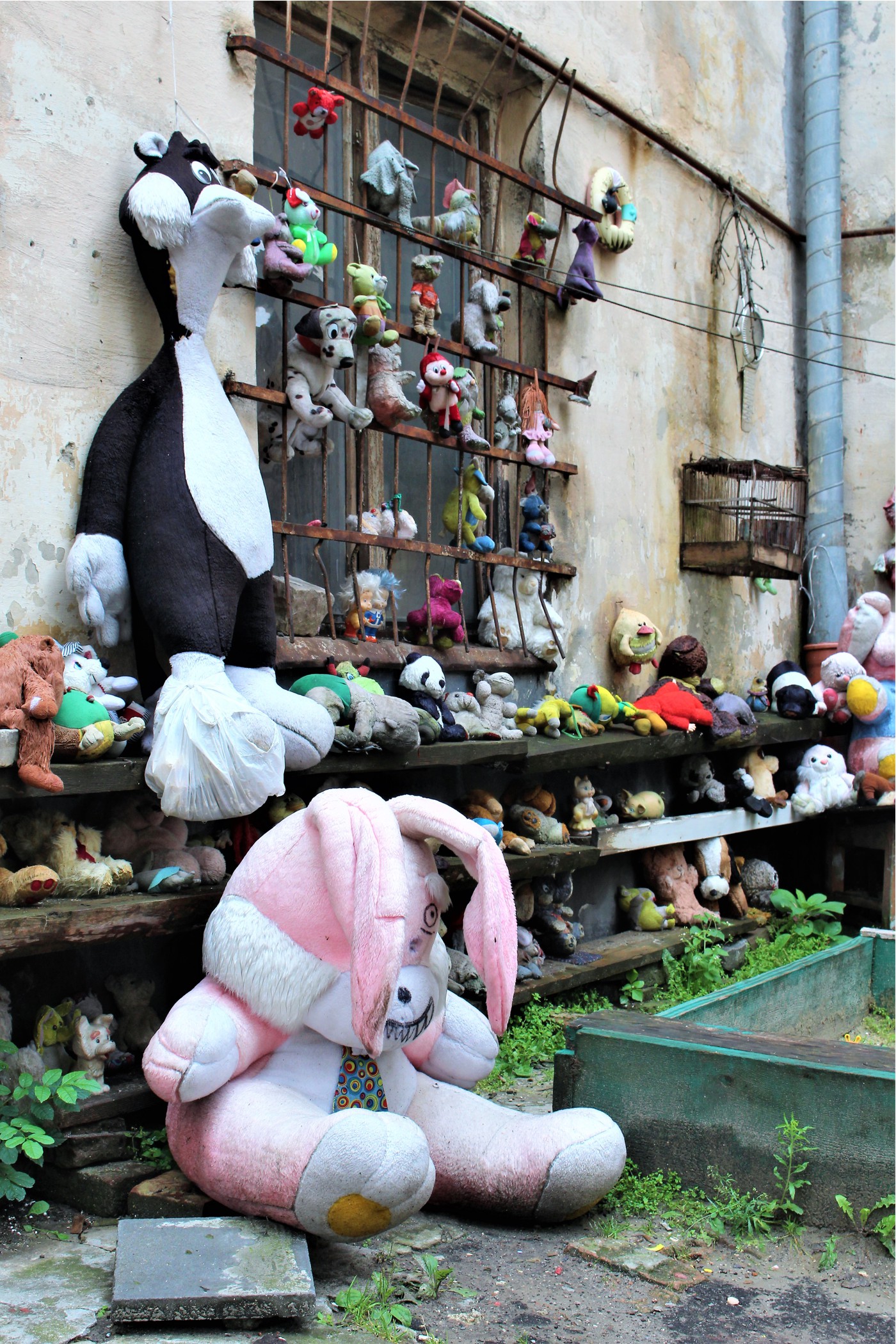 Tuż przy Placu Starego Rynku (zupełnie nie wartym odnotowania) znajduje się kolejne miejsce – to Podwórko Zagubionych Zabawek (oznaczonych nawet na googlemaps) . Nie warto iść tam specjalnie, ale jak już się zwiedza okolice – można zajrzeć i tutaj. Miejsce nieco niepokojące, może wywołać mieszane uczucia i nie każdemu się spodoba.To takie cmentarzysko niechcianych zabawek robiące dość ponure wrażenie podczas deszczu.