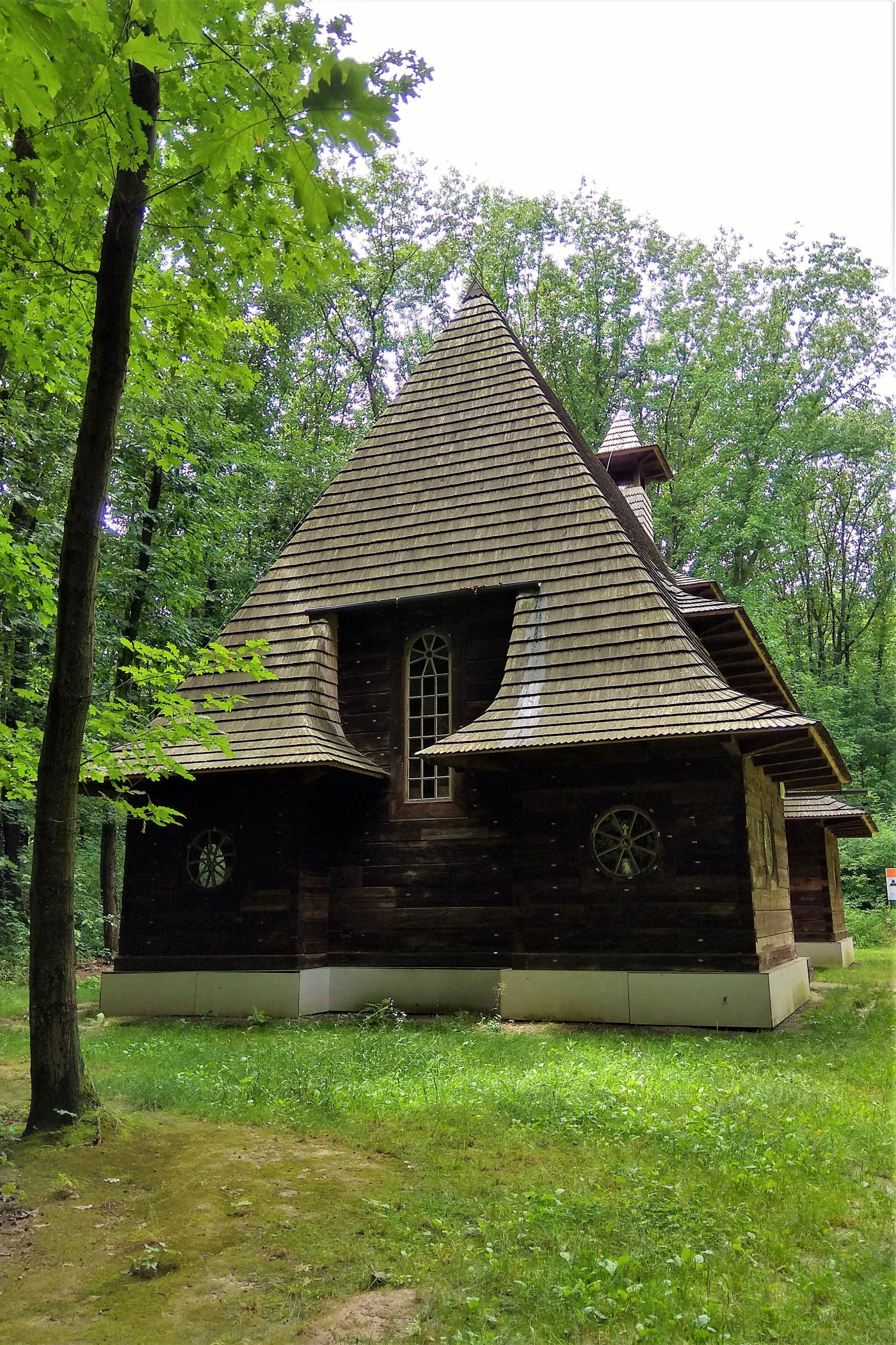 Kościół św. Mikołaja pochodzi z Sokołowa w obwodzi tarnopolskim z 1773 roku. Zbudowany jest z ciosanych dębowych belek. Jego dach i przekrój ścian są pokryte gontem. Wokół kościoła, na wysokości 1,5 metra nad ziemią, znajduje się markiza wsparta na wspornikach, która chroni otwartą dolną część konstrukcji przed opadami. Posiada tradycyjny układ składający się z prezbiterium, nawy głównej i przyczółka, a niska wieża z krzyżem z kutego żelaza zainstalowana na centralnej części kościoła wieńczy strukturę.