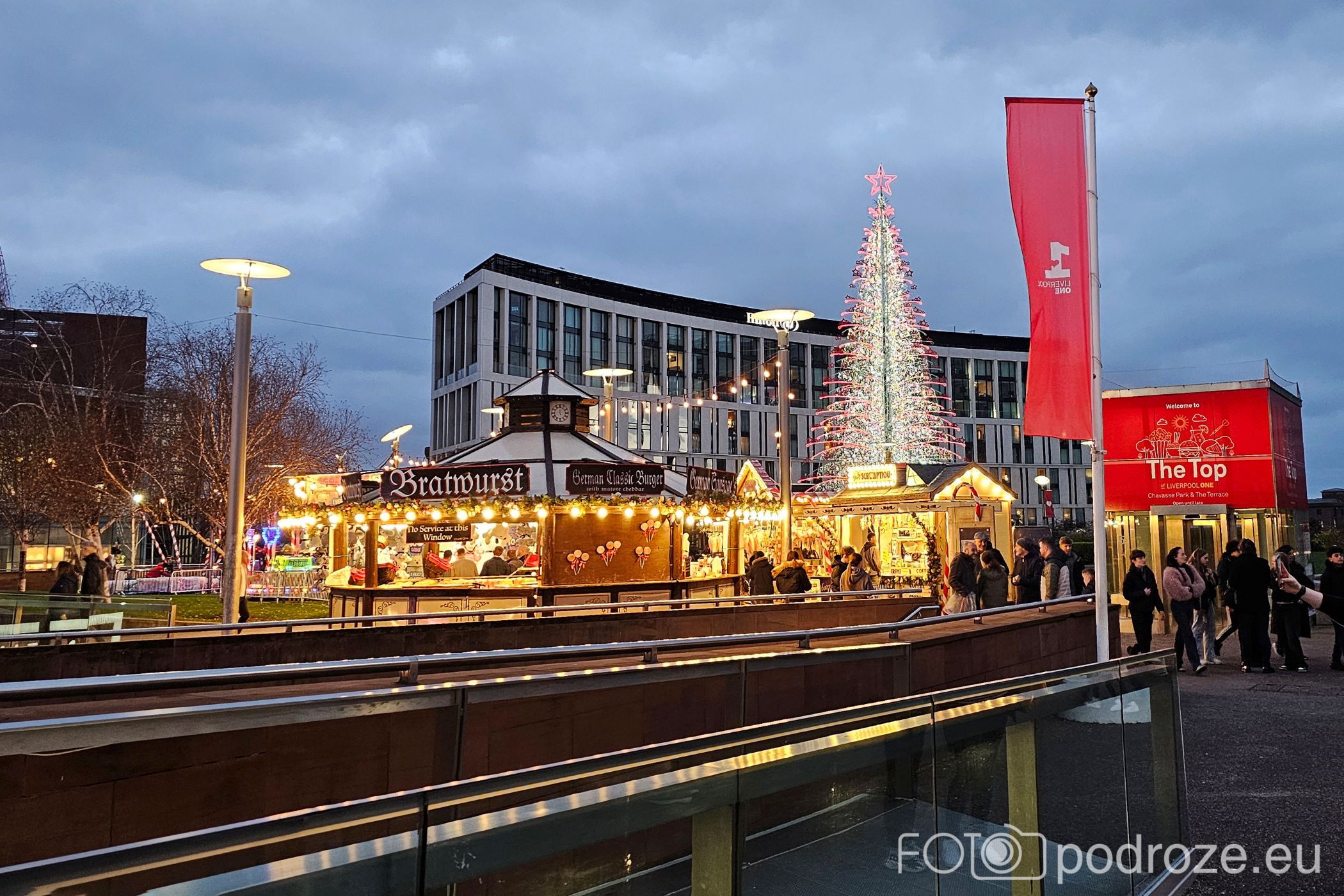 Drugi, dużo mniejszy jarmark znajduje się na dachu, a jego lokalizacja przy końcu dzielnicy handlowej Liverpool One dodaje mu uroku. Tu również zobaczycie dużą choinkę, a także sporo ciekawych budek i namiotów gastronomicznych oraz kilka atrakcji dla dzieciaków.