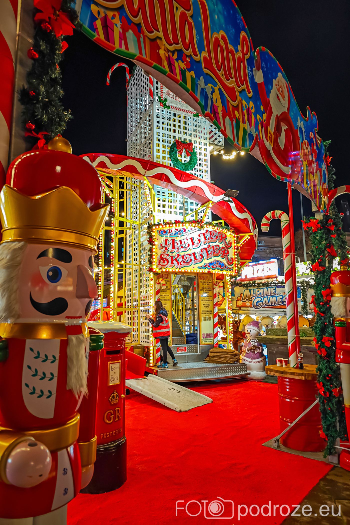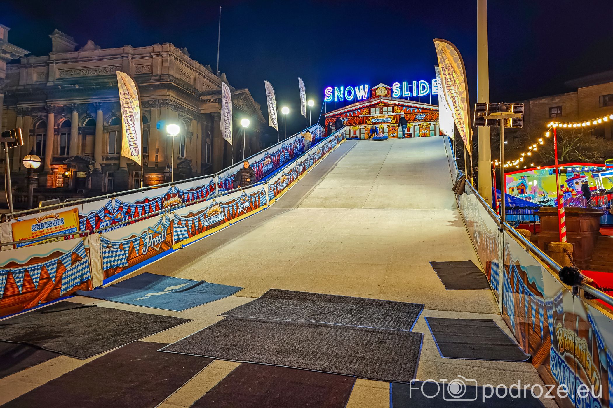 Główny i najważniejszy jarmark usytuowany jest obok historycznego obiektu St George’s Hall, a jego zabudowa tworzy formację w kształcie litery „U” wokół budynku. To tu znajduje się ogromny diabelski młyn, urokliwa karuzela w stylu vintage, ekscytujący zjazd na pontonach oraz kolorowa strefa Santa Land. Z kolei z tyłu obiektu mieści się główna część gastronomiczna, a z frontu prawie wszystkie atrakcje skierowane są do dzieci.
