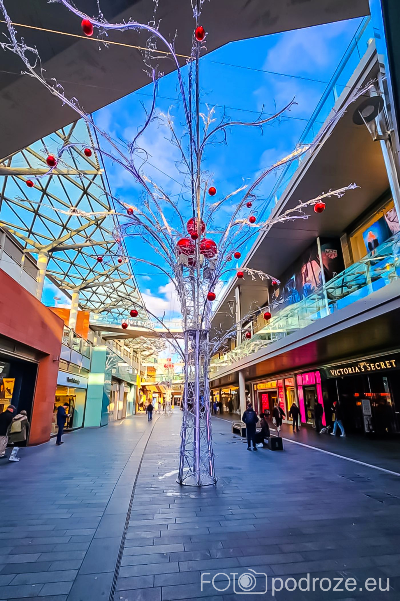 Tuż za nim mijamy schody z małym ogrodem na górze. Tu zaczyna się typowa dzielnica handlowa. Z kolei tuż za ogrodami idąc w kierunku północnym dojdziemy do placu Dolby Square z Monumentem Wiktorii .