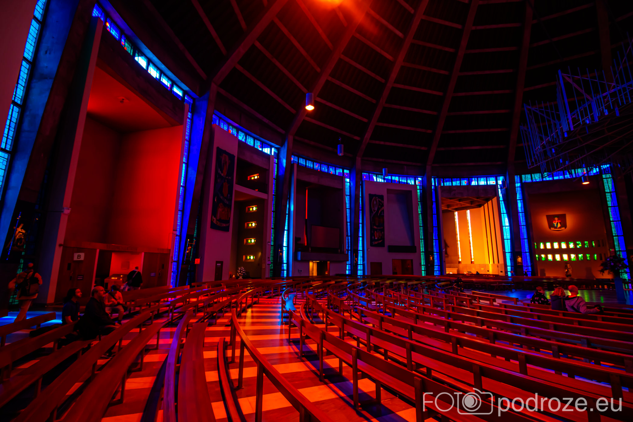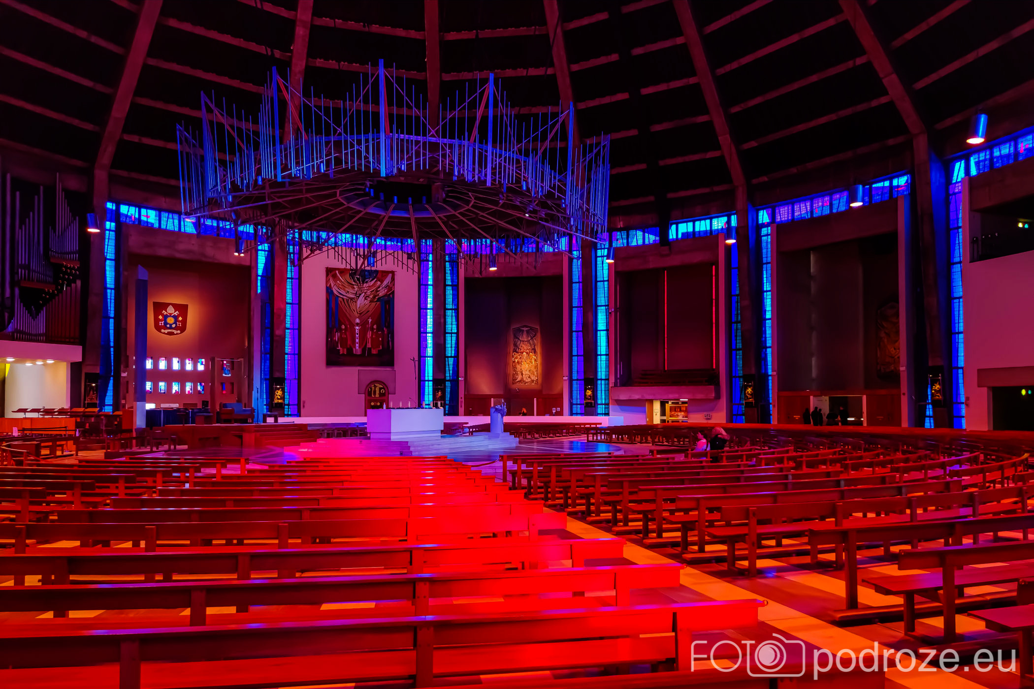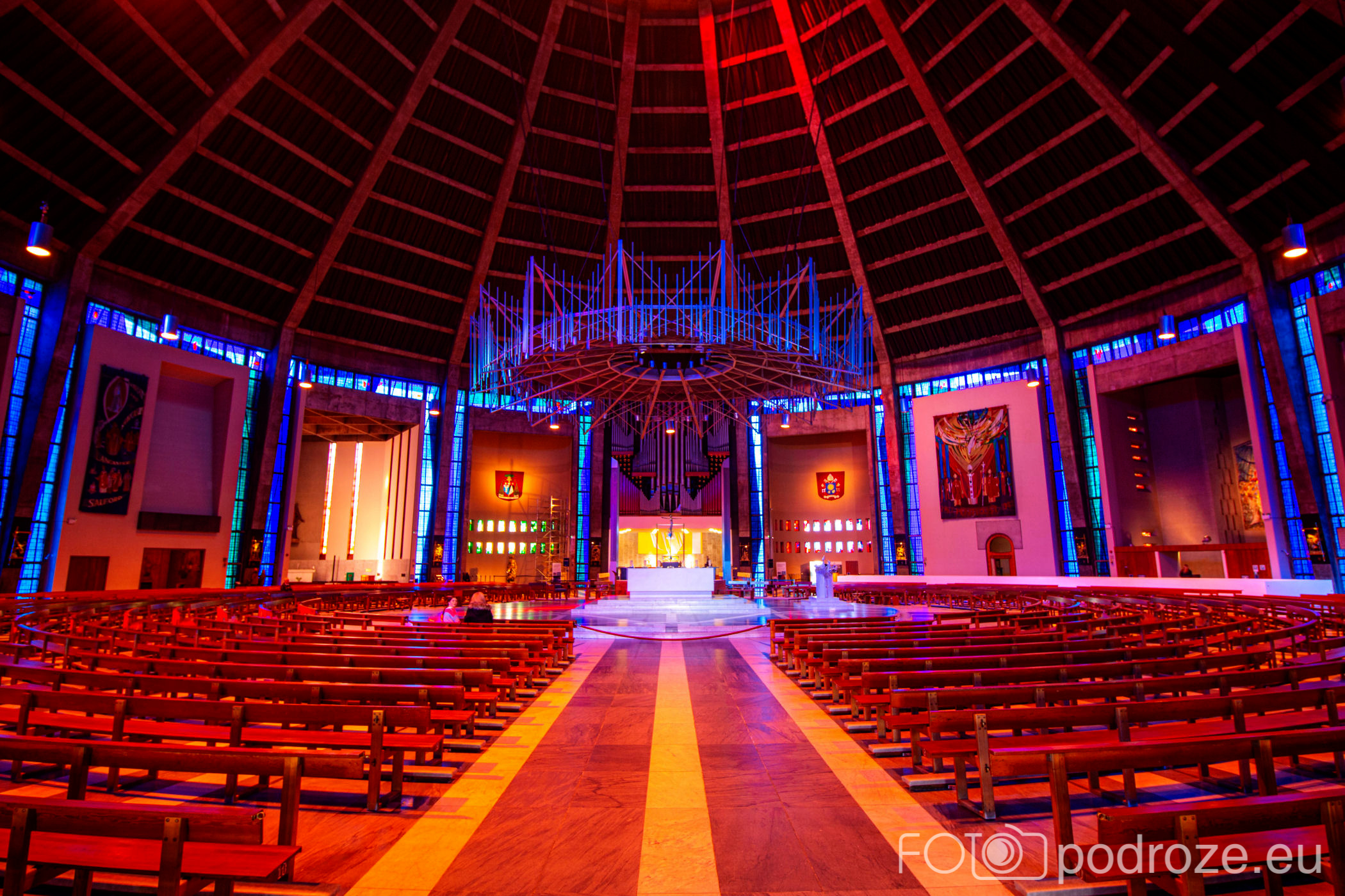 Katedra licząca sobie 1,5 wieku historii znajdująca się w okolicy uniwersytetu to największa katolicka katedra w całej Anglii. Architektura zewnętrzna nie przekonuje, bo to nowoczesny obiekt zbudowany na planie koła z górująca okrągłą wieżą .