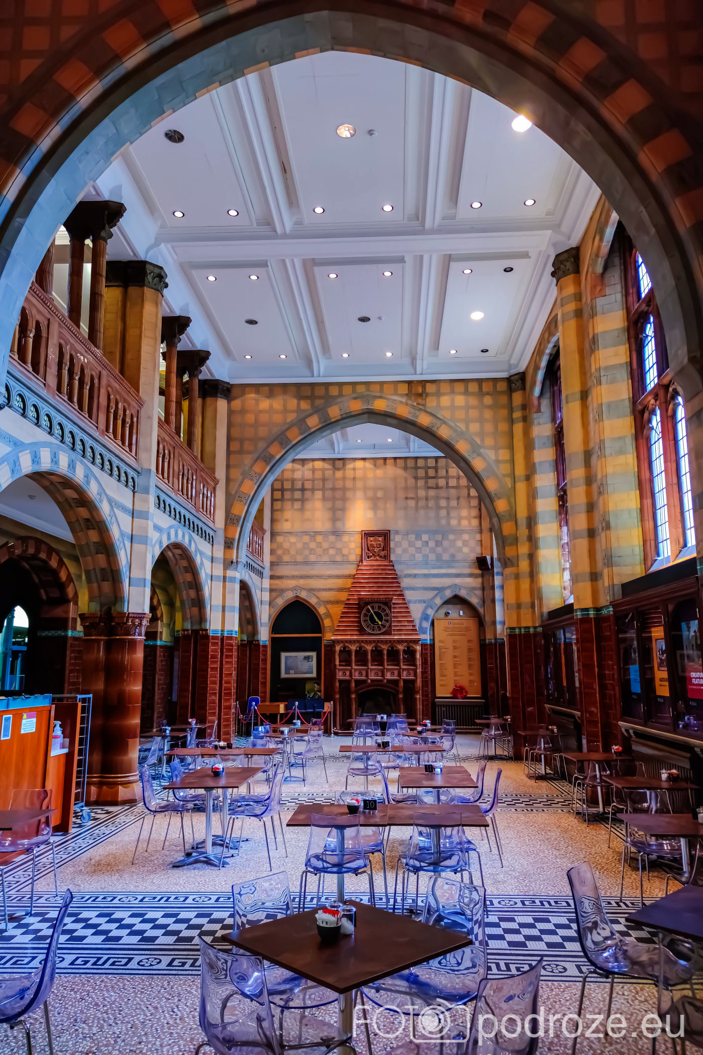 Na środku nawy głównej znajdują się stoliki. Katedralna kawiarnia zachęca aby przy kawie spędzić czas w tym absolutnie zniezywkłym miejscu. Trzeba przyznać, że dla katolika może być to szokujące.