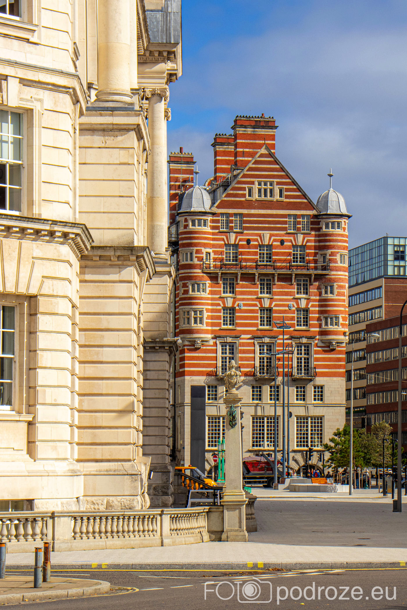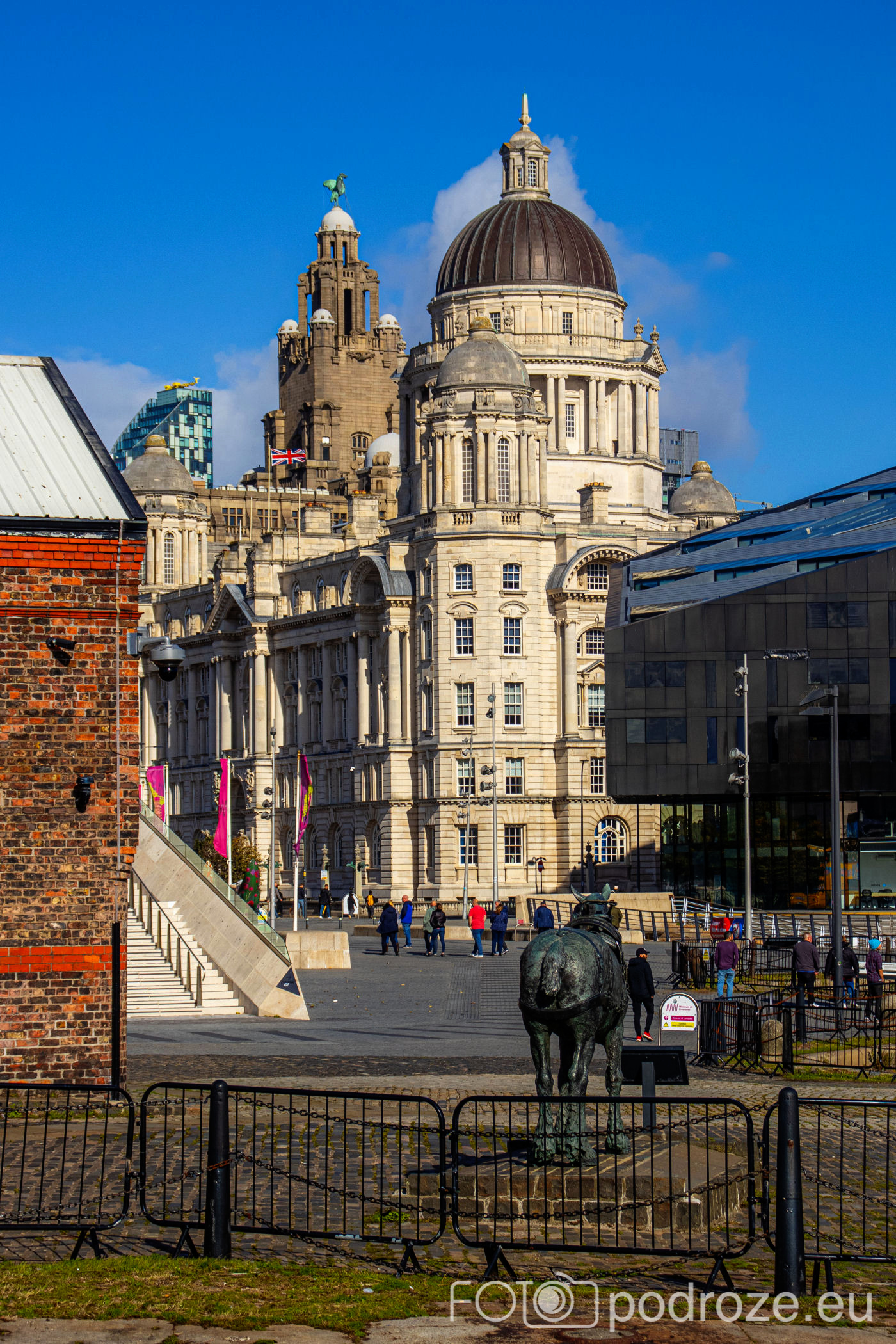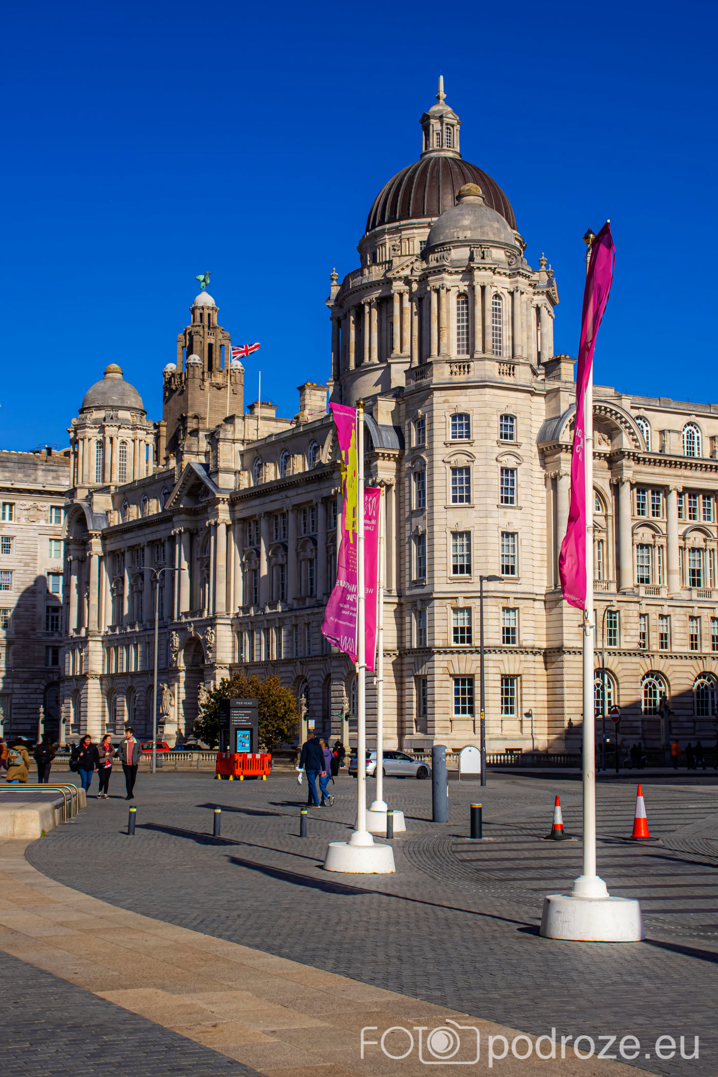 Tuż za budynkiem portowym znajdują się kolejne historyczne obiekty obecnie mieszczące różne funkcje. warto wiedzieć, że na dach budynku Royal Liver można się dostać jeśli chcielibyśmy obejrzeć miasto od tej strony.