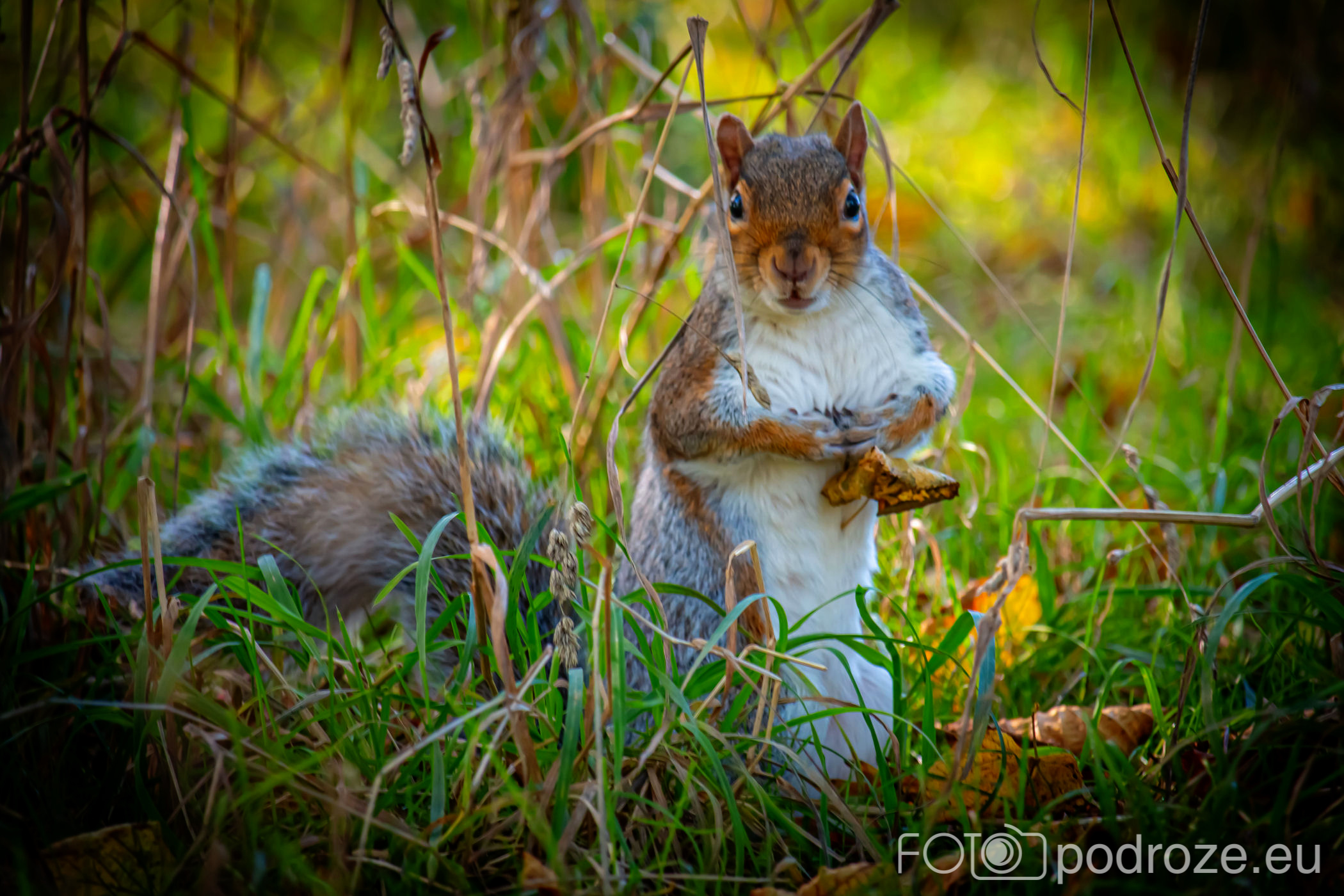 To królestwo wiewiórek szarych i różnorodnego ptactwa w okolicach tutejszych stawów.