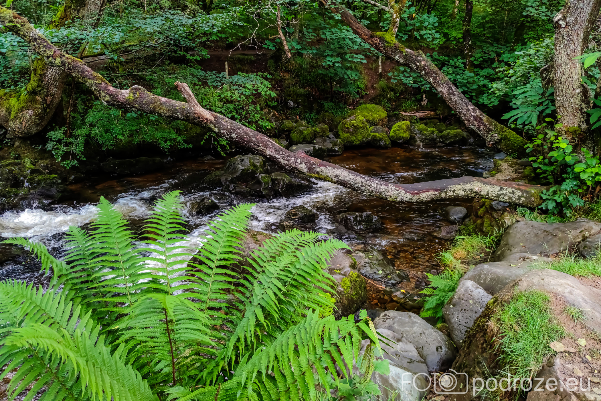 Szlak prowadzi wzdłuż potoku, wokół niesamowita wręcz zieleń . Mamy wrażenie jakbyśmy się znaleźli w lesie deszczowym. Szumiący potok, spadający miejscami małymi kaskadami cudownie brzęczy w uszach. Uwielbiam takie miejsca.