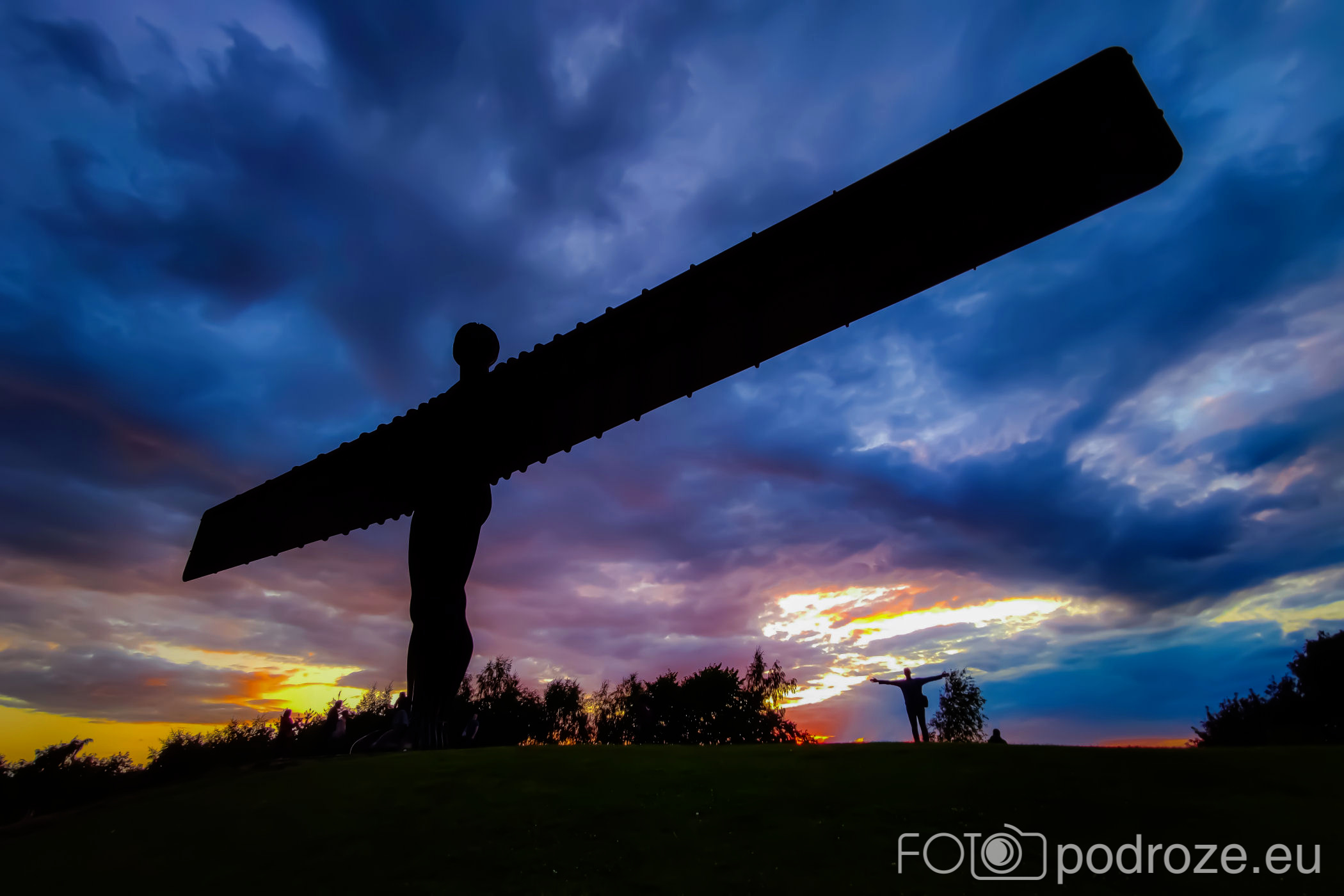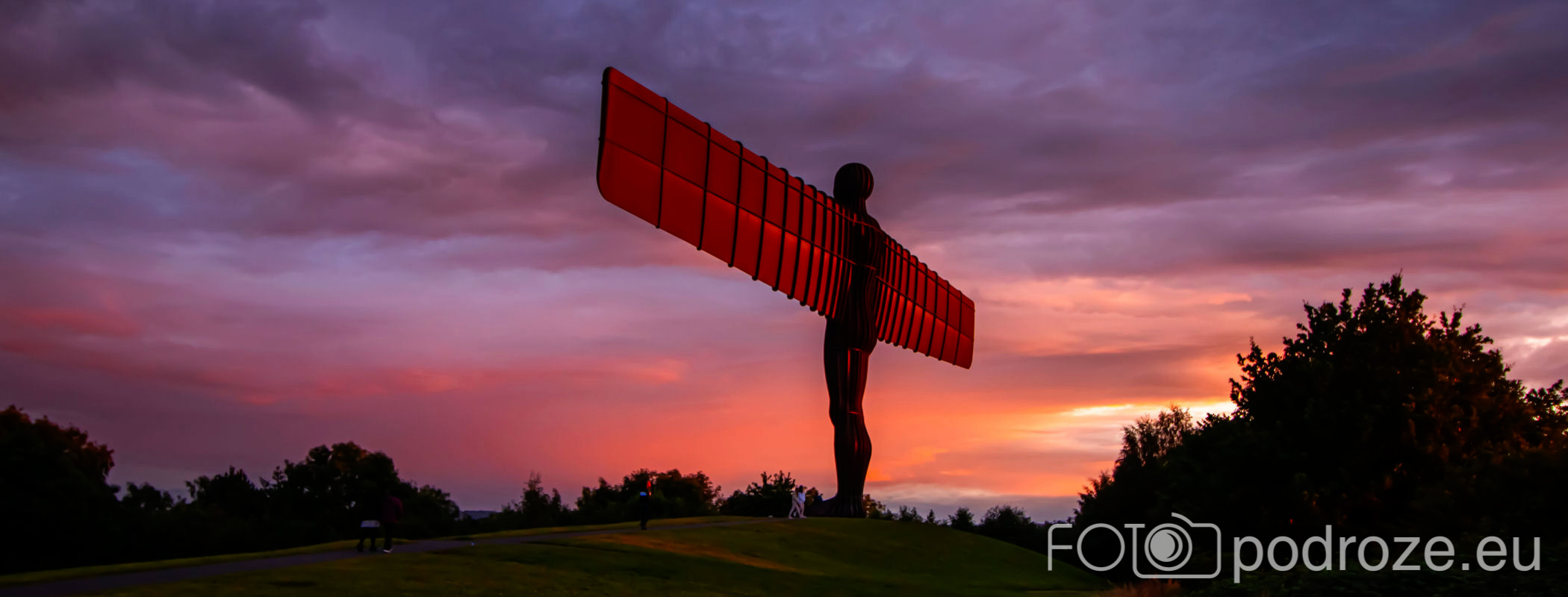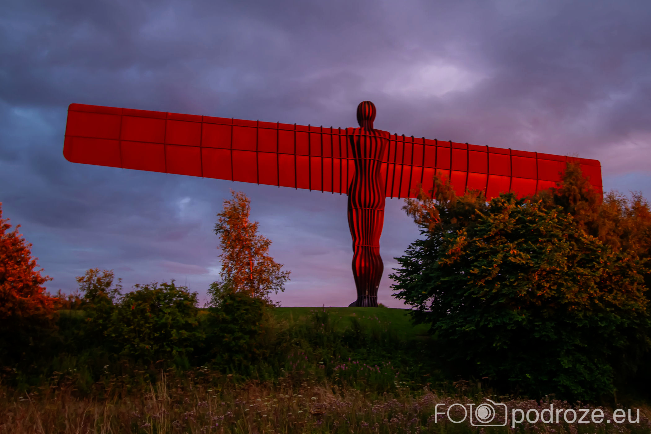Zanim wjedziemy do miasta Newcastle upon Tyne zatrzymujemy się na zachód słońca w jednym fantastycznym miejscu. Przy głównej autostradzie A1 znajduje się ogromy pomnik Angel of the North . Pomysł wybudowania tego gigantycznego anioł wziął się ze zwykłej gigantomanii. Rada miejska Gateshead postanowiła sprawić miastu coś wielkiego, co było by znakiem rozpoznawczym regionu. Rozpisano konkurs w efekcie którego w 1998 roku powstało dzieło rzeźbiarza Antony’ego Gormley’a.