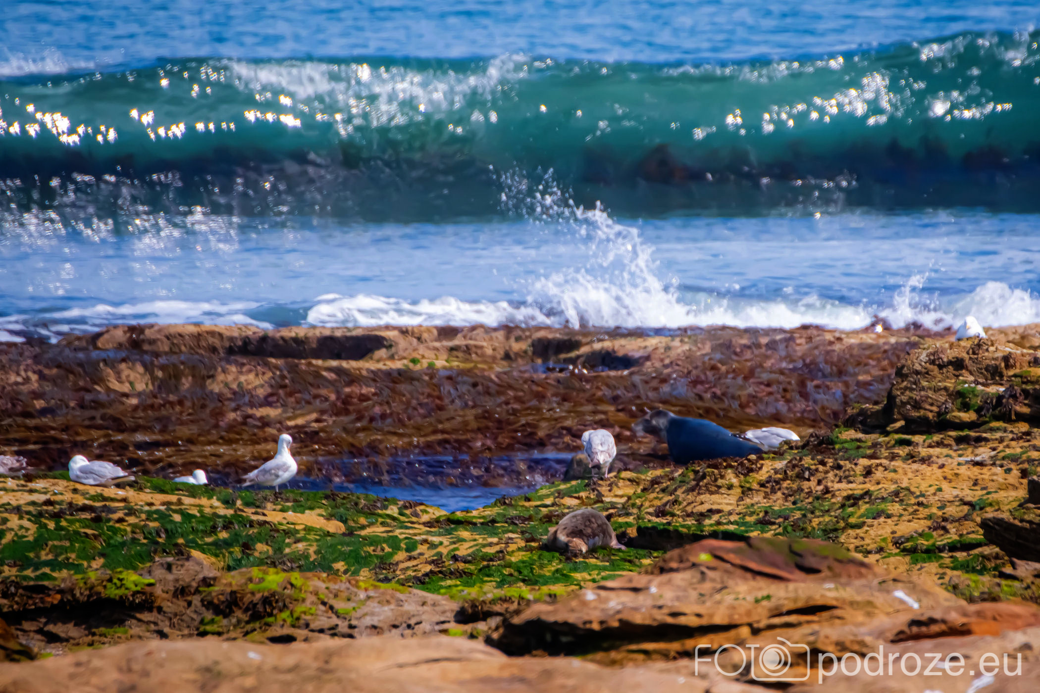 Aby dojrzeć kolonie foczek wylegujących się tu na skałach, trzeba wejść na górę latarni, z dolnego poziomu pod latarnią widoki są też fantastyczne, ale zwierzaków już nie zobaczycie.