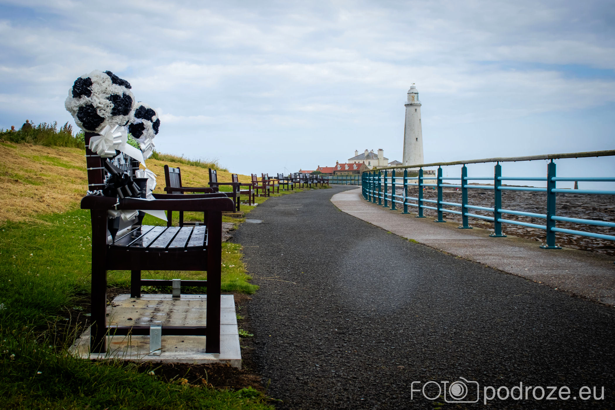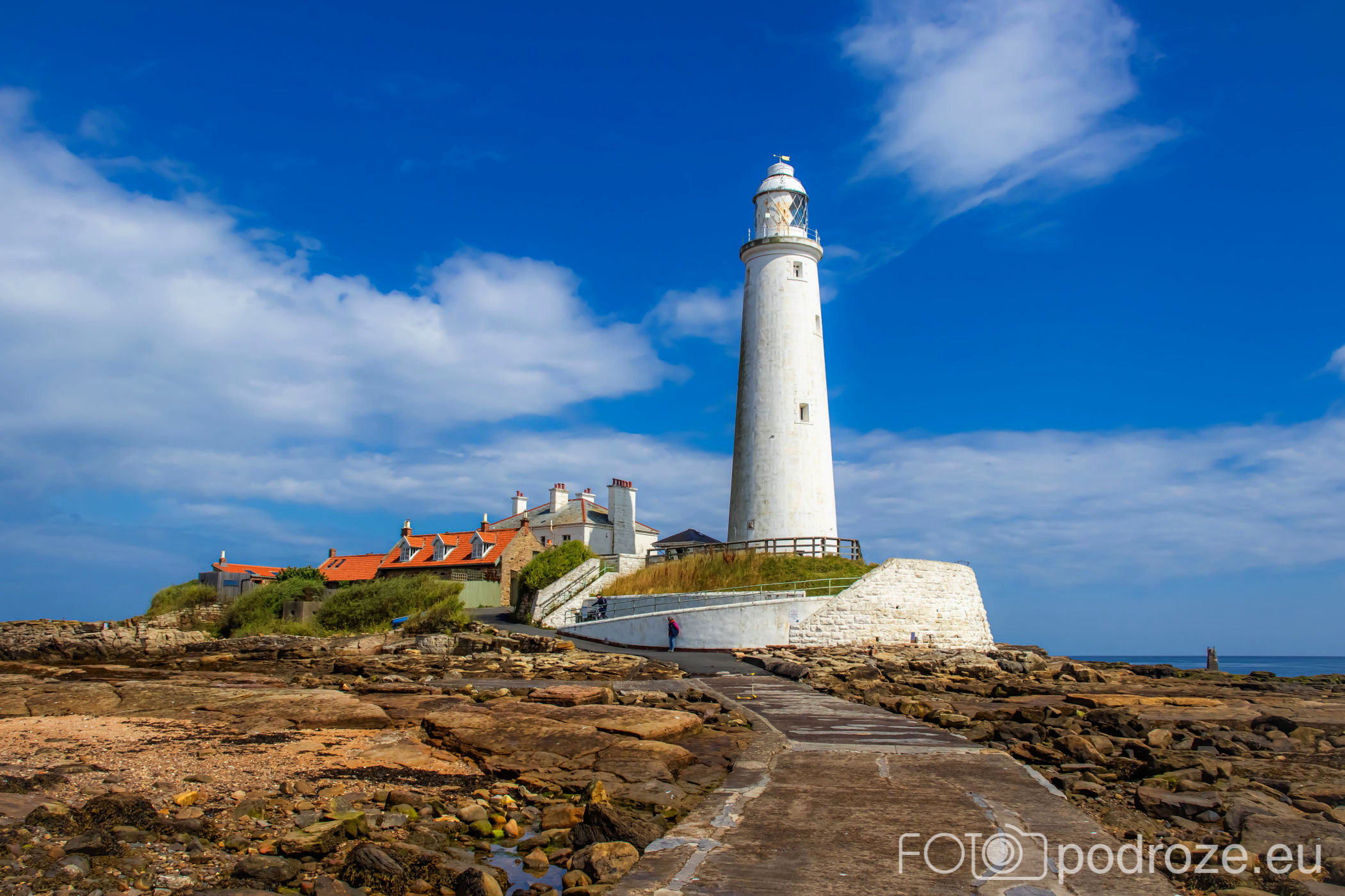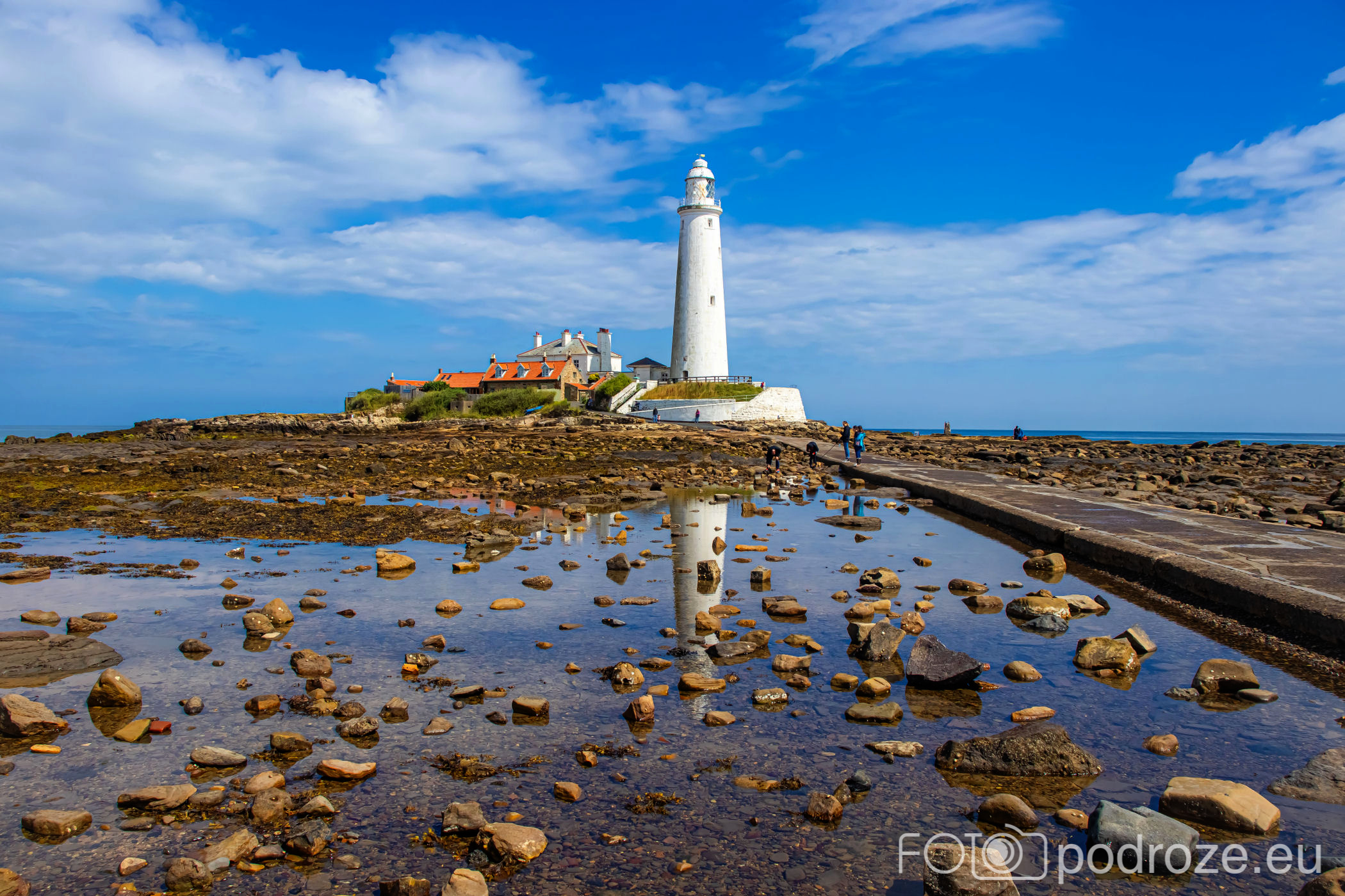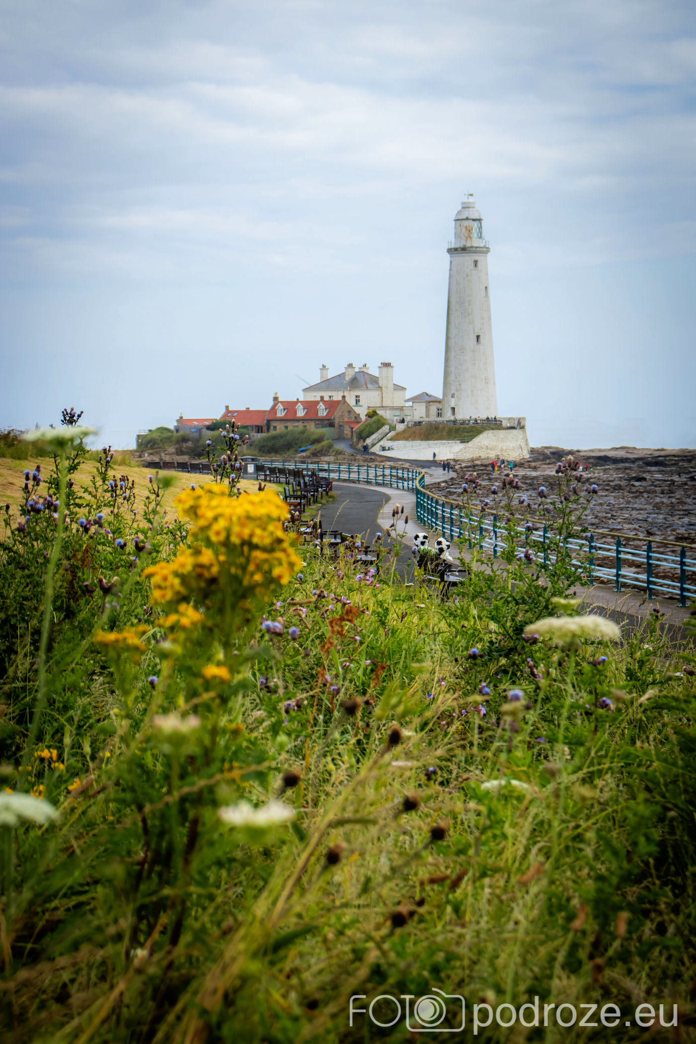 Zaledwie 7 kilometrów dalej jadąc na północ od Tynemouth dojeżdżamy do fantastycznego miejsca. Tu na wyspie połączonej z lądem betonowym chodnikiem znajduje się ogromna latarnia morska i rezerwat – St Mary’s Island Nature Reserve . Zostawiamy auto na dużym parkingu i dalej na piechotę wędrujemy w stronę latarni.