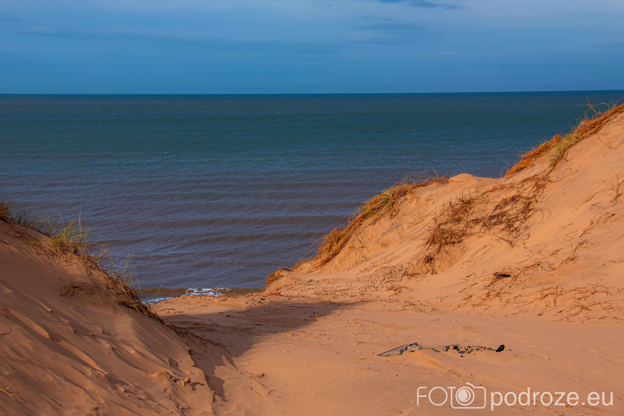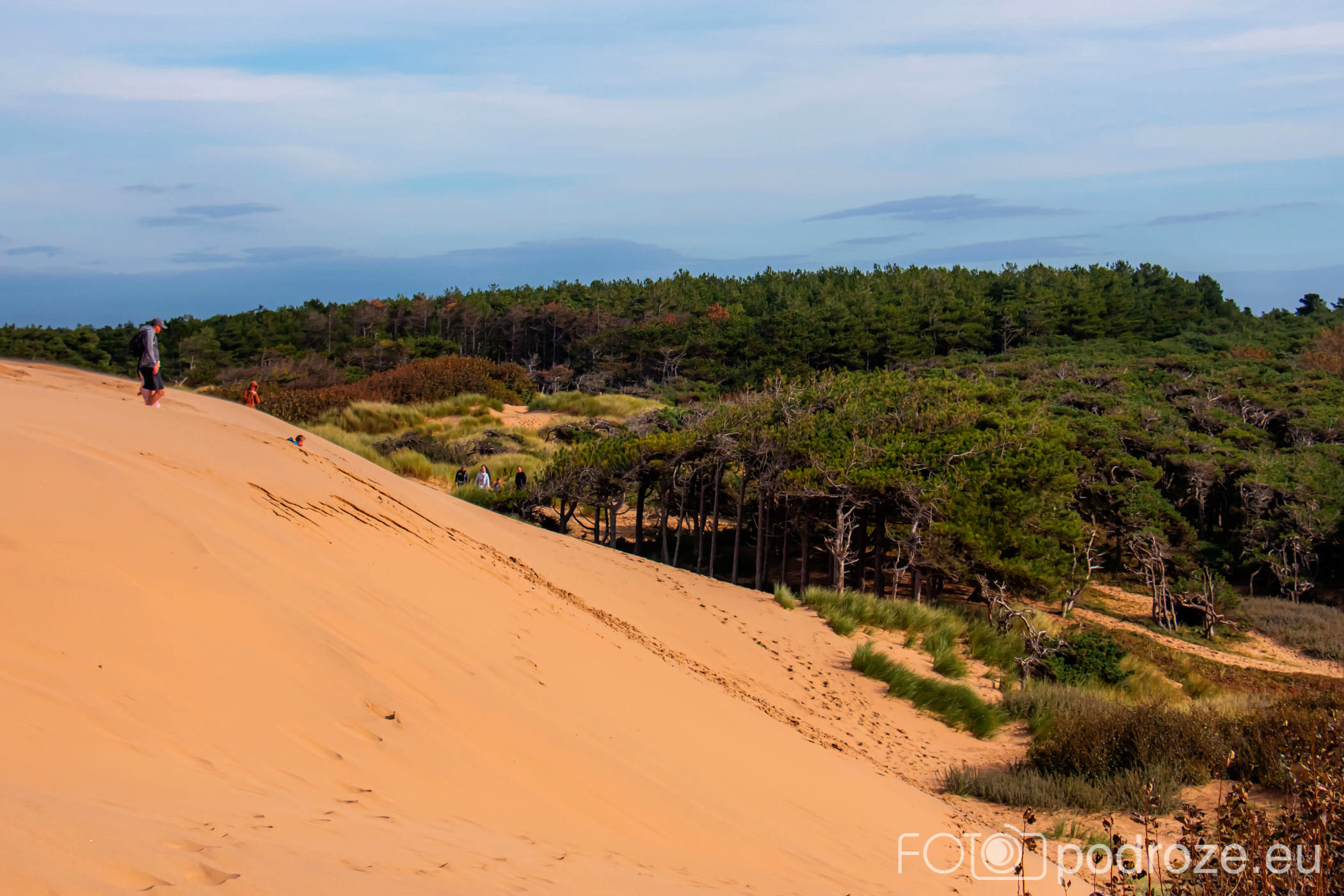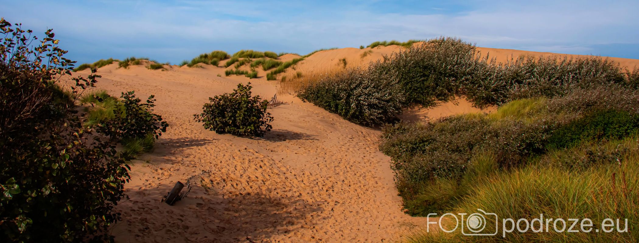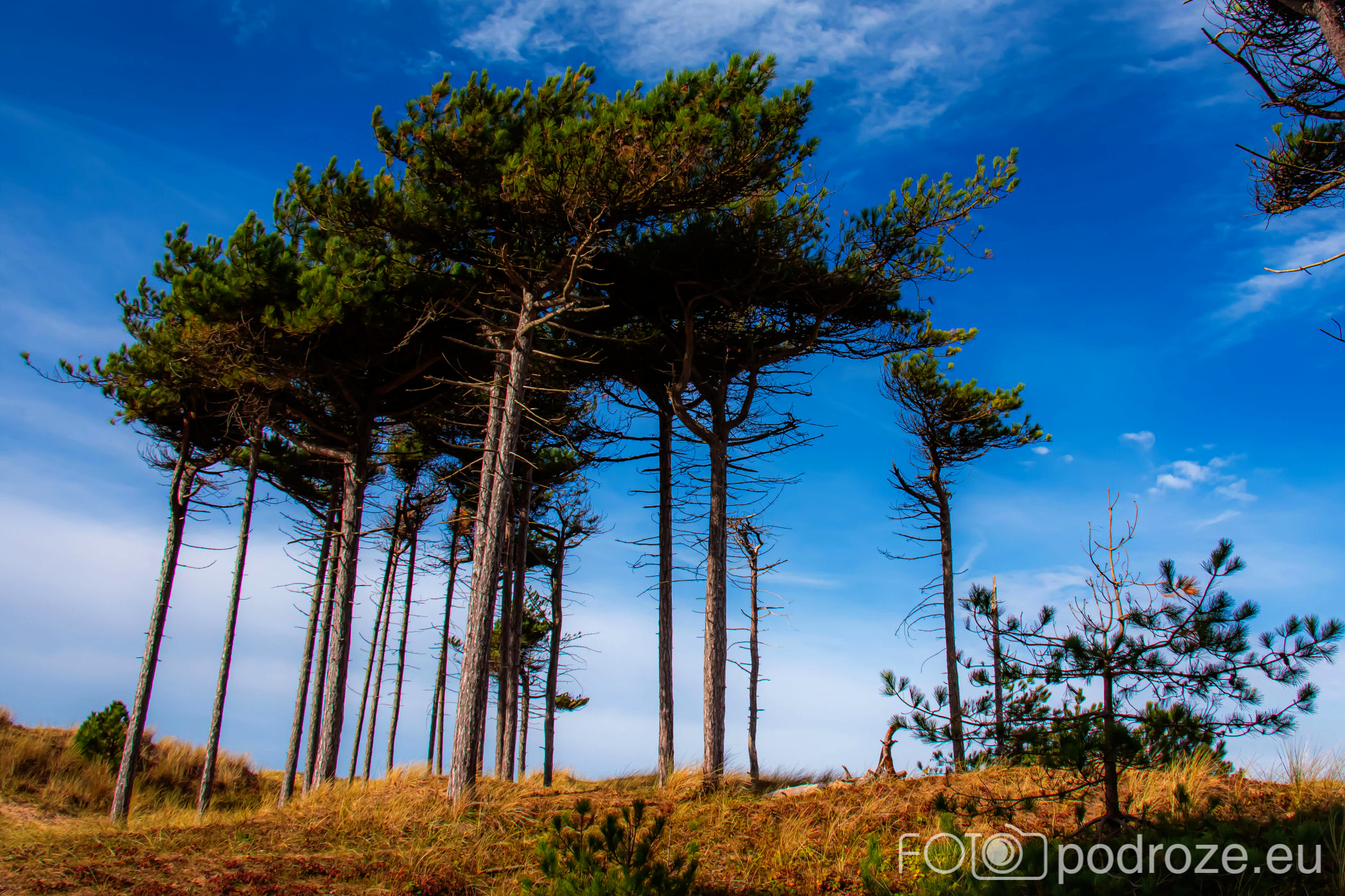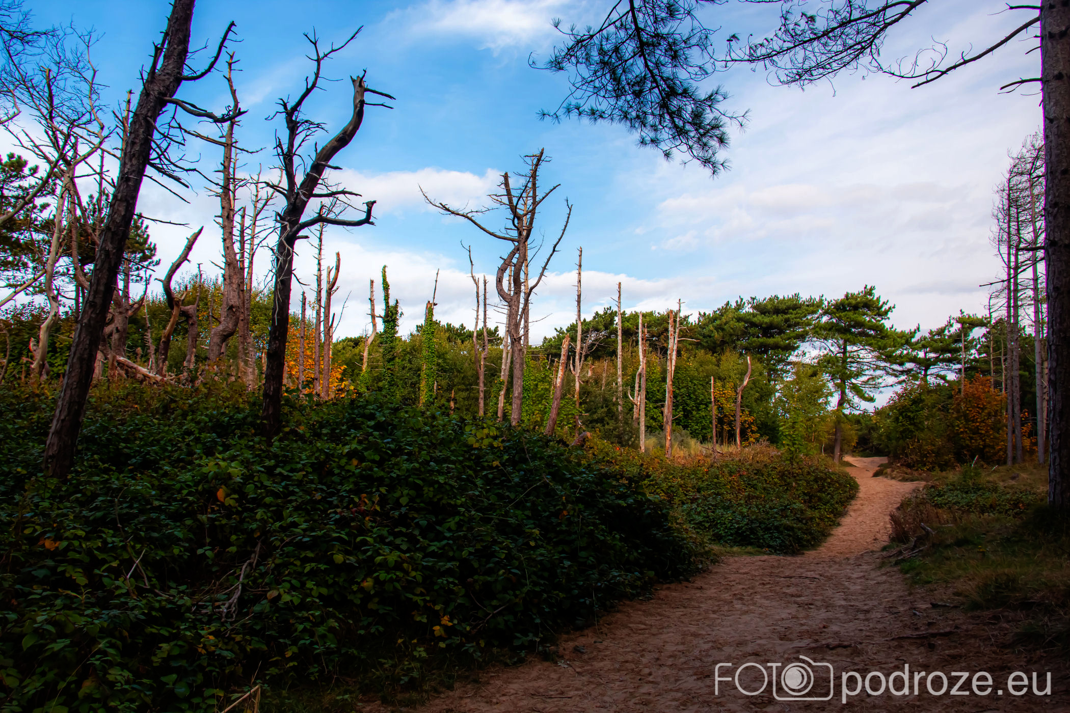 Przez lasek sosnowy dochodzi się do fantastycznych wydm. Porośnięte niską trawą tworzą ciekawe krajobrazy.