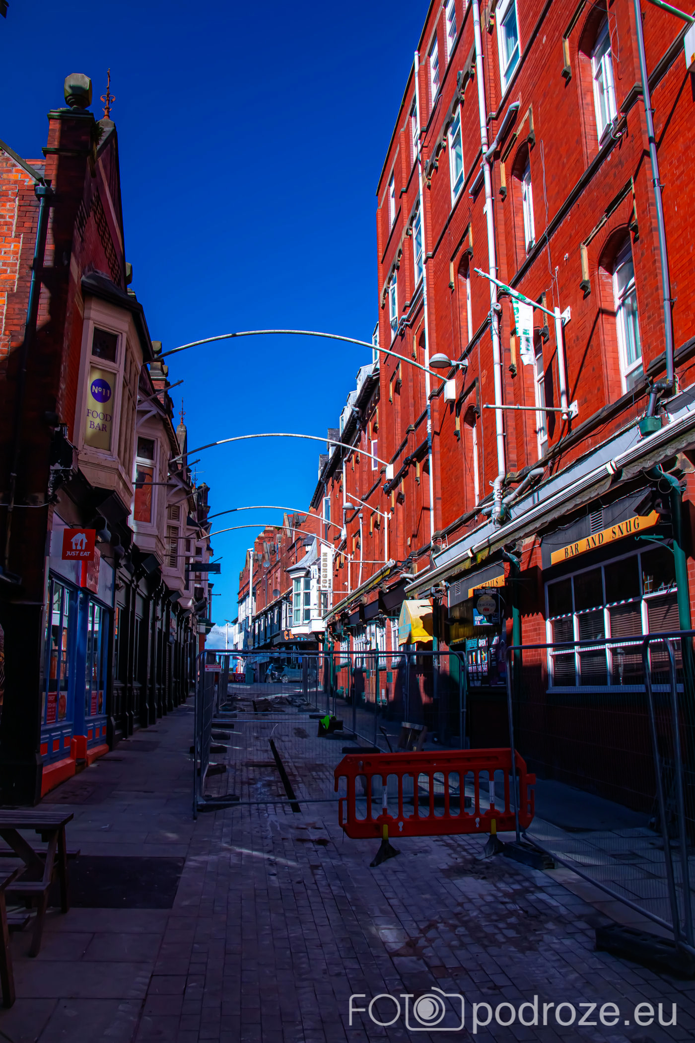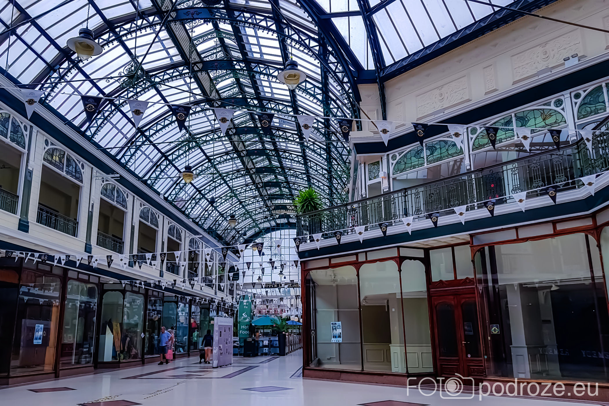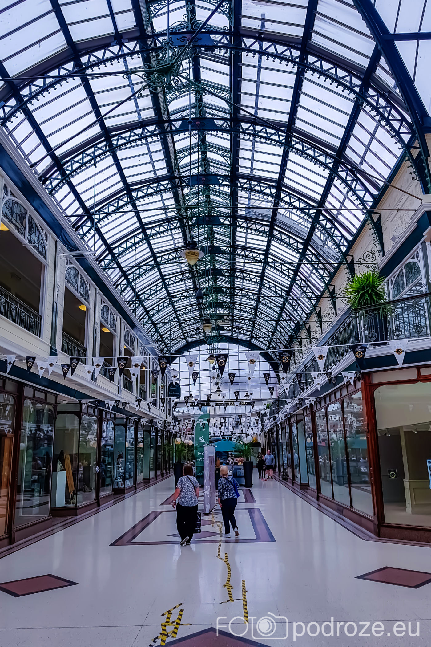Naprzeciwko nich ciekawa architektonicznie galeria handlowa Wayfarers Arcade.