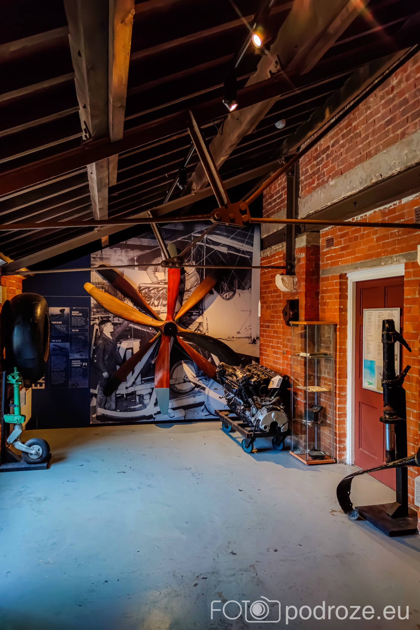 W niskim budynku od zachodniej strony, zbudowanym z ciemnej cegły znajduje się małe muzeum lotnictwa.