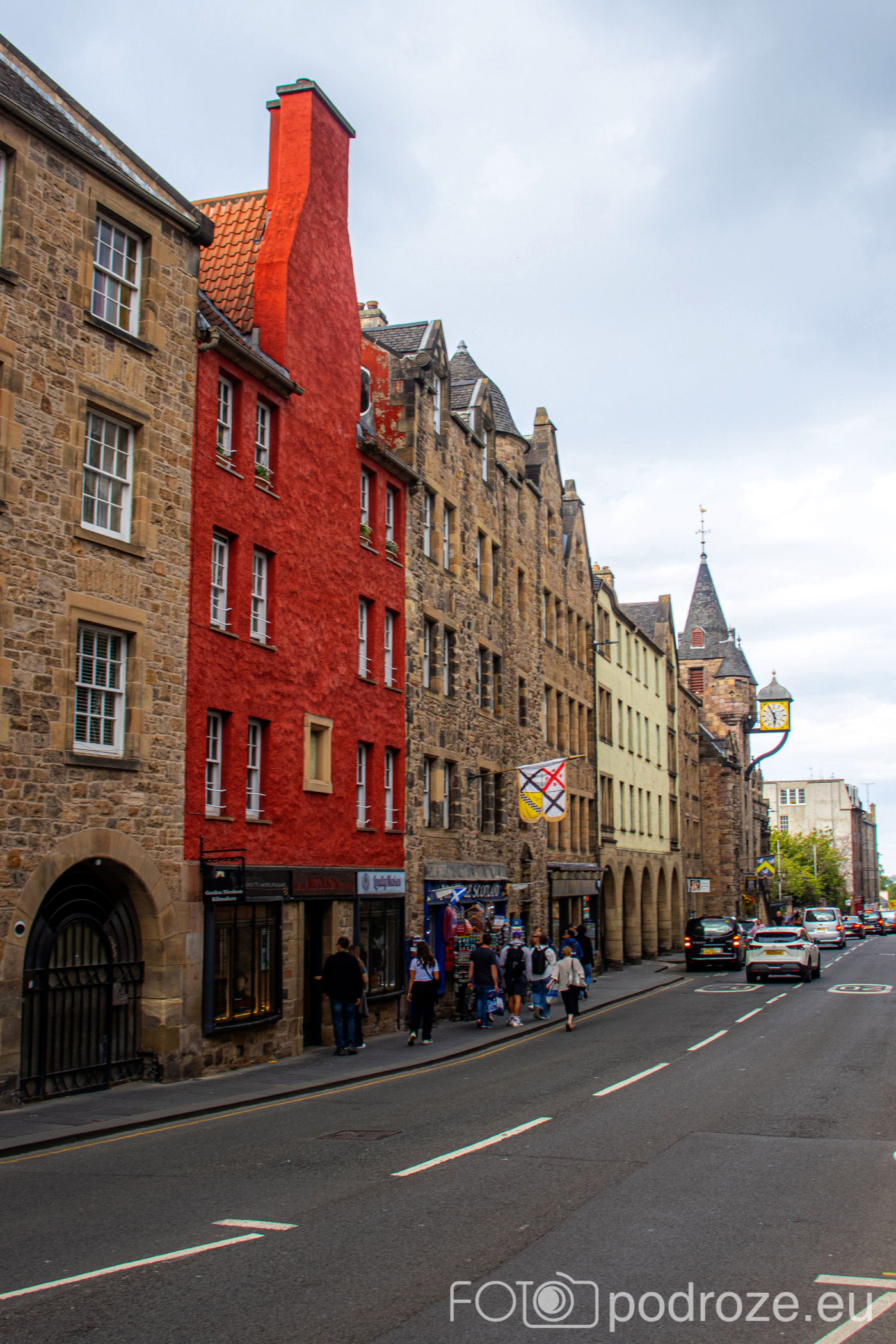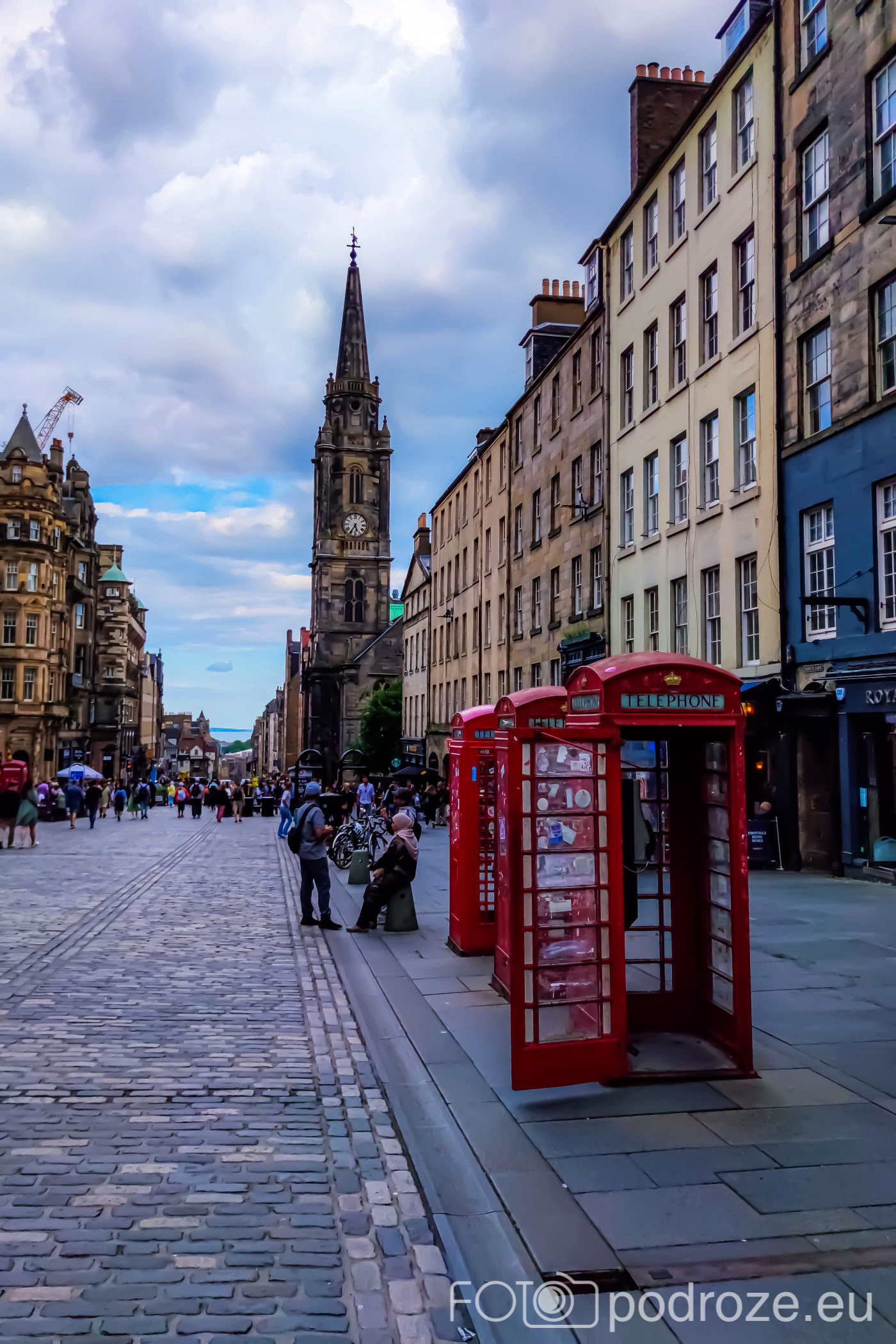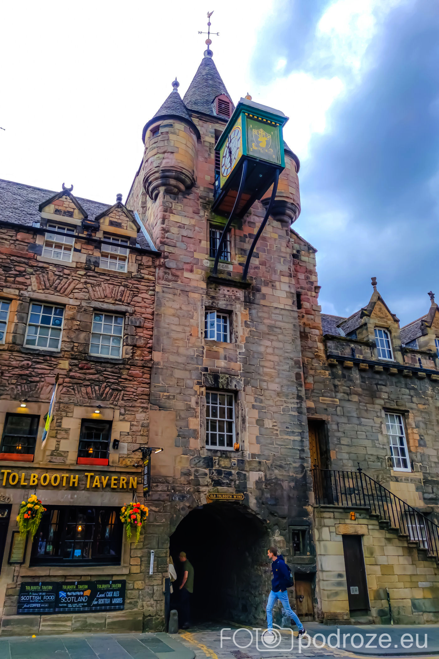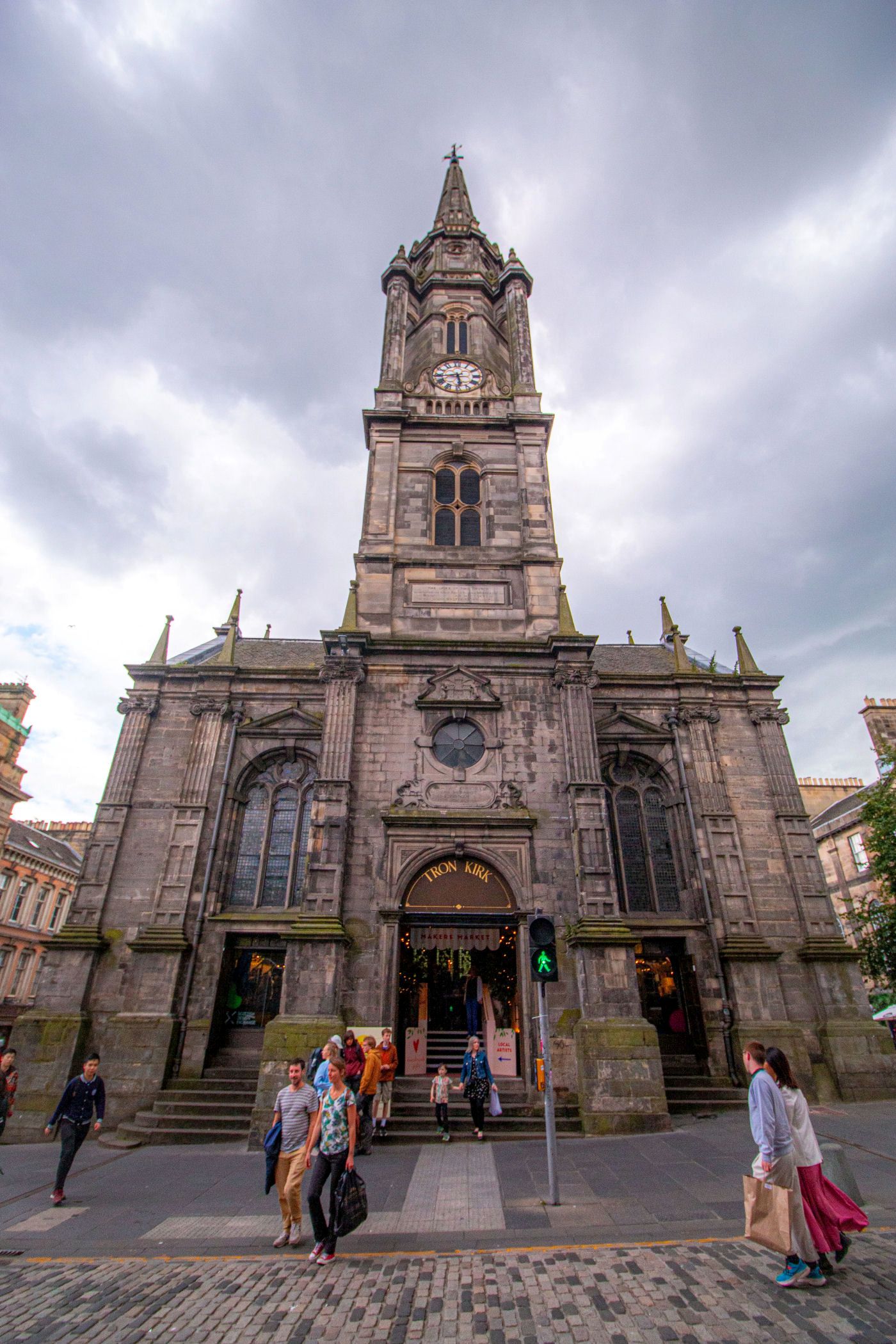 Tolbooth Kirk stoi po lewej stronie, mijamy go i idziemy w stronę zamku. Najpiękniejszy widok jest na ulicę Castle Hill patrząc w dół od strony zamku. To szkocki kościół episkopalny zbudowany w latach 1846-1847 w stylu gotyckim. Kiedyś było to miejsce kultu, obecnie odbywa się w nim Międzynarodowy Festiwal w Edynburgu. Jego ciemna fasada, strzelista wieża wypełniona czerwonymi wstawkami budzi grozę i budzi zachwyt.