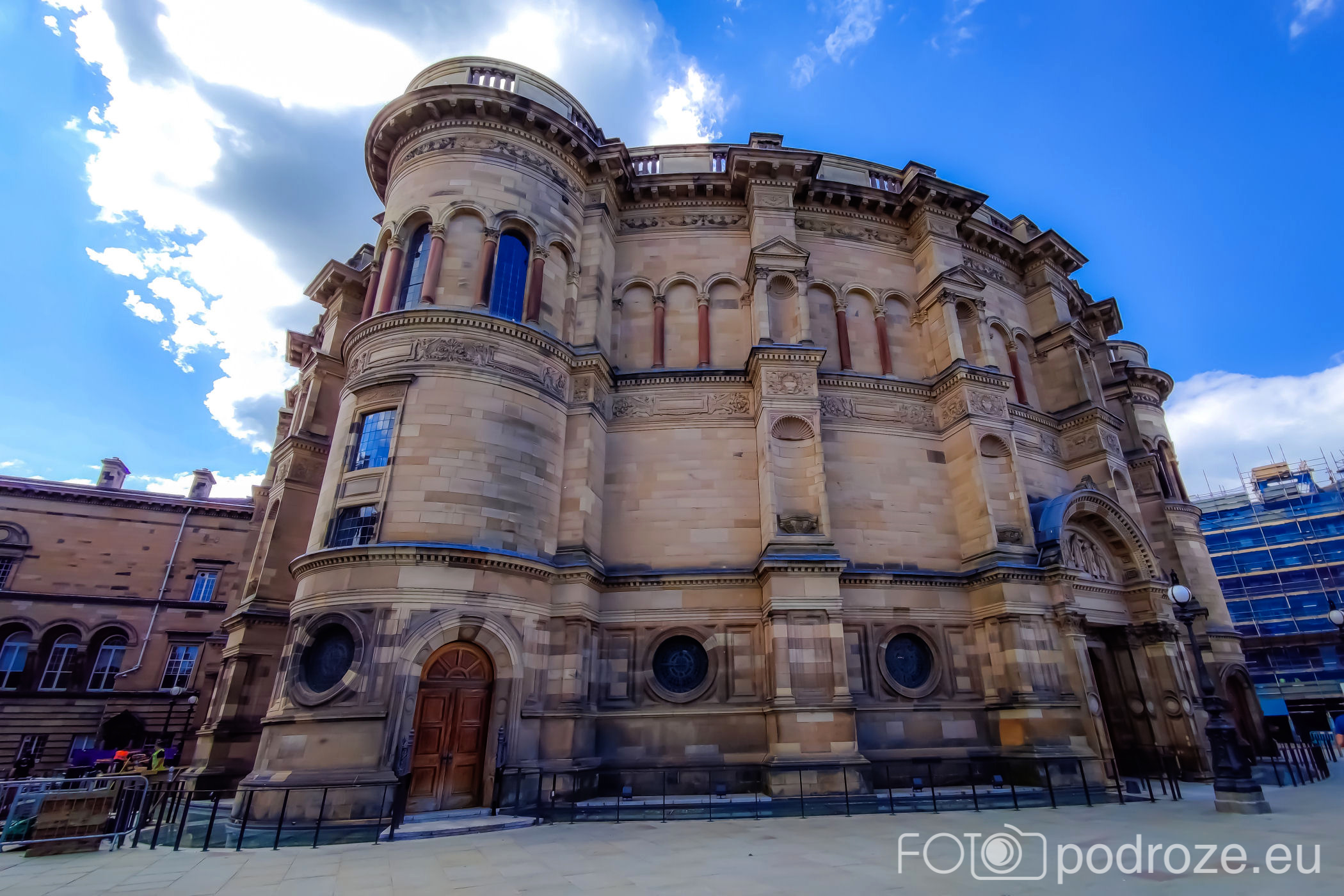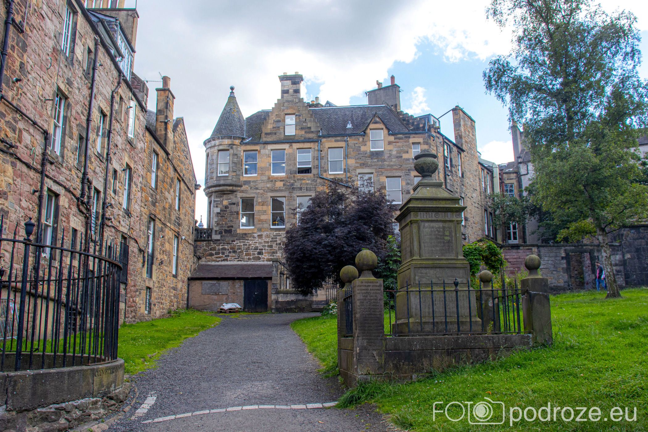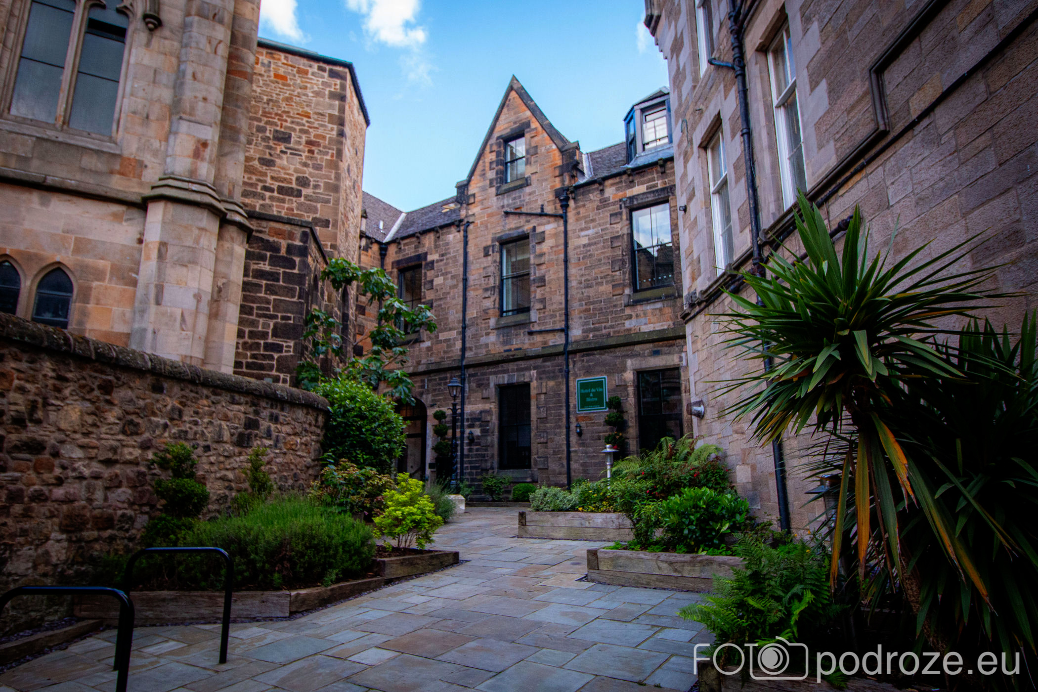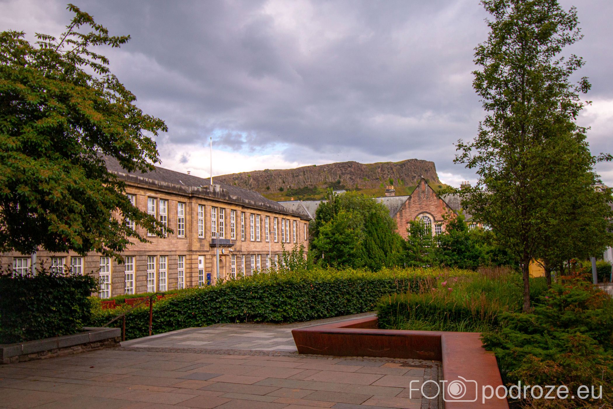 Zanim dotrzemy do uniwersytetu mijamy kościół Buccleuch and Greyfriars Free Church of Scotland , uliczkę z widokiem na wzgórze oraz meczet – Edinburgh Central Mosque .