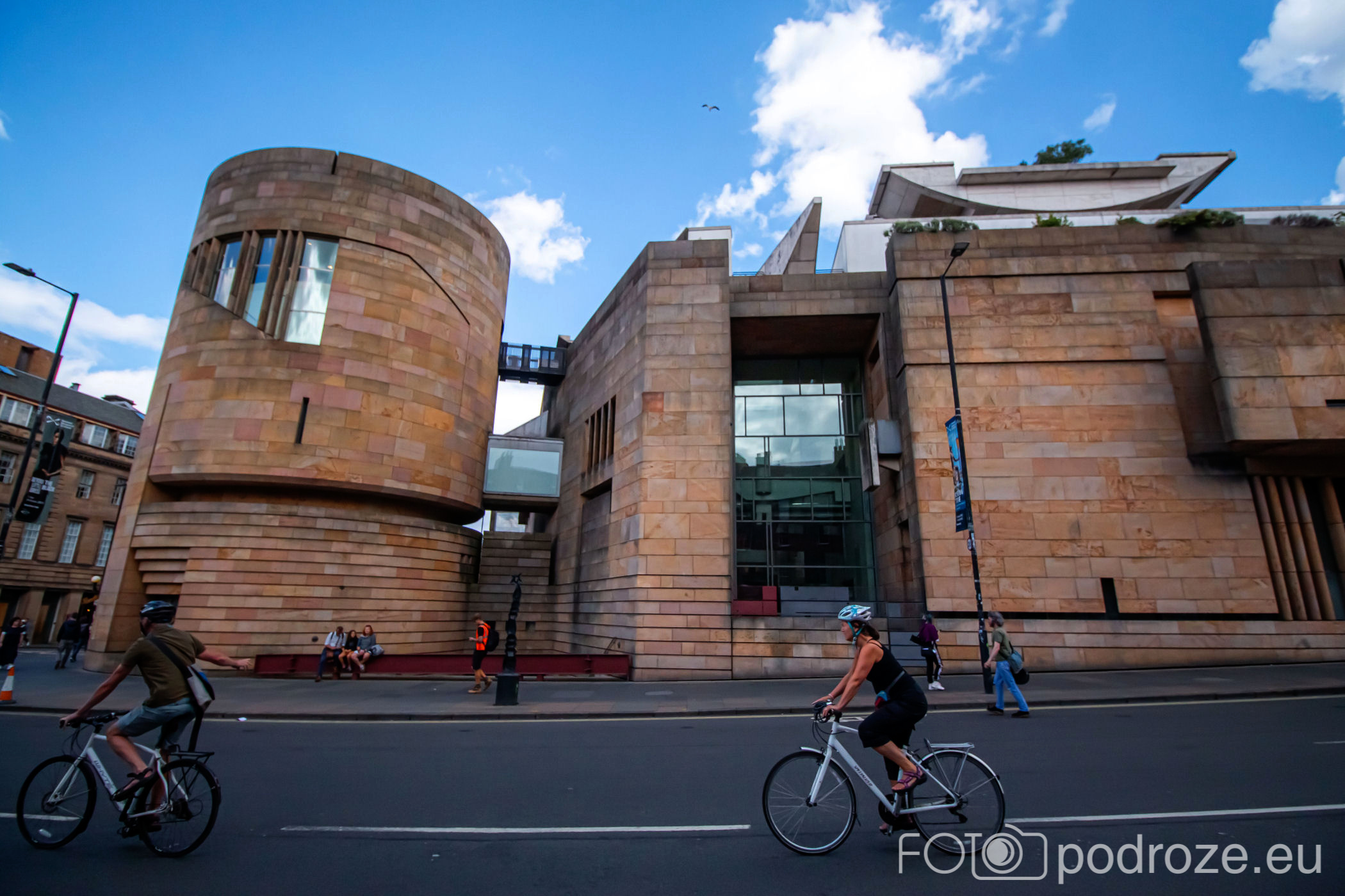 Idąc dalej mijamy National Museum of Scotland. Budynek z zewnątrz nowoczesny nie zachwyca, raczej szokuje brakiem spójności z otoczeniem. Wewnątrz jest niezwykle ciekawy i pewno warto zajrzeć, aby go zwiedzić. Niestety, my na odwiedzanie muzeów nie mamy czasu.