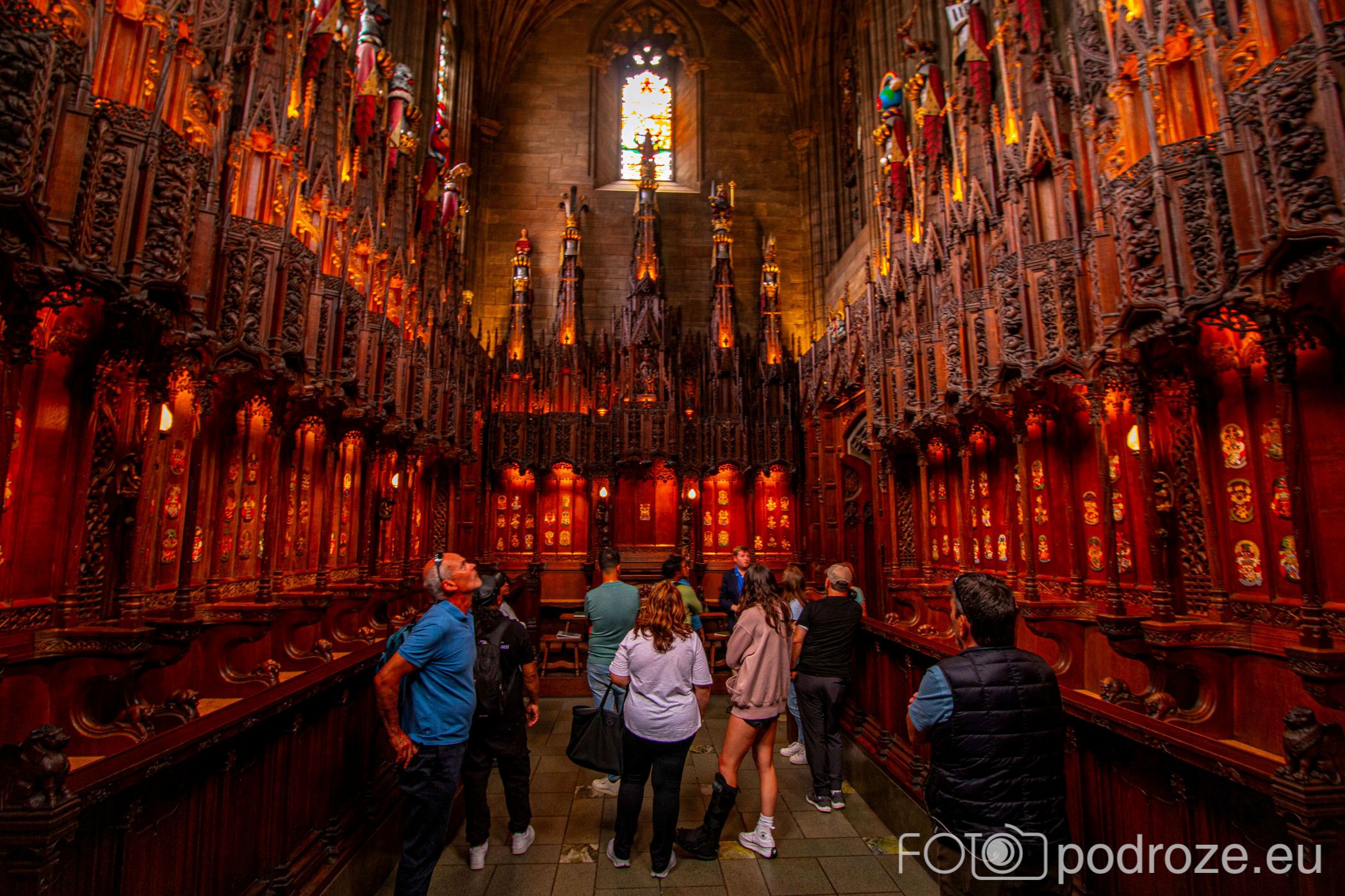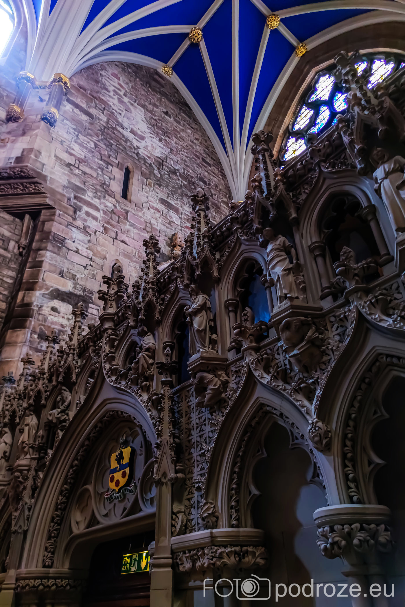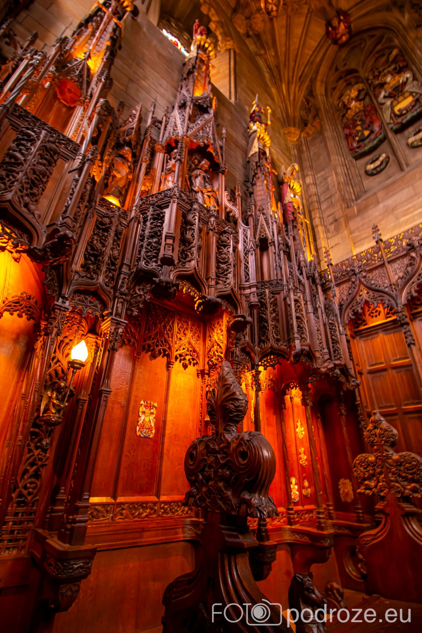 Wracamy na ulicę High Street ciągnącą się od zamku, aż po ulicę St. Mary. Obowiązkowy punkt programu w tym miejscu to Katedra Św. Idziego. Z zewnątrz niezbyt imponująca, choć uwagę naszą już z oddali zwróciła piękna ażurowa wieża tej właśnie świątyni. Ze wszystkich stron katedry znajdziemy różne rzeźby i monumenty.