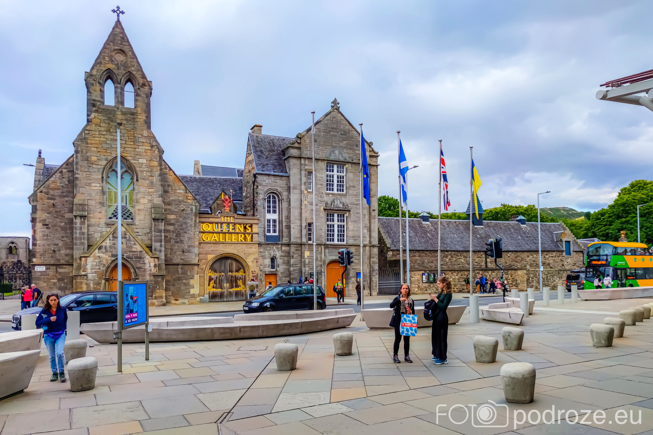 Tuż przed pałacem znajdziemy Galerię The Queen’s Gallery, która stanowi wspólną część z pałacem. Z kolei po lewej stronie od bramy głównej znajduje się kilak budynków po byłym opactwie.
