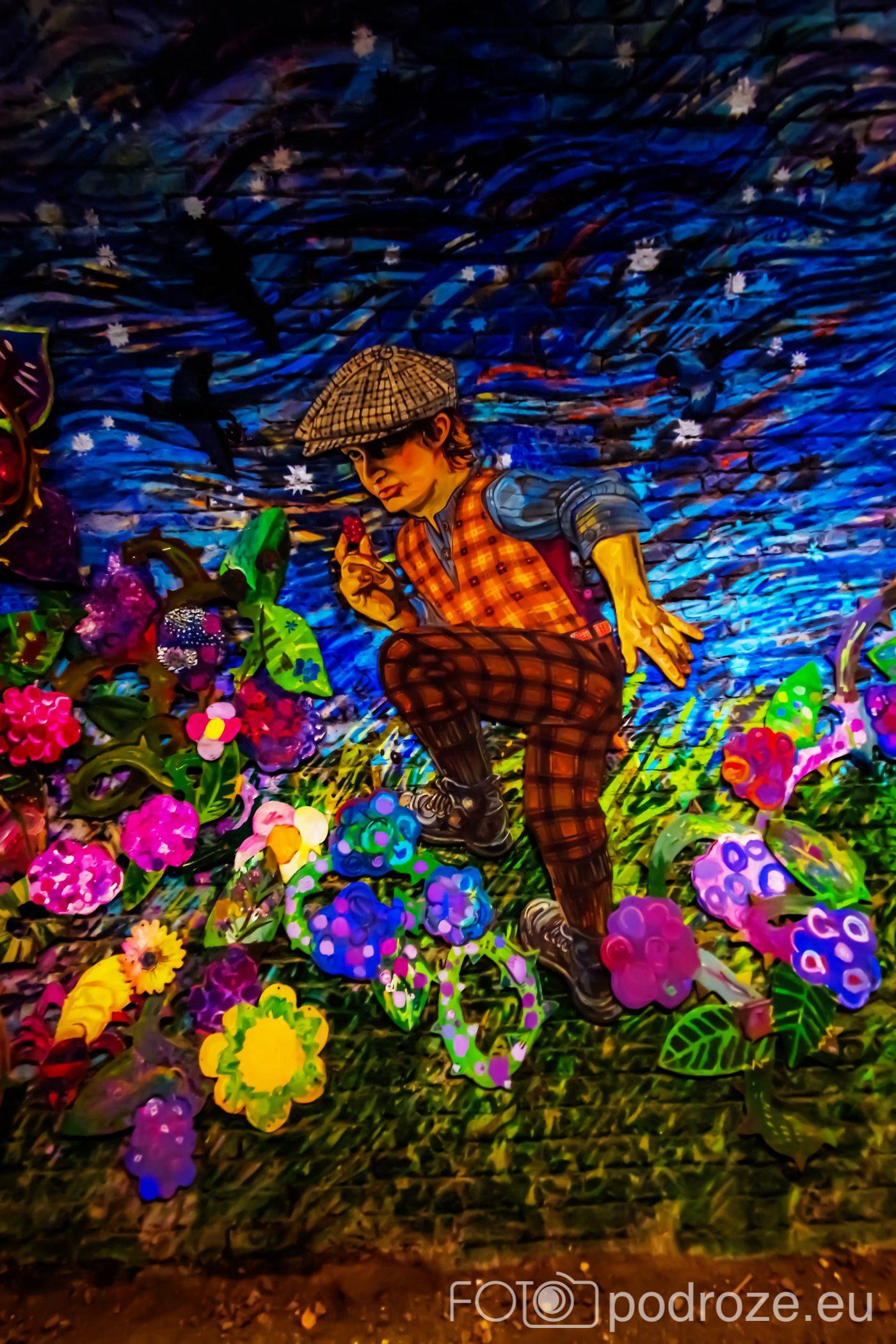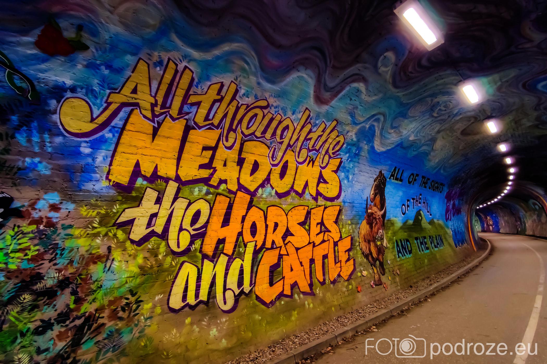 Colinton Station & Tunnel znajduje się obecnie w granicach Edynburga. To jedna z bardzo nieoczywistych, a nie mniej ciekawych atracji stolicy. To tunel po byłej kolejce, który został przekształcony w największy historyczny mural w Szkocji. Ten niesamowity mural w wiktoriańskim tunelu kolejowym został stworzony, aby przyciągnąć gości do Colinton. Utalentowany zespół artystyczny, kierowany przez Chrisa Rutterforda, przekształcił ciemny i przerażający tunel w bezpieczny i przyjazne miejsce, pokazujące przemysłową, społeczną, artystyczną i literacką historię społeczności Colinton.