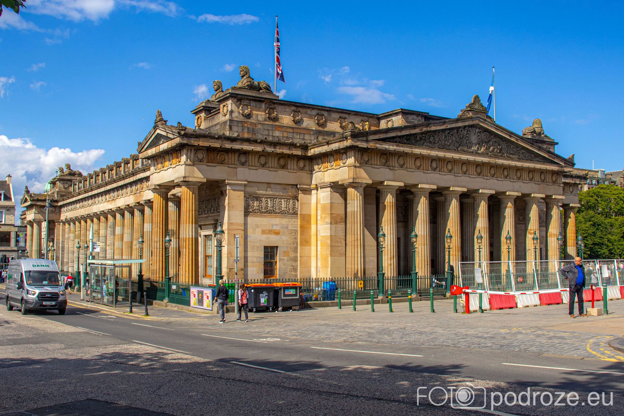 Kiedy spojrzymy w dół naszym oczom pokazuje się ogromny budynek National Gallery of Scotland (niestety akurat w renowacji) i tuż za nim Royal Scottish Academy . Pierwszy z nich prezentuje wystawy tymczasowe galerii narodowej z kolekcją europejskich arcydzieł i prac szkockich artystów. Drugi budynek wybudowany w 1826 roku to elegancka georgiańska galeria mieszcząca wystawy poświęcone architekturze i sztuce nowoczesnej.