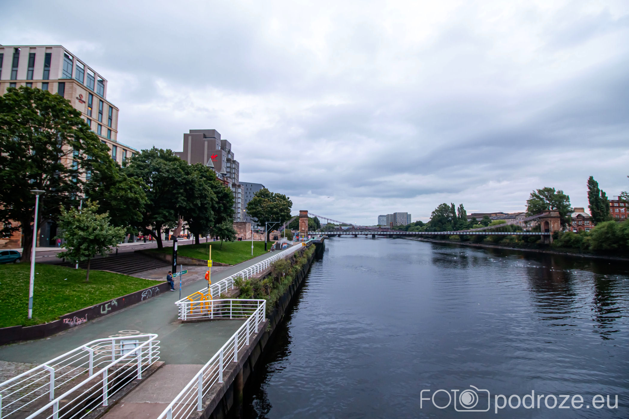 I tak docieramy na nabrzeże rzeki Clyde. Zazwyczaj w miastach promenady nadbrzeżne są najsympatyczniejszym miejscem w mieście. Tu zupełnie sympatii się nie czuje, przechodzimy więc tylko kawałek i wracamy do centrum.