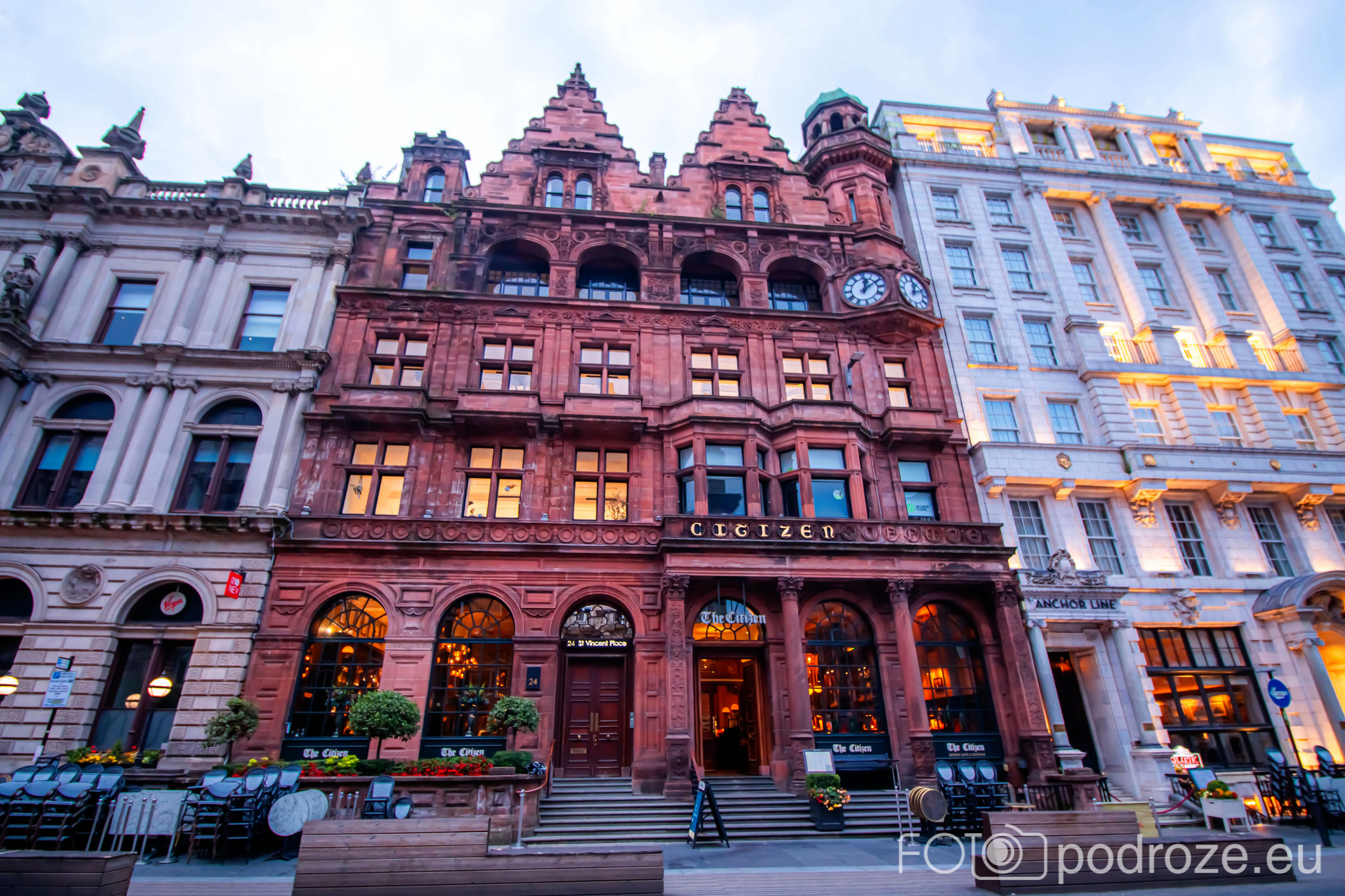 W północnej części naszą uwagę zwraca obiekt kościoła znajdującego się na środku placu – St George’s Tron Church of Scotland , a po jego prawej stronie przepiękny obiekt , który mieści aktualnie różne instytucje.