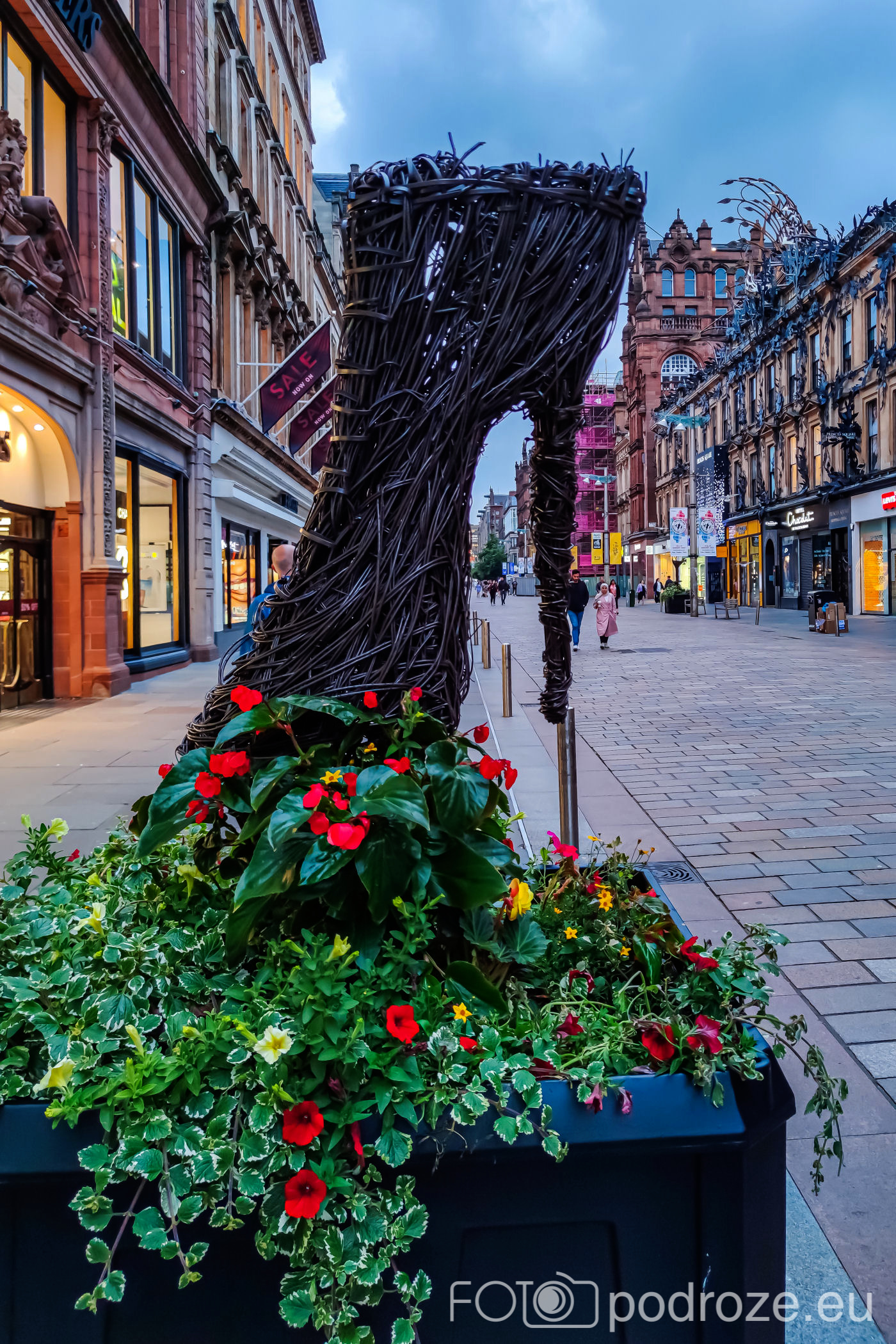 Kawałek dalej zaczyna się główny deptak miasta, czyli ulica Buchanan . Tu faktycznie zabudowa jest imponująca, a po bokach stoją ciekawe rzeźby uplecione jakby z trzciny.