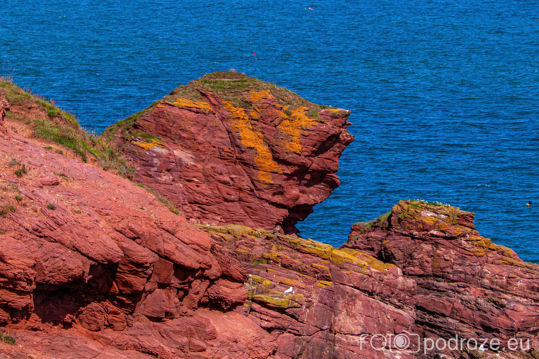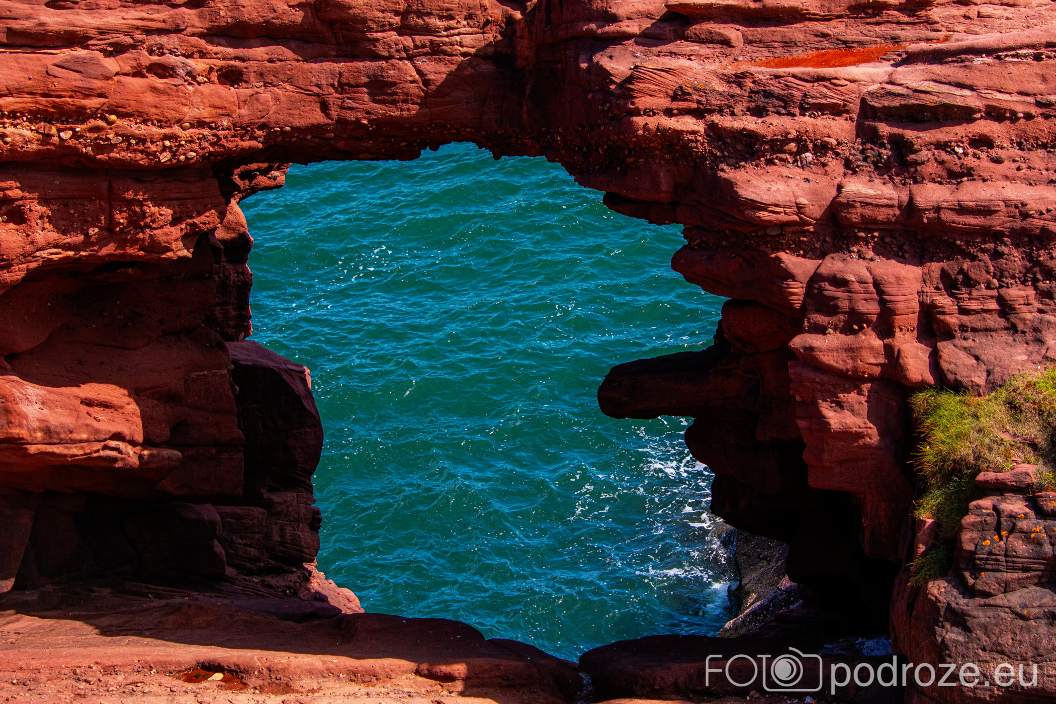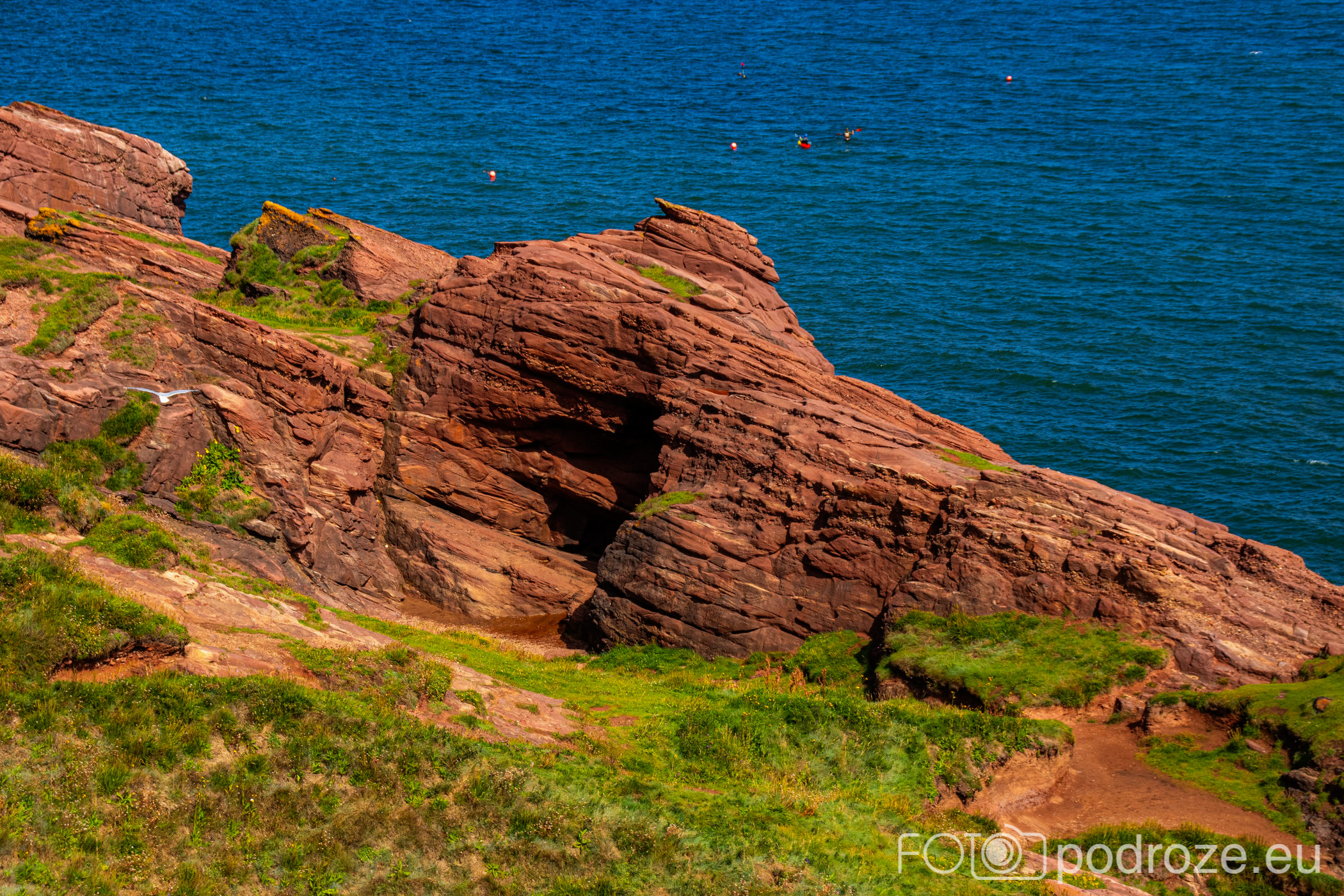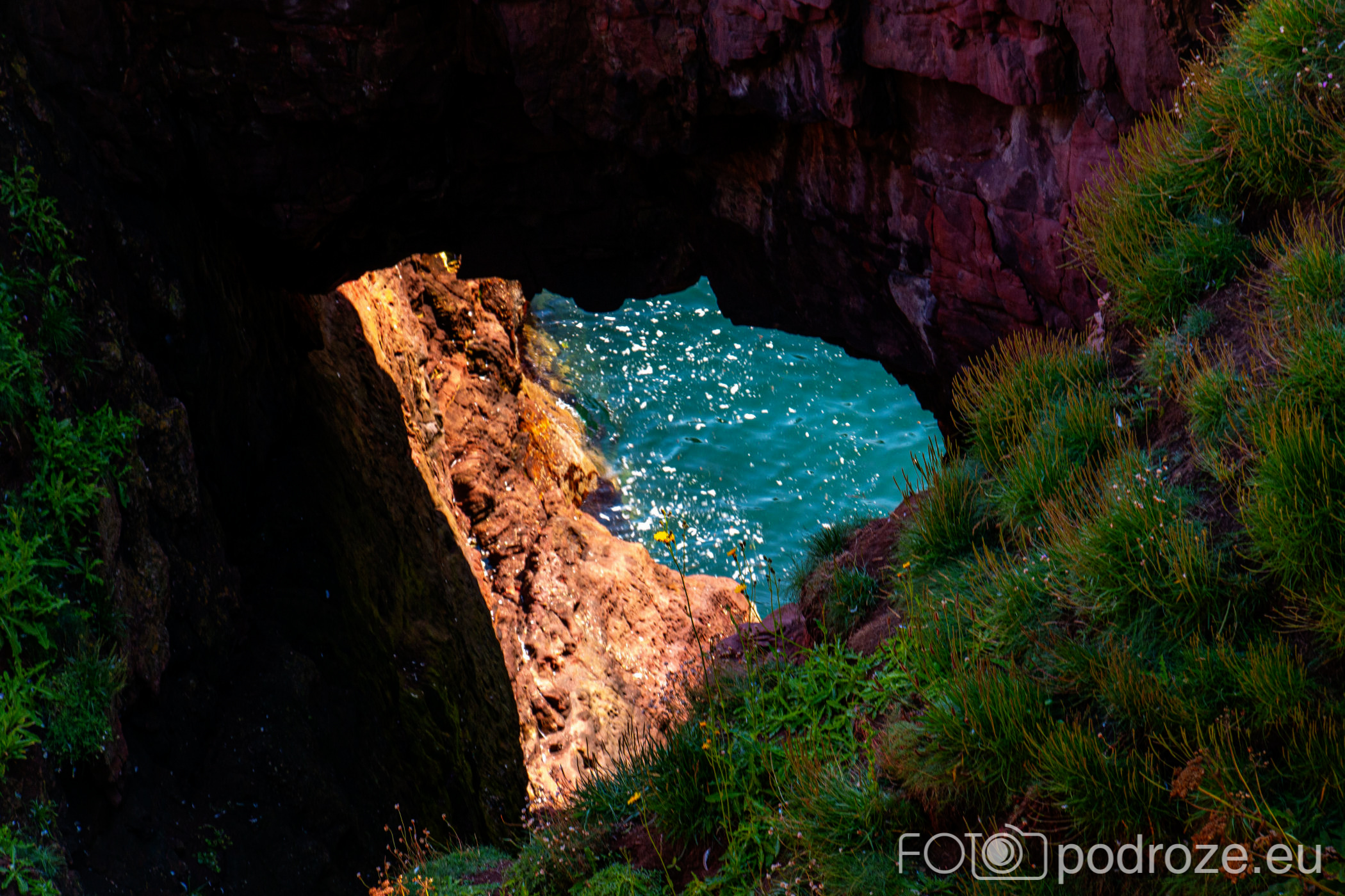 Pierwsze spektakularne skałki w charakterystycznym dla tego rejonu wybrzeża kolorze ceglastym pojawiają się już kilkaset metrów dalej. Tu rzuca się w oczy ciekawa formacja nazywana „HORSE SHOE”.