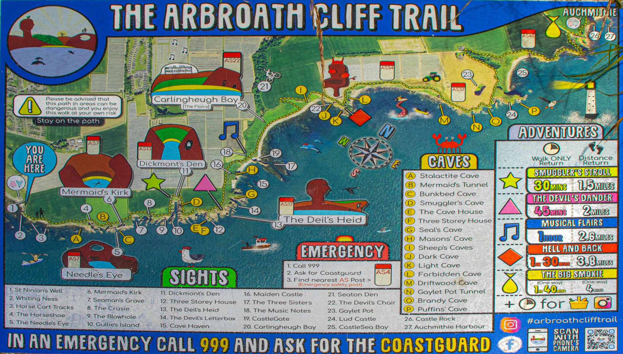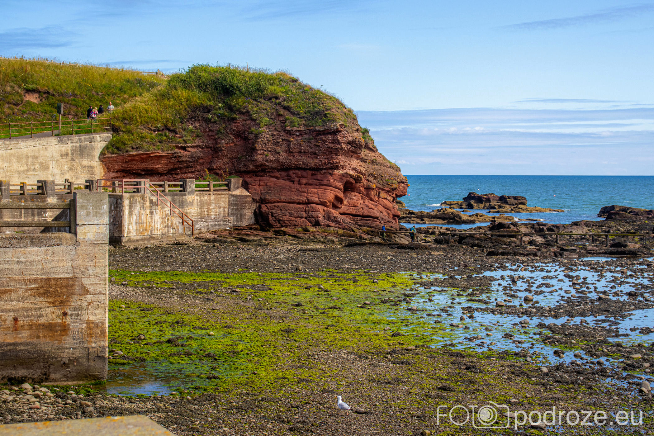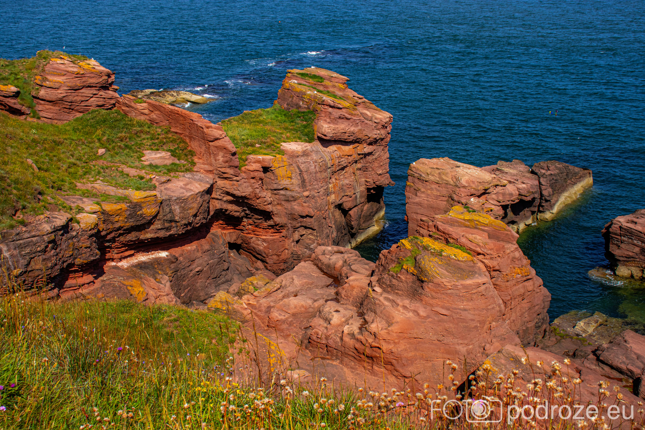 Klify Arbroath to naszym zdaniem najpiękniejszy ze szlaków tej części Szkocji. Idąc wzdłuż brzegu spotkacie tu spektakularne klify z czerwonego piaskowca z licznymi jaskiniami morskimi, kominami, dziurami i łukami. Tu znajdują się też siedliska wielu gatunków ptaków.