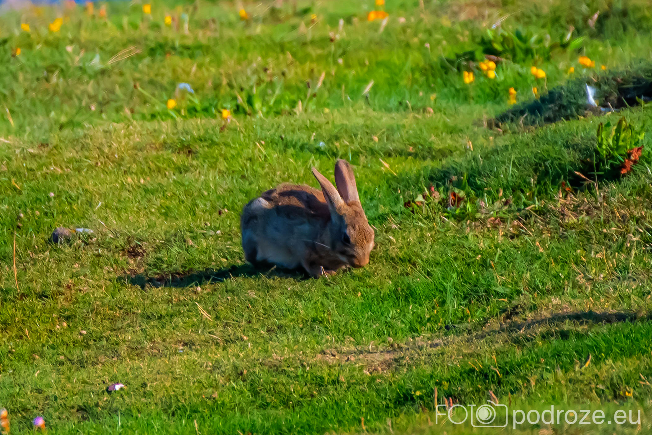 Mamy szczęście, bo po trawie biegają sobie urocze zajączki, które wielkością i wyglądem bardziej przypominają nasze domowe króliczki.