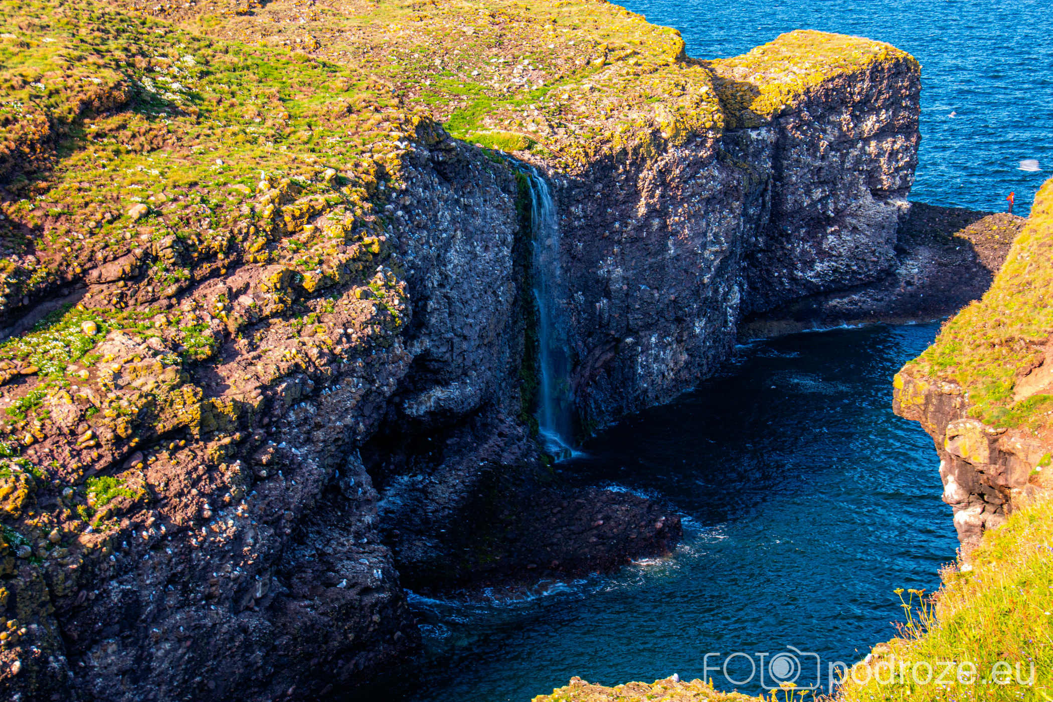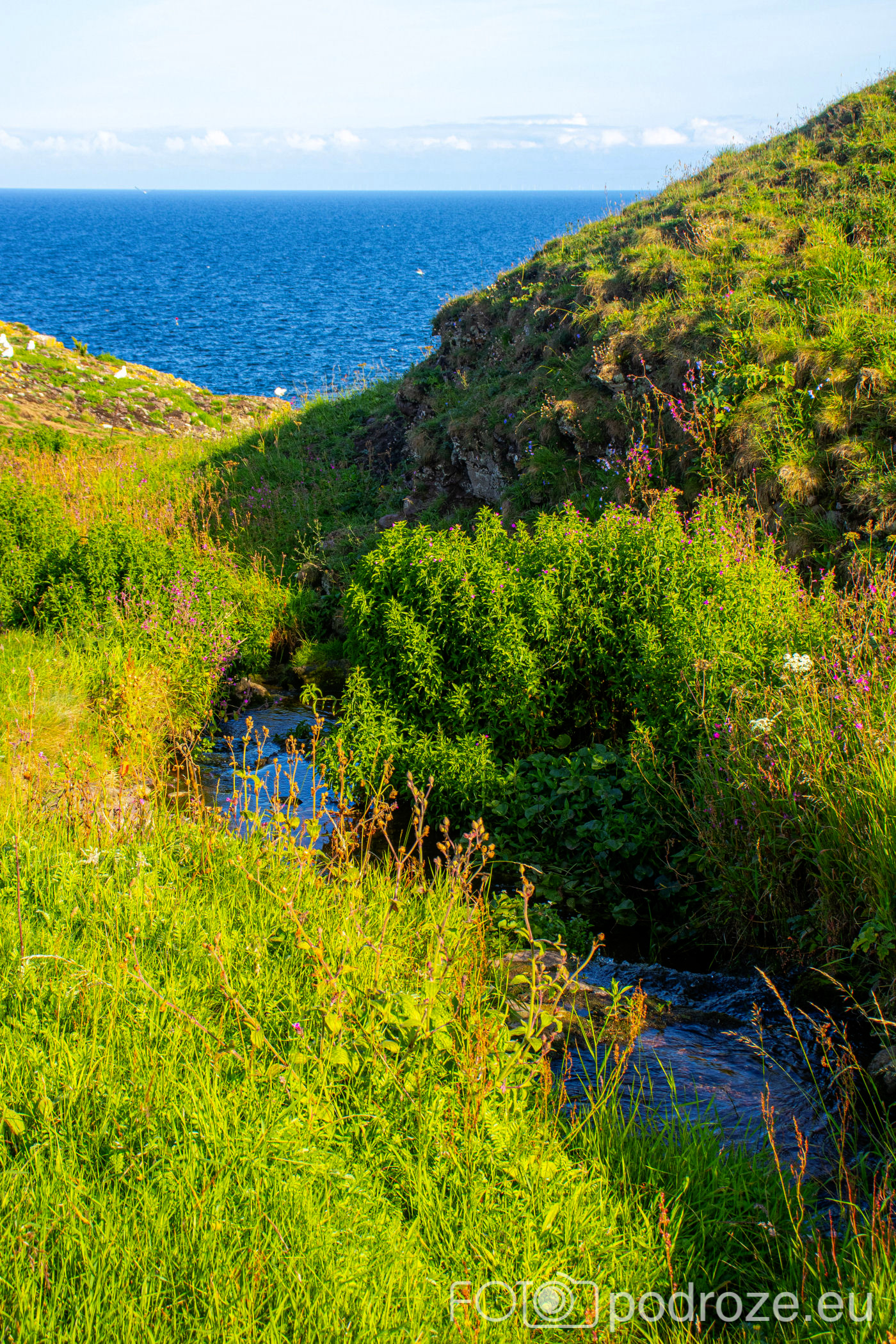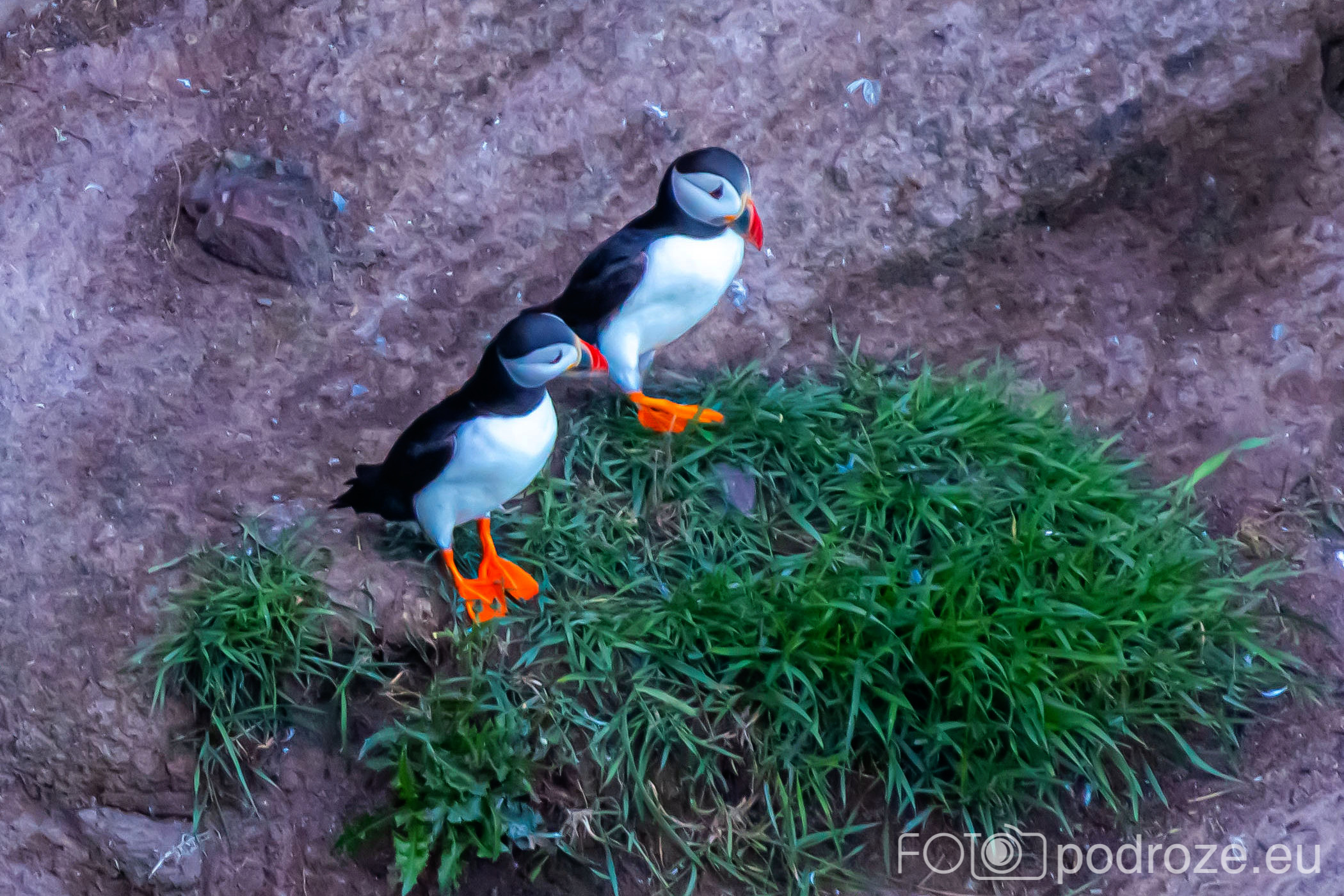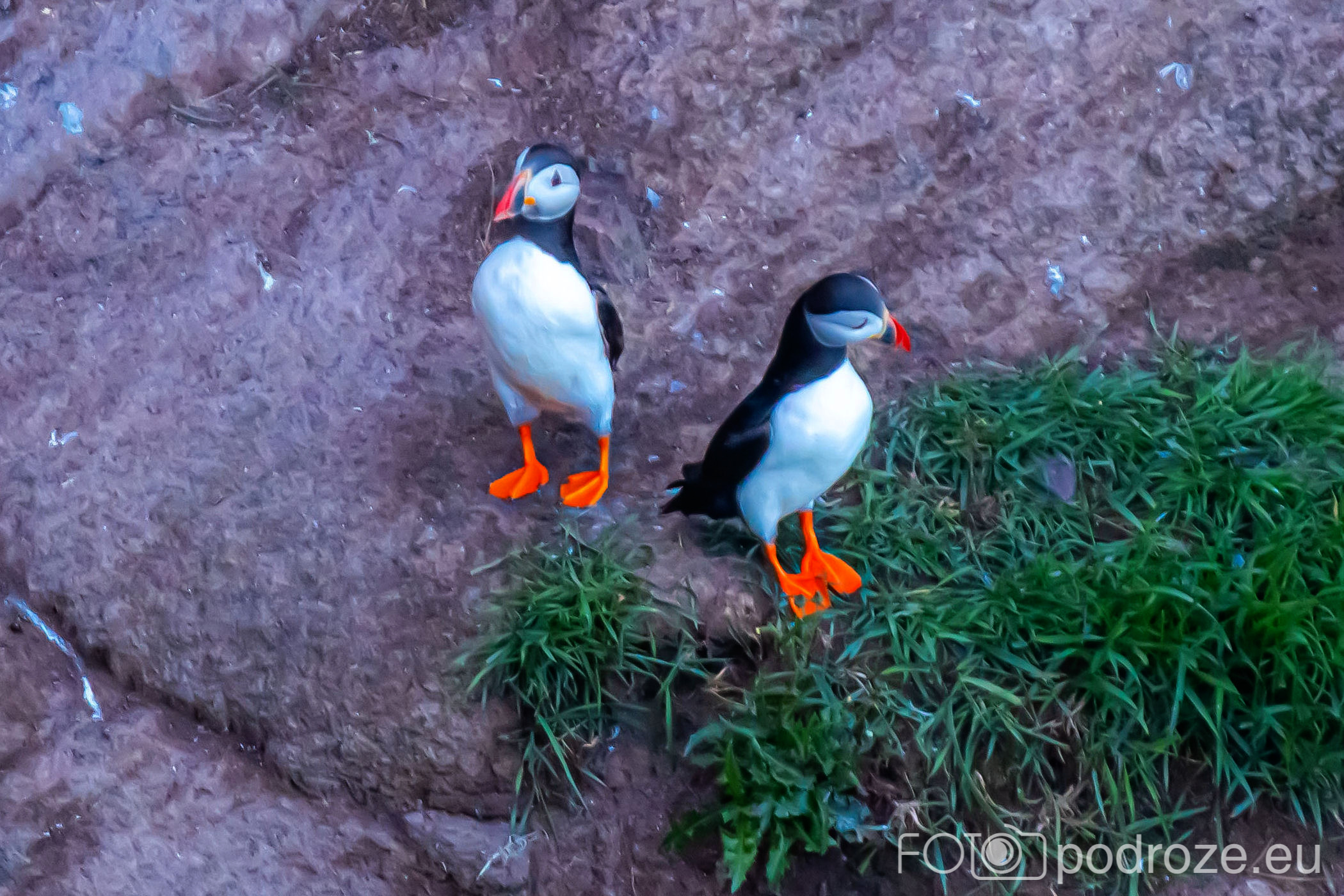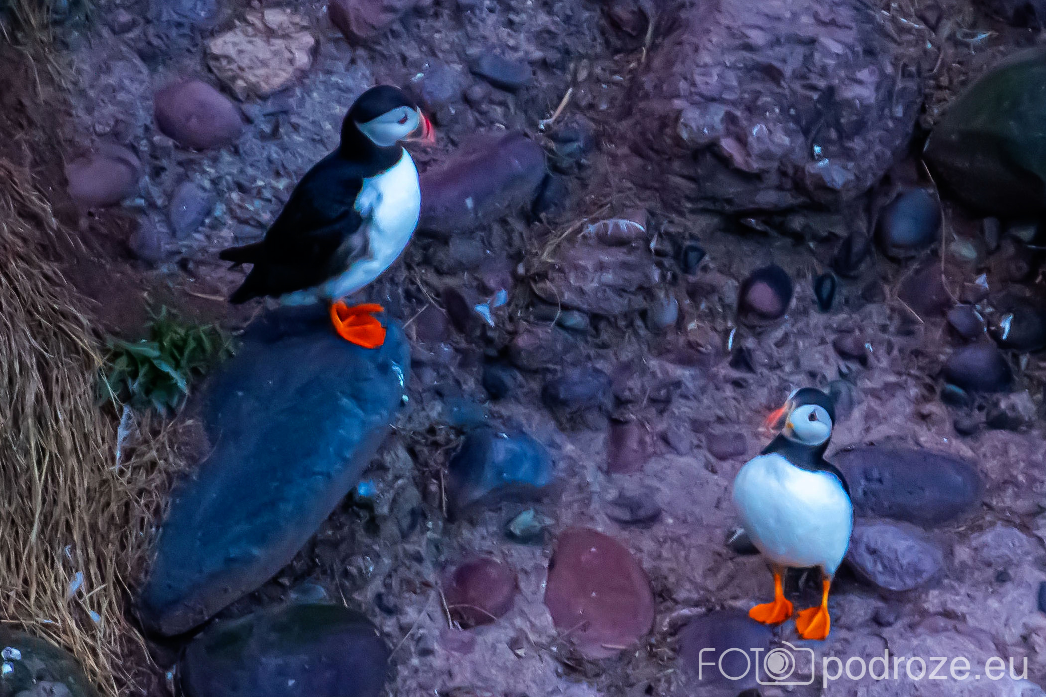 Na końcu szlaku znajduje się małe schronisko, które wygląda raczej jak betonowy schron. To najlepsze miejsce na to, aby wypatrzeć urocze maskonury, które drepczą sobie po półkach skalnych. Dla nas to nie pierwsze spotkanie z nimi, kilka koloni widzieliśmy wcześniej na ISLANDII , ale każde spotkanie z tymi cudnymi ptakami budzi pozytywne emocje