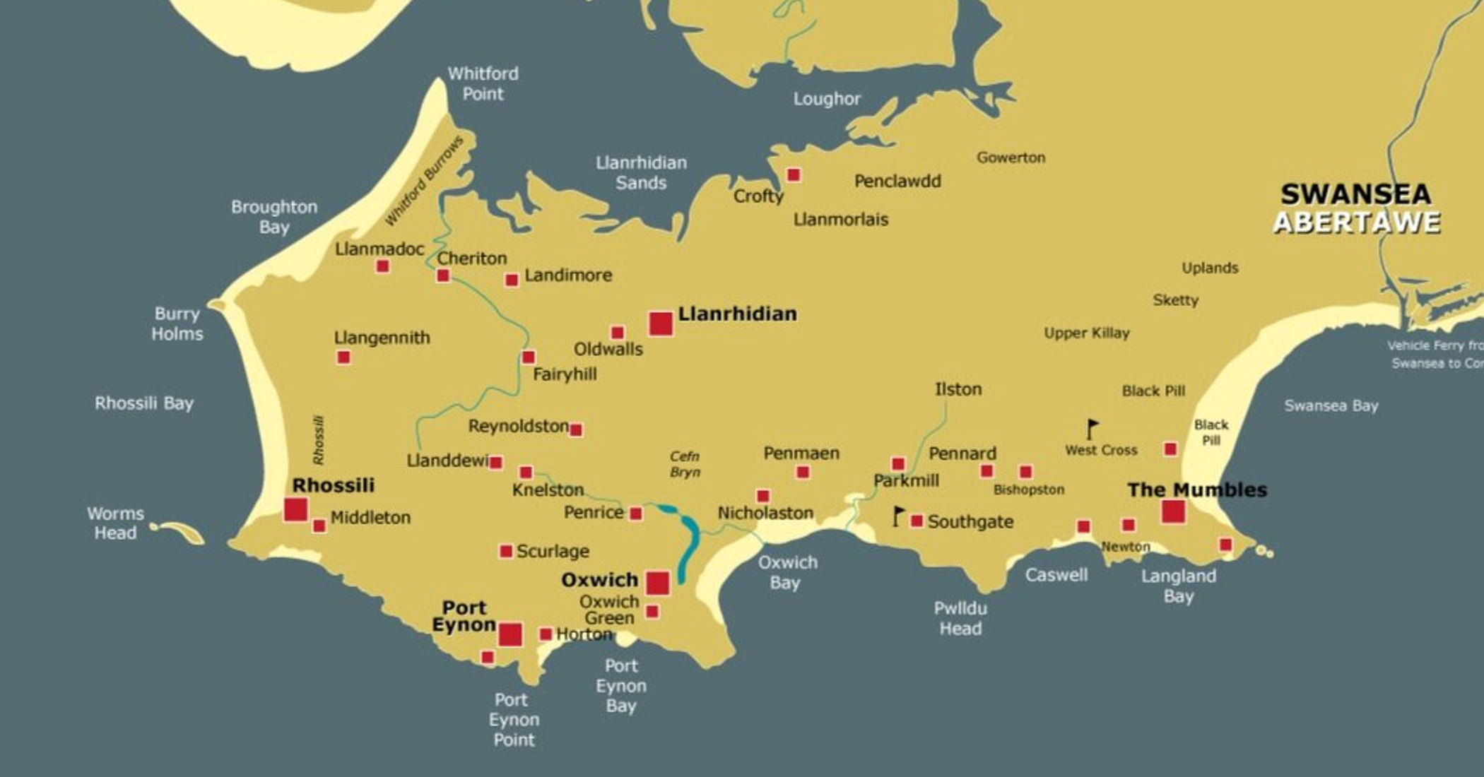 PÓŁWYSEP GOWER – MAPA PARKU KRAJOBRAZOWEGO