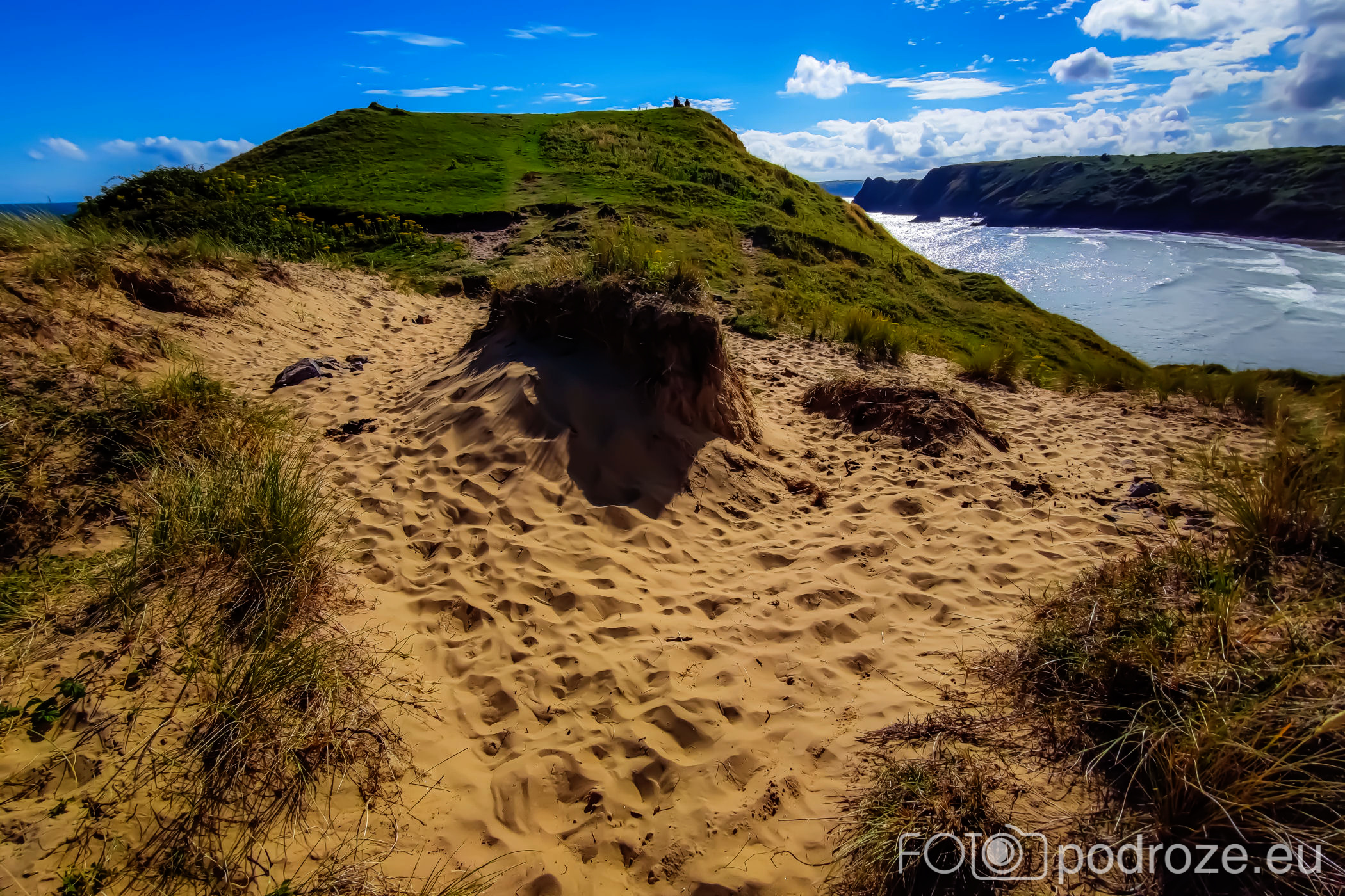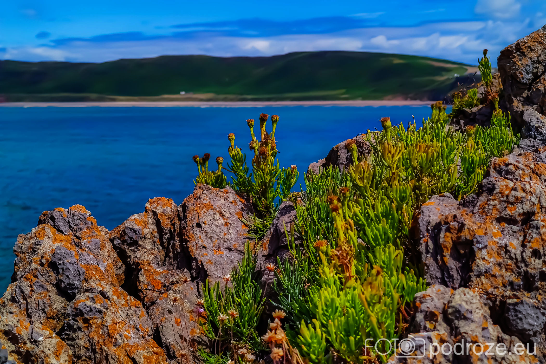 Aby obejrzeć zatokę i przecinające ją klify musimy przejść przez wyjątkowo malownicze wydmy. Malownicze, bo oprócz kolorów pisaku i traw jest tu wokół mnóstwo kwiatów.