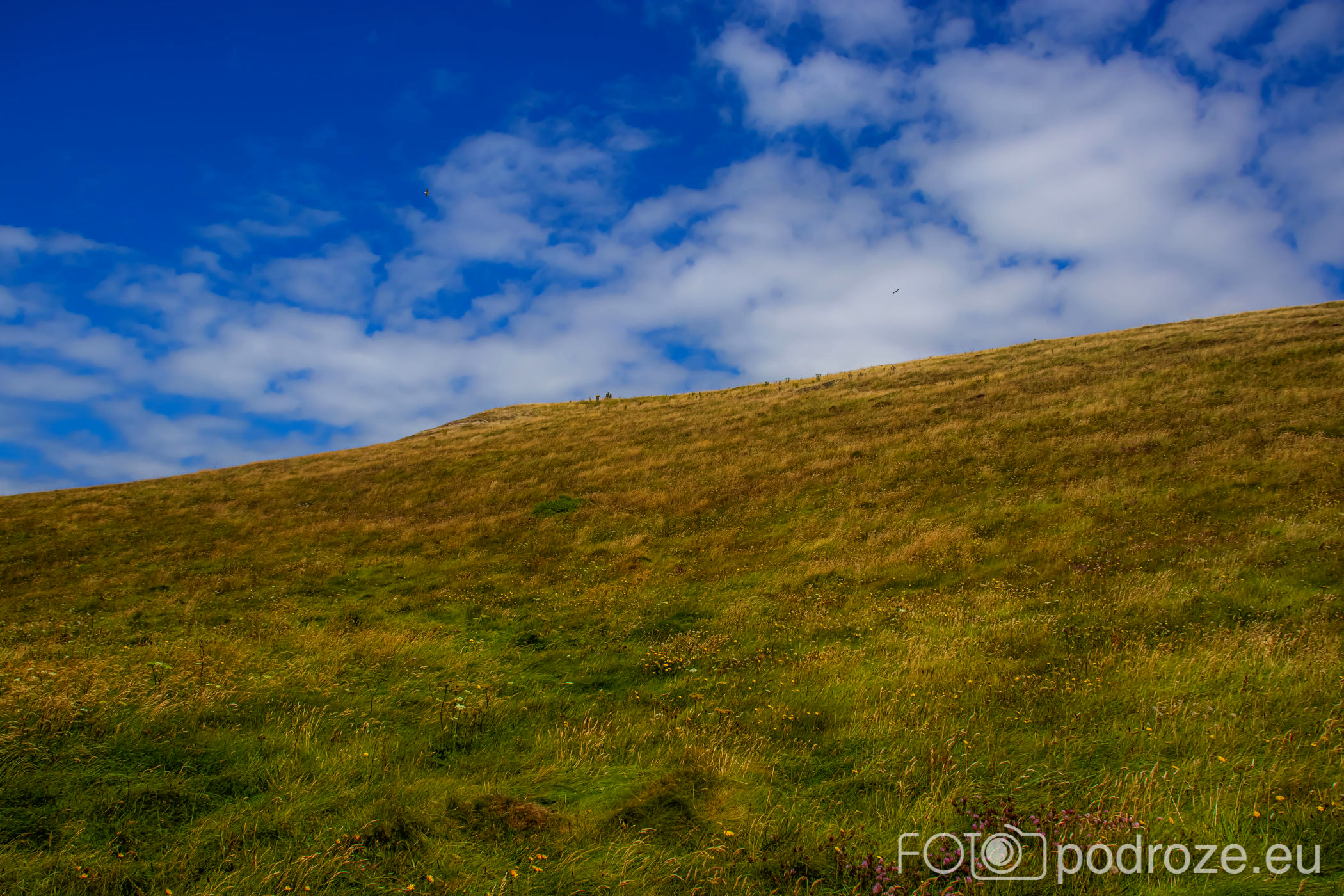 Już po opuszczeniu zielonego parkingu towarzyszą nam spektakularne widoki. Nie widzimy jeszcze dokąd nas trasa prowadzi, ale nie da się ukryć – na samotność w tym miejscu nie mamy co liczyć, bo jest to w zasadzie jedyne takie miejsce w całej Walii, które przyciąga dosłownie tłumy. I nie bez powodu, to faktycznie najpiękniejsze miejsce tej części kraju.