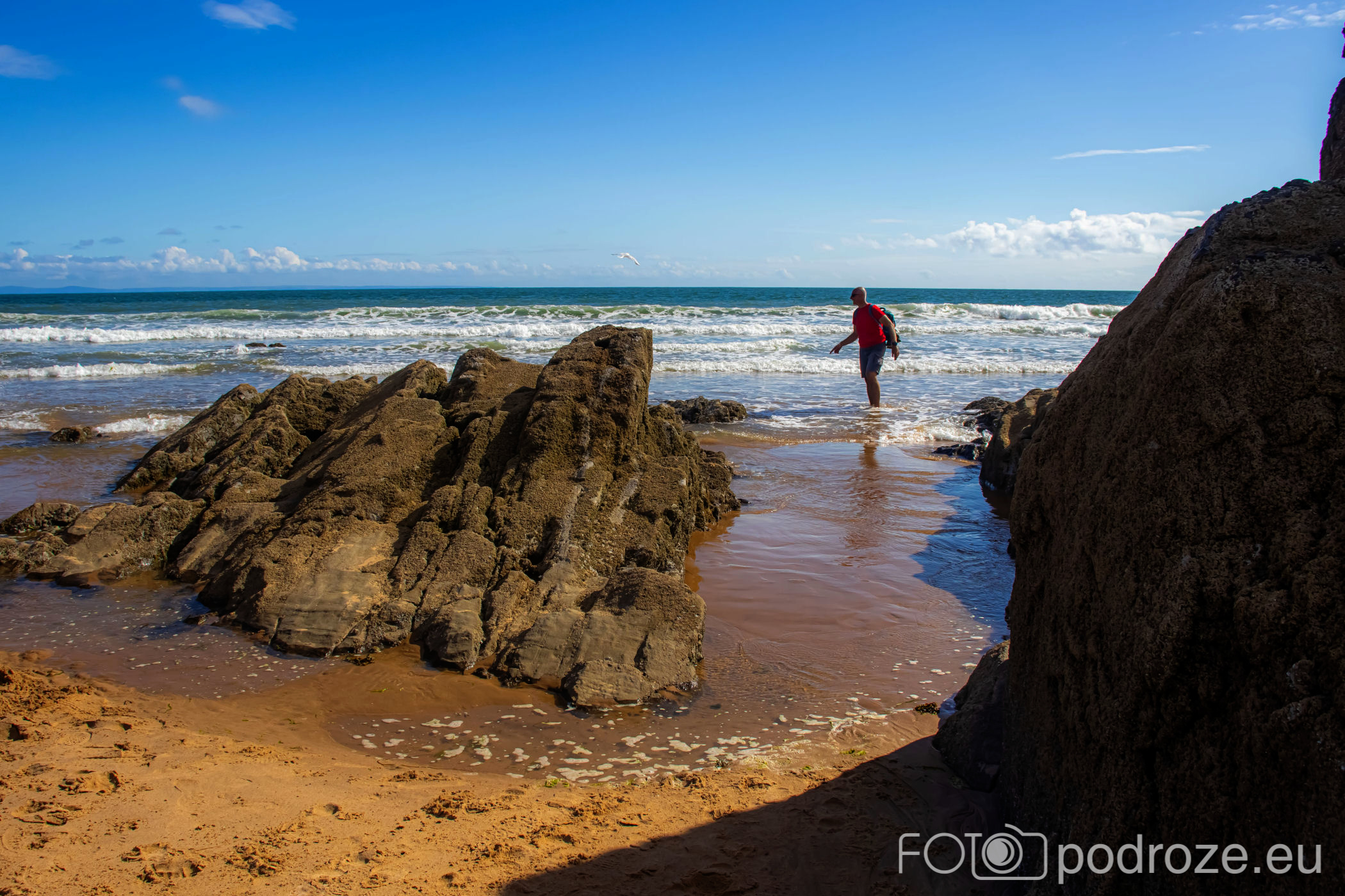 Aby zobaczyć plażę w całej okazałości najlepiej powędrować na najwyższy szczyt półwyspu wcinającego się w zatokę, a wyglądającego z oddali na wielkie cielsko smoka wylegującego się na plaży. Czy tylko ja go widzę skoro plaża i ten klif wcale nie noszą takiej nazwy, a powinny.