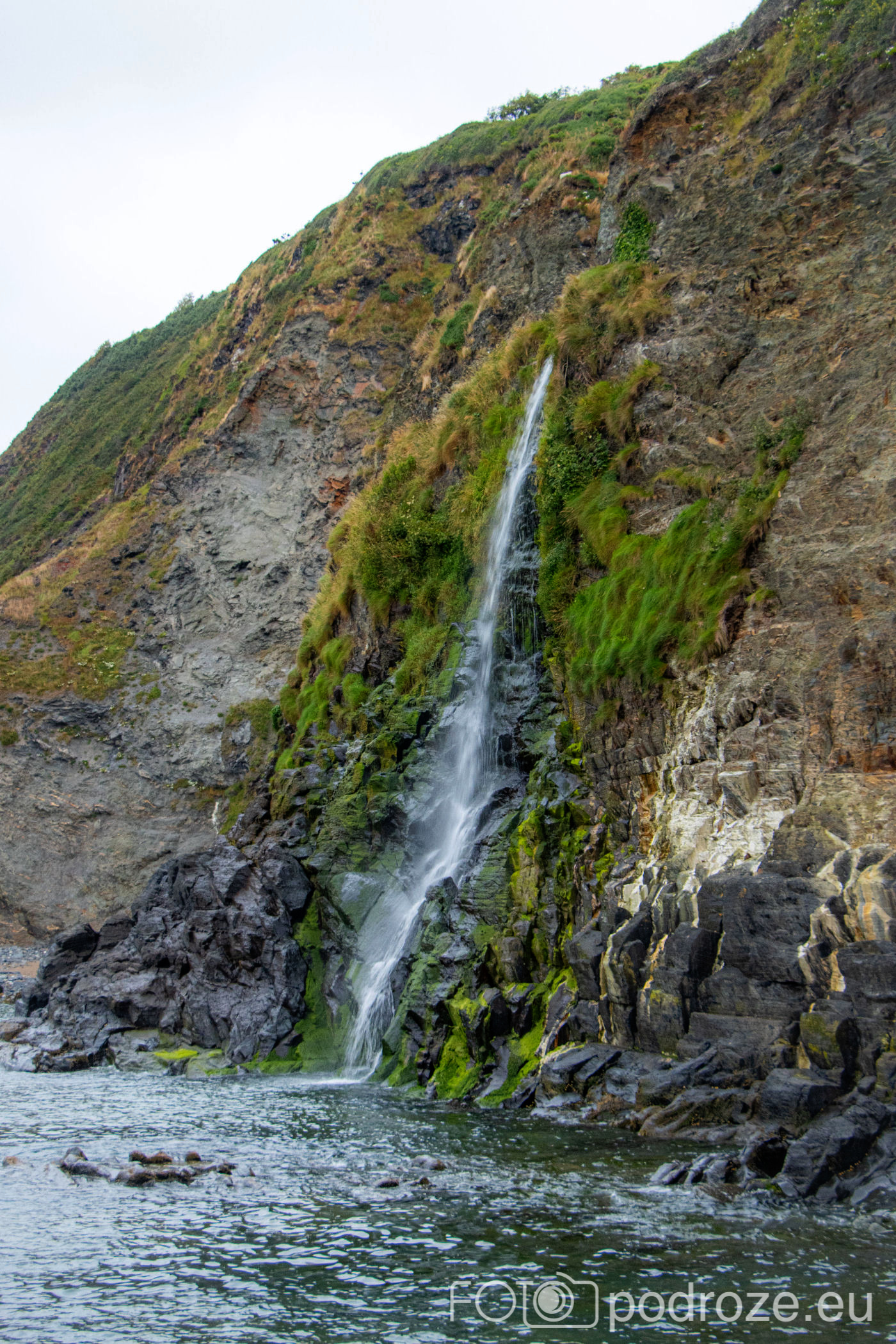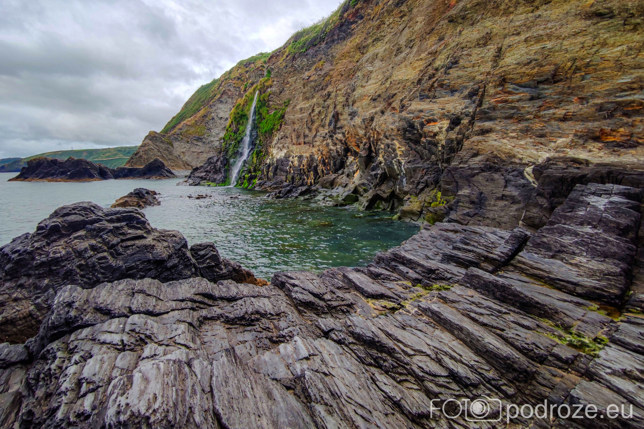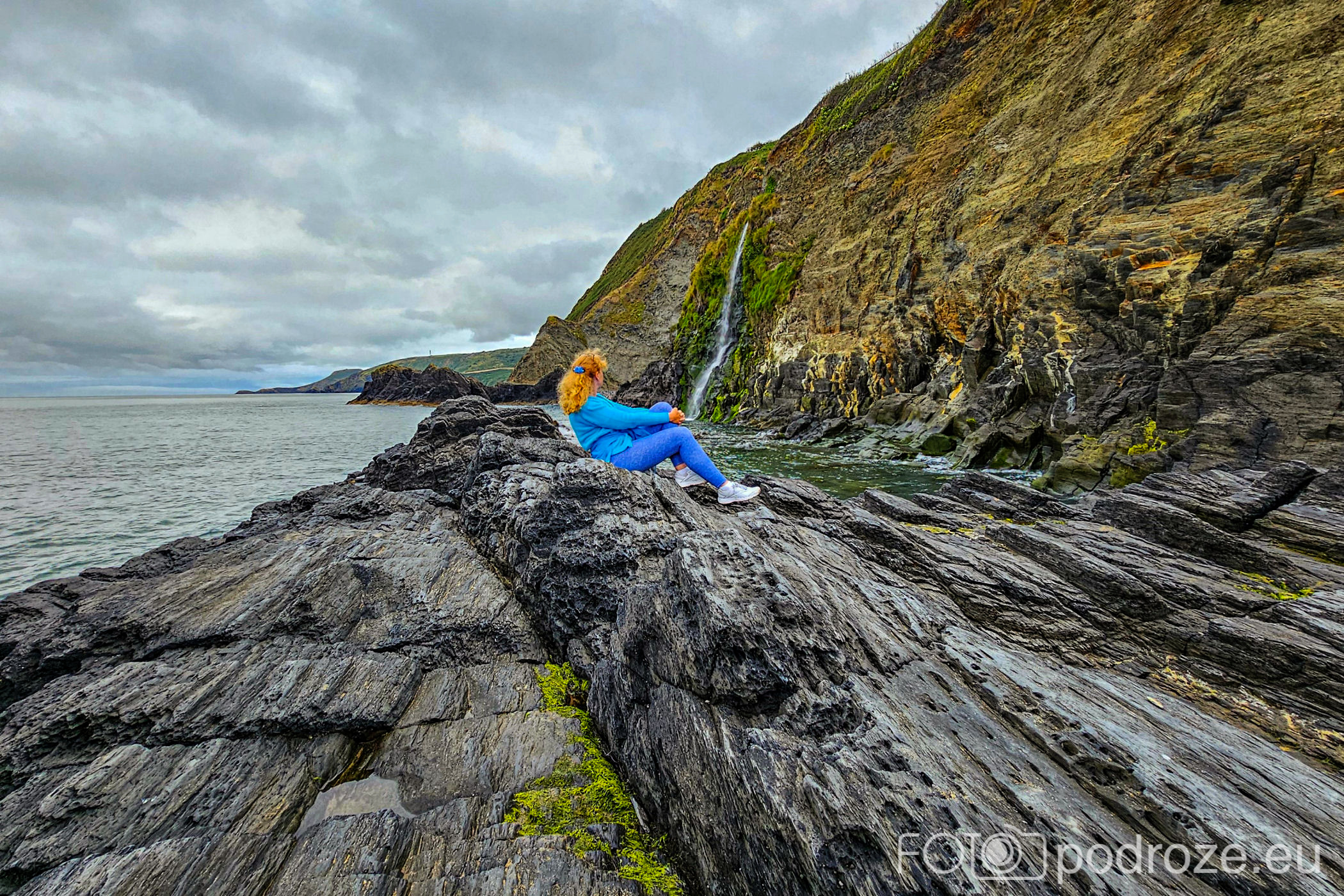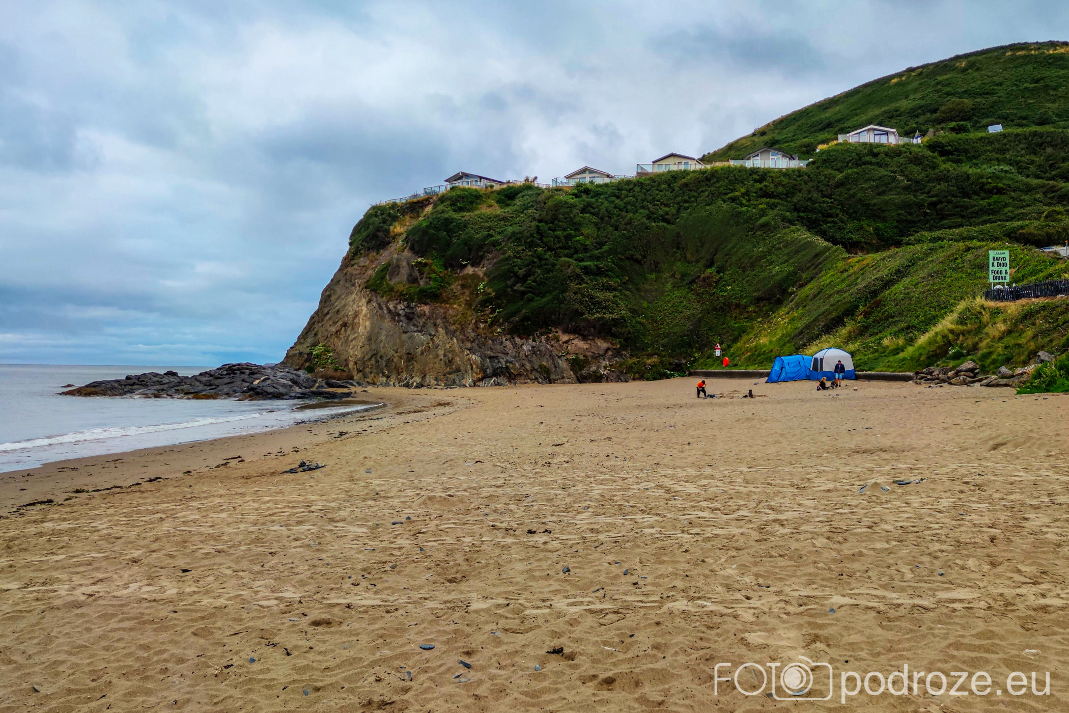 Do Tresaith docieramy późnym popołudniem. To jedna z wielu urokliwych wiosek nadmorskich położonych przy samej plaży w jednej z zatoczek. Ta jednak jest wyjątkowa, a to za sprawą pięknego wodospadu rzeki Saith, który spada z klifów bezpośrednio do morza. Według lokalnej legendy nazwa Tresaith pochodzi od historii siedmiu córek króla Irlandii, które uciekły do Walii, płynąc przez morze. Każda z nich osiedliła się w innej części wybrzeża, a Tresaith upamiętnia ich losy.
