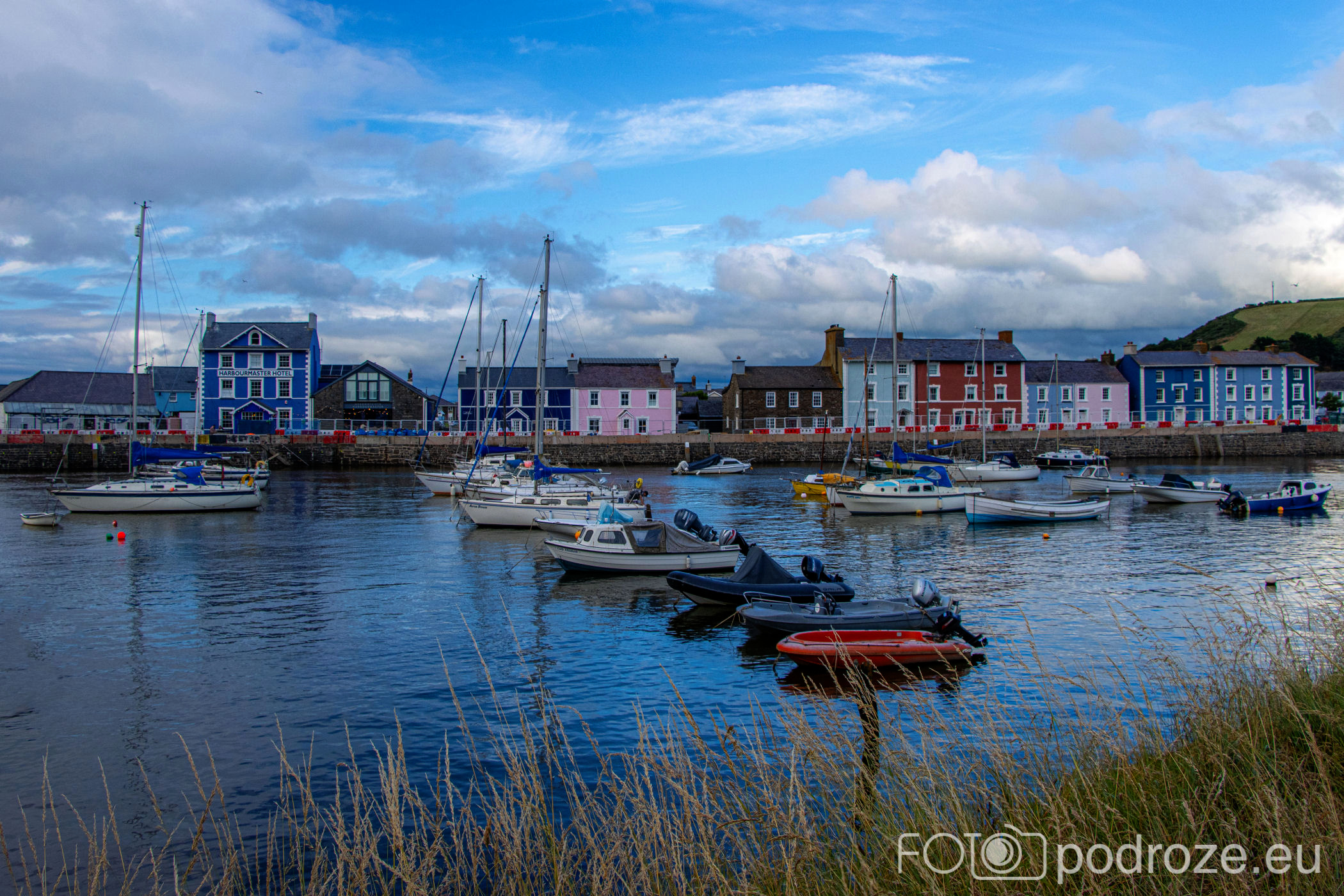 Aberaeron to urocze, niewielkie miasteczko położone na zachodnim wybrzeżu Walii. W zasadzie nie planowaliśmy się w nim zatrzymywać, ale już na wjeździe zaskoczyła nas czystość i kolorystyka. Całe miasteczko wyglądało tak jak by dopiero co zdjęto z budynków rusztowania. Faktycznie Aberaeron znane jest ze swojej kolorowej architektury, klimatycznego portu i spokojnej atmosfery. Port to centralny punkt miasteczka, otoczony kolorowymi georgiańskimi domami, które nadają temu miejscu wyjątkowy charakter. Aberaeron jest takie kolorowe dzięki swojej unikalnej architekturze georgiańskiej i tradycji malowania domów w jasnych, pastelowych barwach. Zostało zaprojektowane w XIX wieku, a kolory domów są starannie dobierane, aby pasowały do reszty budynków w miasteczku. Powstaje spójna, harmonijna estetyka, która sprawia, że Aberaeron jest wizualnie wyjątkowe.