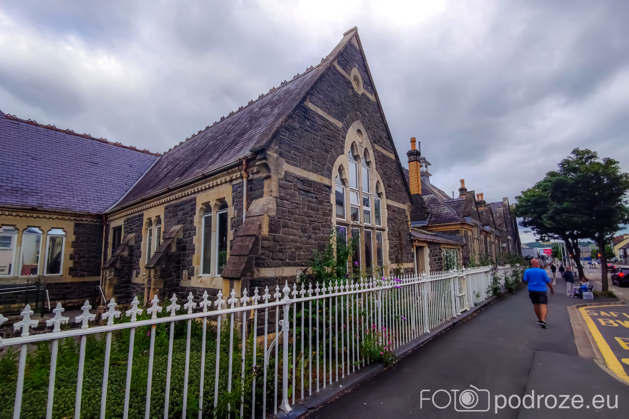 Tuż obok jest ogromny budynek niestety cały w rusztowaniach. To jak się okazuje, jeden z najstarszych uniwersytetów w Walii, znany z imponującej architektury i pięknego kampusu na wzgórzu. Biblioteka narodowa Walii połączona jest z kampusem, a całość zabudowy wygląda jak z bajki. Zdjęcie bez rusztowań z Wikipedii > źródło.