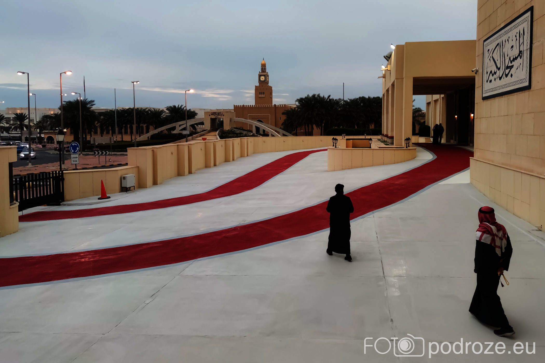 Emir wchodzi specjalnymi drzwiami od północnego zachodu, tu znajduje się też dla niego specjalny podjazd oznaczony na czerwono.