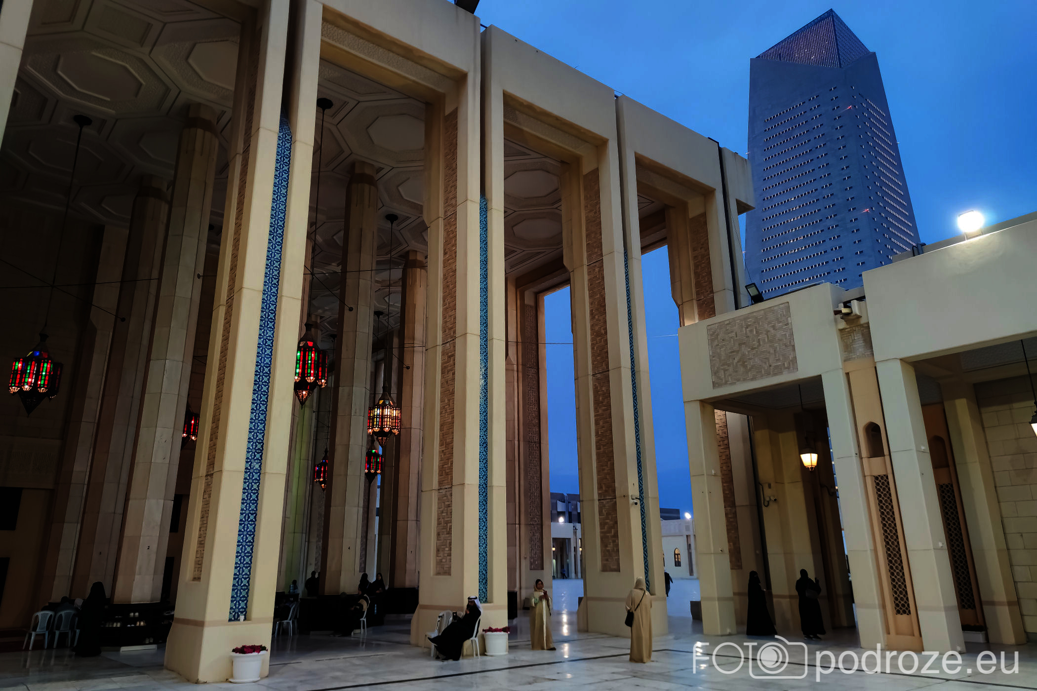 Wielki Meczet w Kuwejcie początkowo nie był na naszej liście obiektów obowiązkowych do odwiedzenia. Zawitaliśmy tu w ostatnim dniu pobytu początkowo nawet nie wiedząc, czy będzie to możliwe. Co ciekawe, w meczecie zastaliśmy wewnątrz mnóstwo kobiet. Okazało się, że trwał właśnie konkurs znajomości Koranu i w specjalnych namiotach ustawionych wewnątrz , kobiety i dzieci były „testowane”.