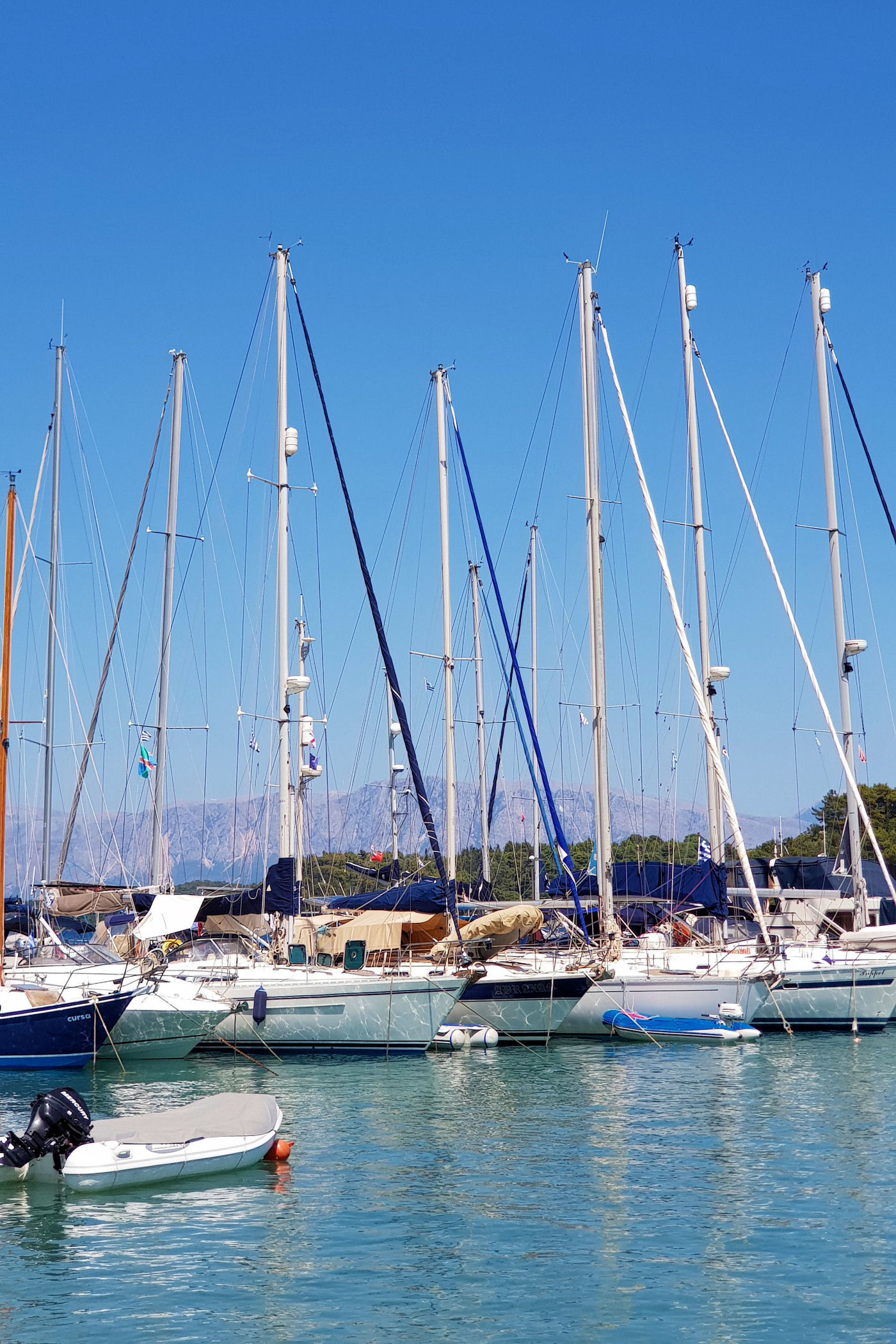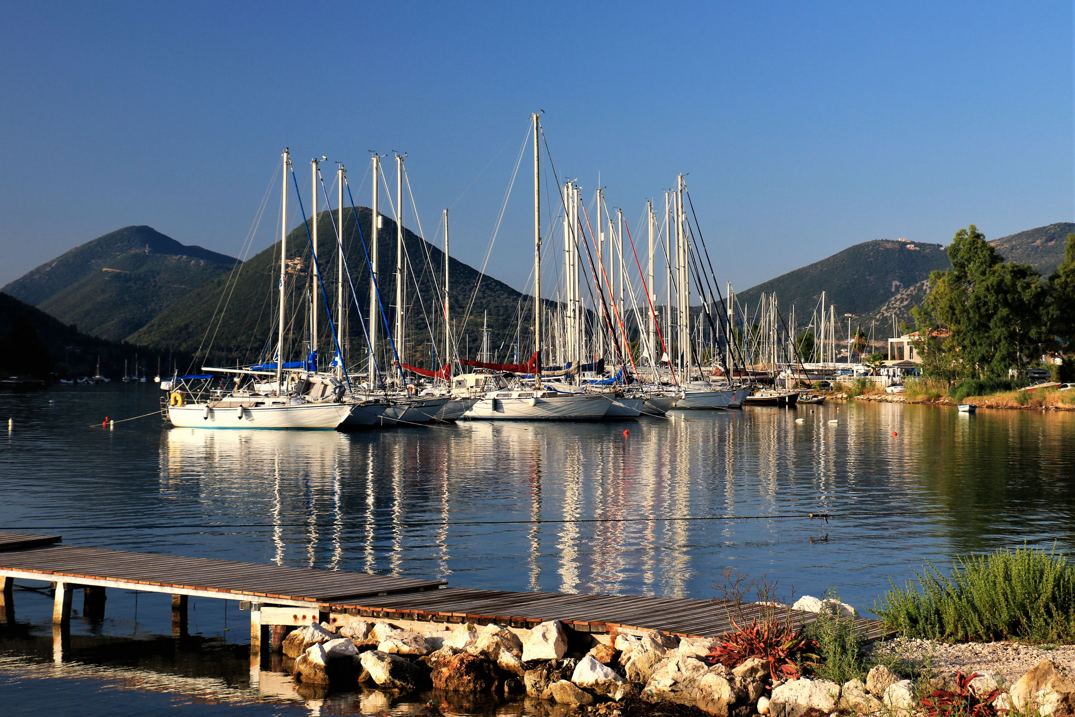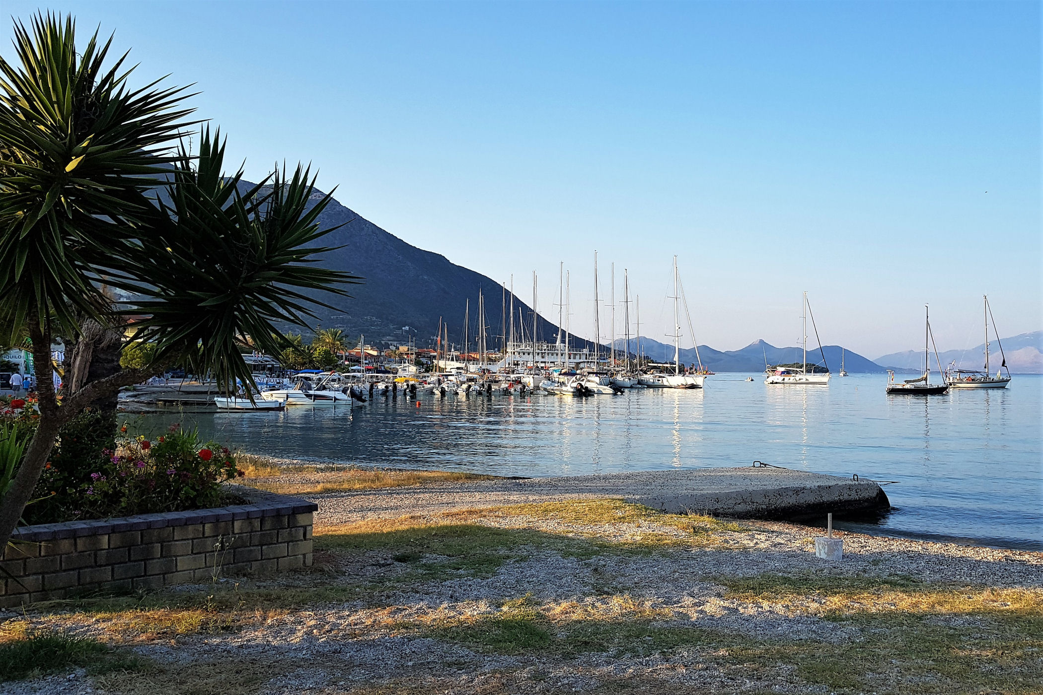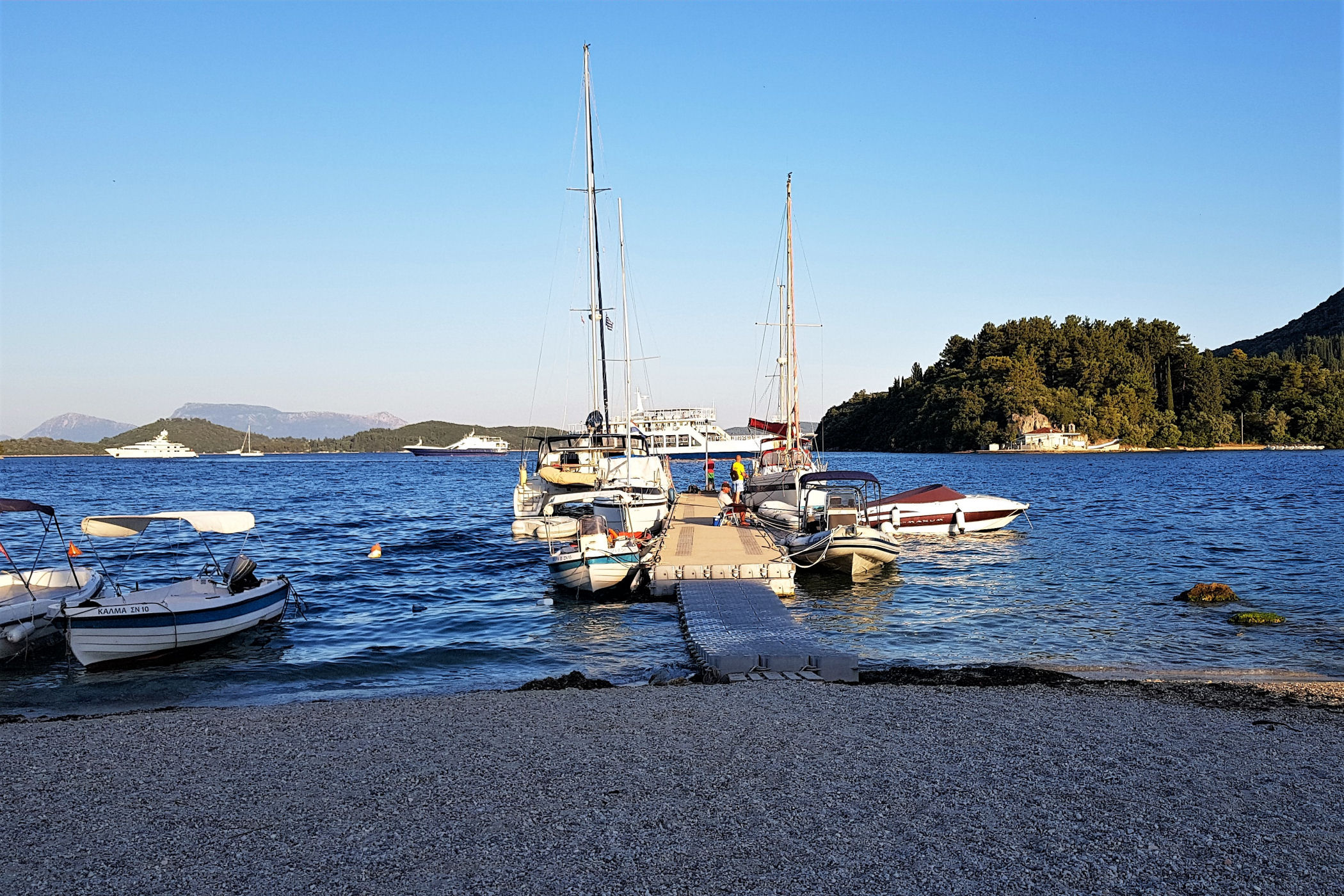 Niestety od hotelu nie da się już zajść zbyt daleko. Wzdłuż kolejnych zacumowanych jachtów dojdziemy do złomowiska łodzi. Szkoda, że nie poprowadzono drogi wzdłuż wybrzeża, bo po drugiej stronie zatoczki znajdują się urocze plaże i można by do nich dojść na piechotę, albo zajechać rowerem ( w Nidri znajdziecie sporo wypożyczalni )