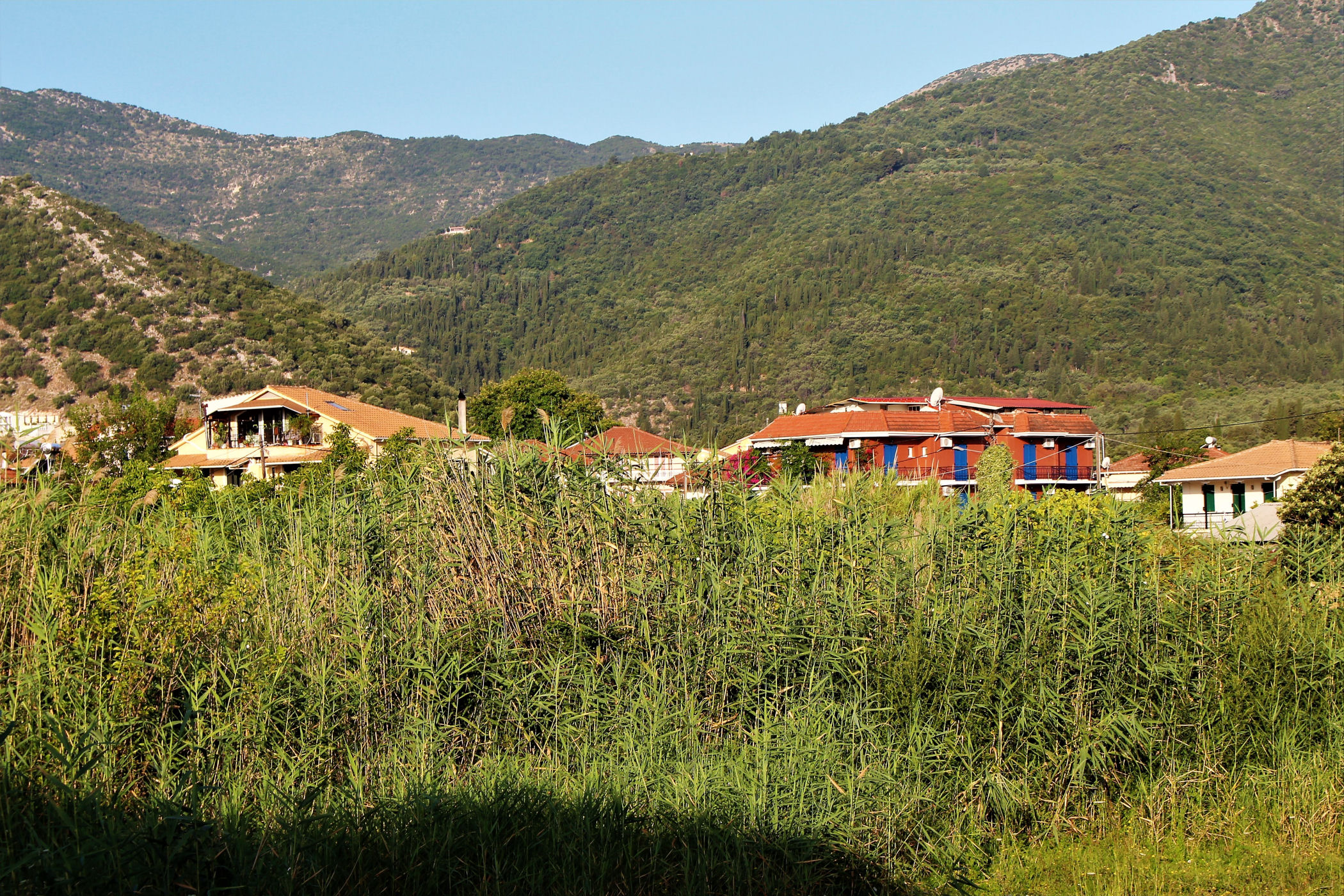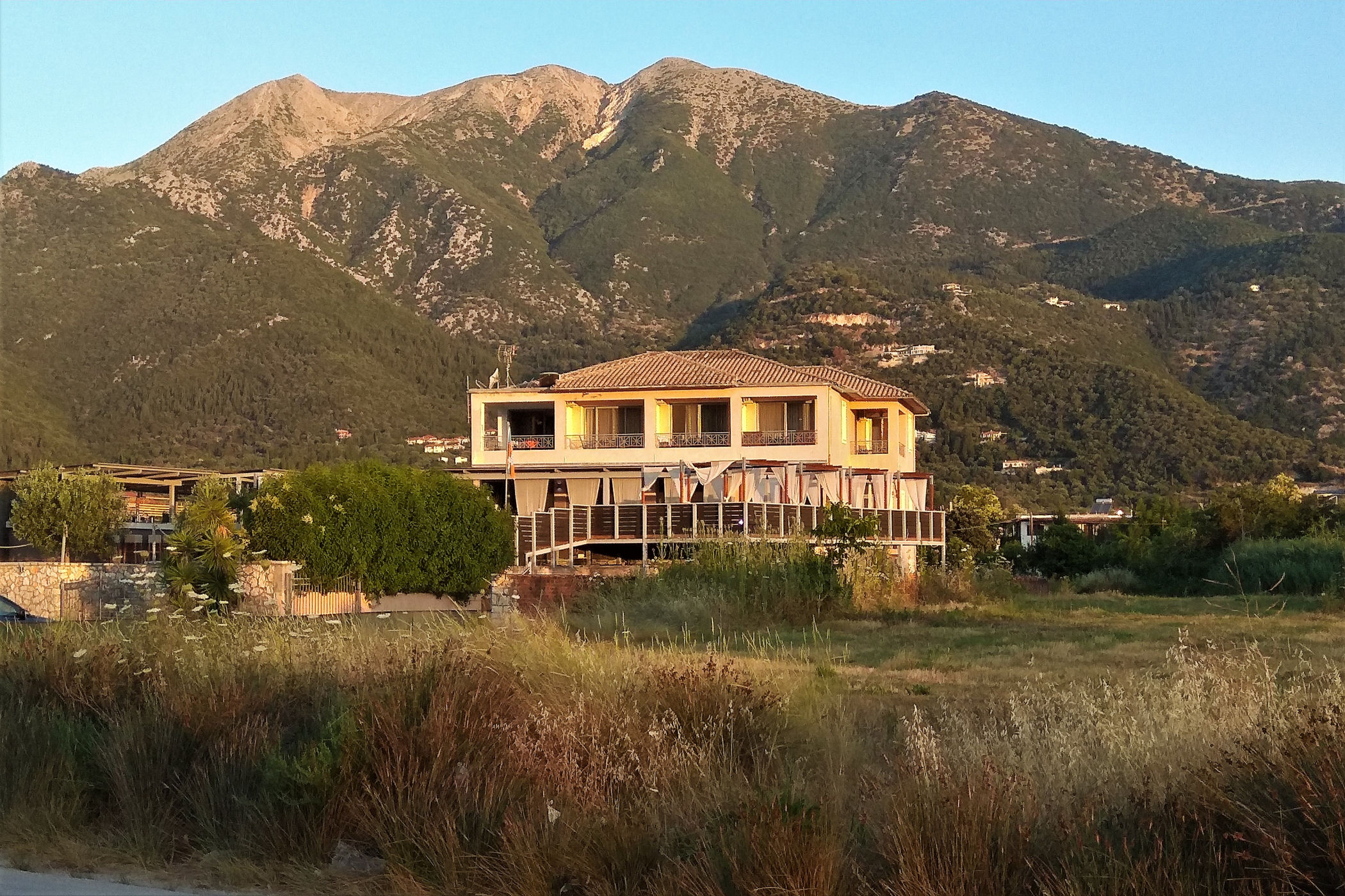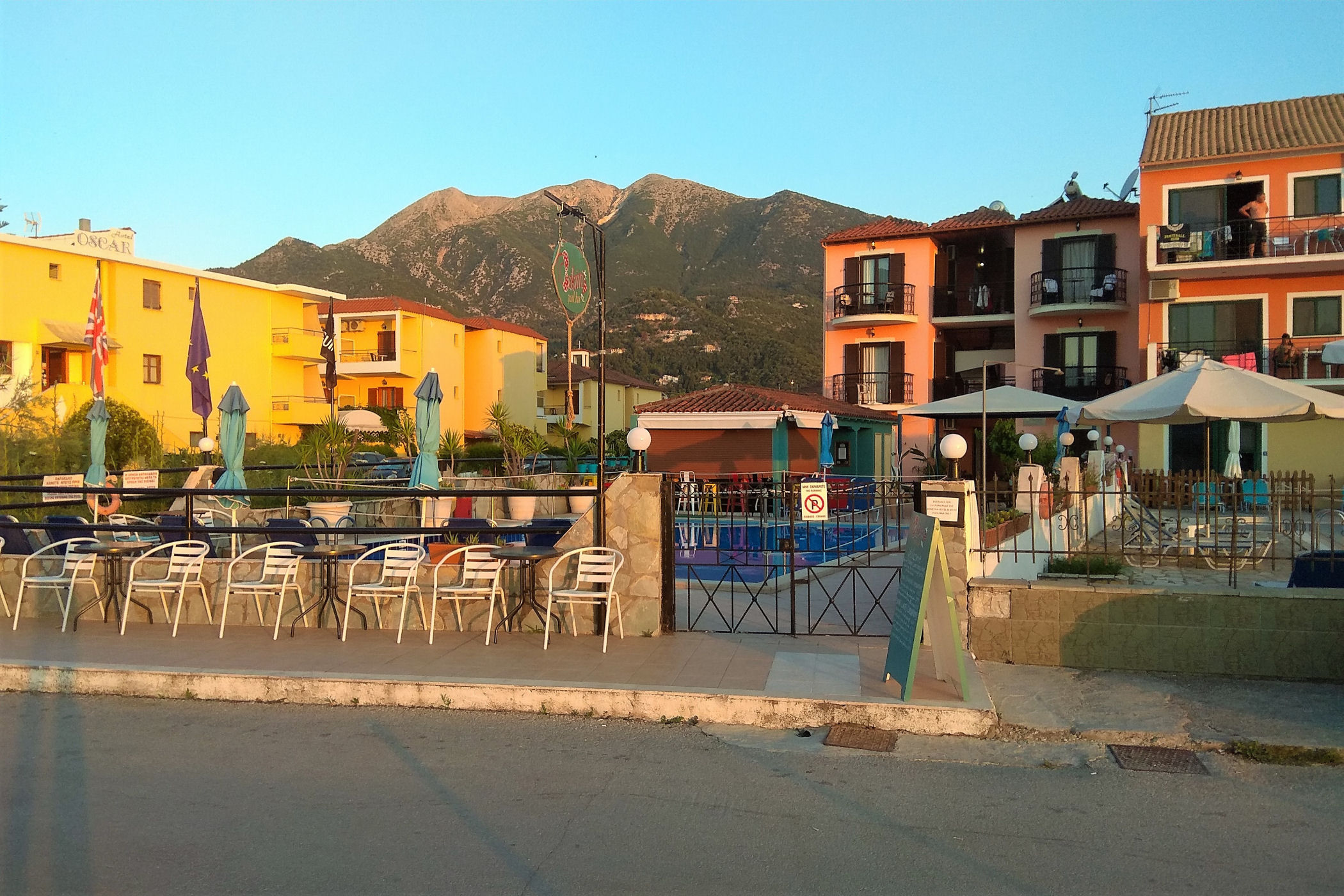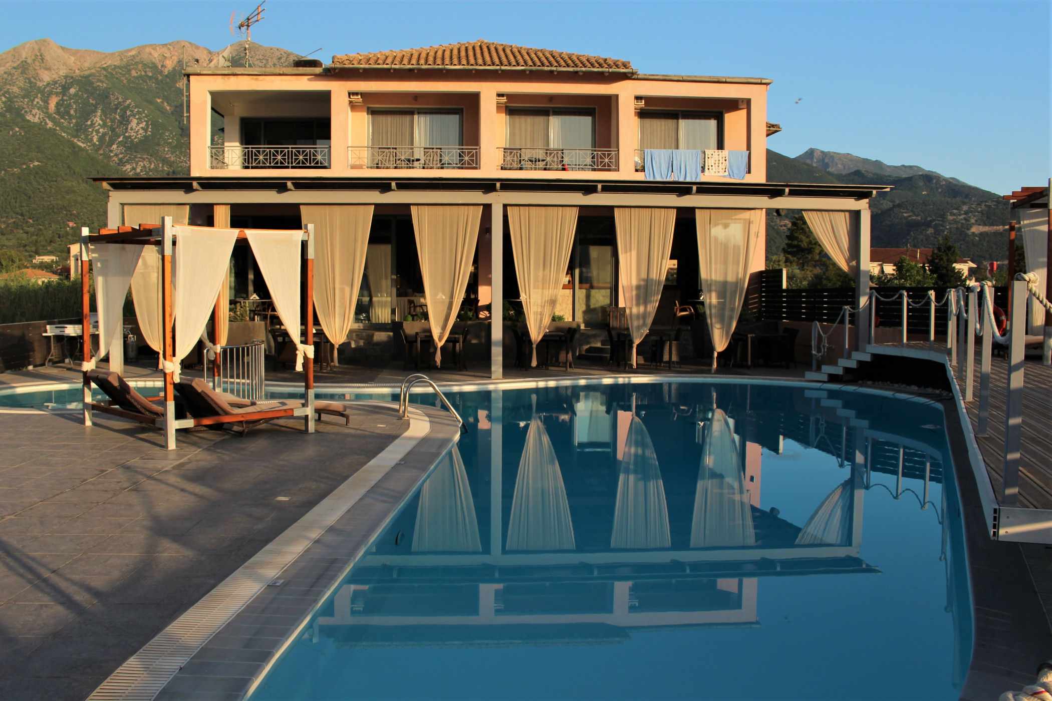 Skoro pokazałam już okolice naszego hotelu – czas na pokazanie i opowiedzenie o samym obiekcie. HOTEL ARMONIA mieści się w wyjątkowo sympatycznym miejscu, na skraju NIdri, co powoduje, że panuje tu cisza i spokój. I takie też było założenia właściciela – Australijczyka, który osiedlił się tu ponad 20 lat temu i wybudował to miejsce. Relaks i cisza – to główne określenia hotelu. To miejsce dla mniej wymagających turystów. Ma piękne położenie, jest czysto i schludnie, ale ma 3 wady: Nie da się spać latem przy wyłączonej klimatyzacji, pokój natychmiast nagrzewa się. II kwestia to bardzo skromne i monotonne śniadania. Nie jest to jednak dużym problemem, bo na mieście wszędzie można dobrze zjeść. III to po za właścicielem brak znajomości angielskiego u pracowników obiektu ( ale to domena większości Greków).