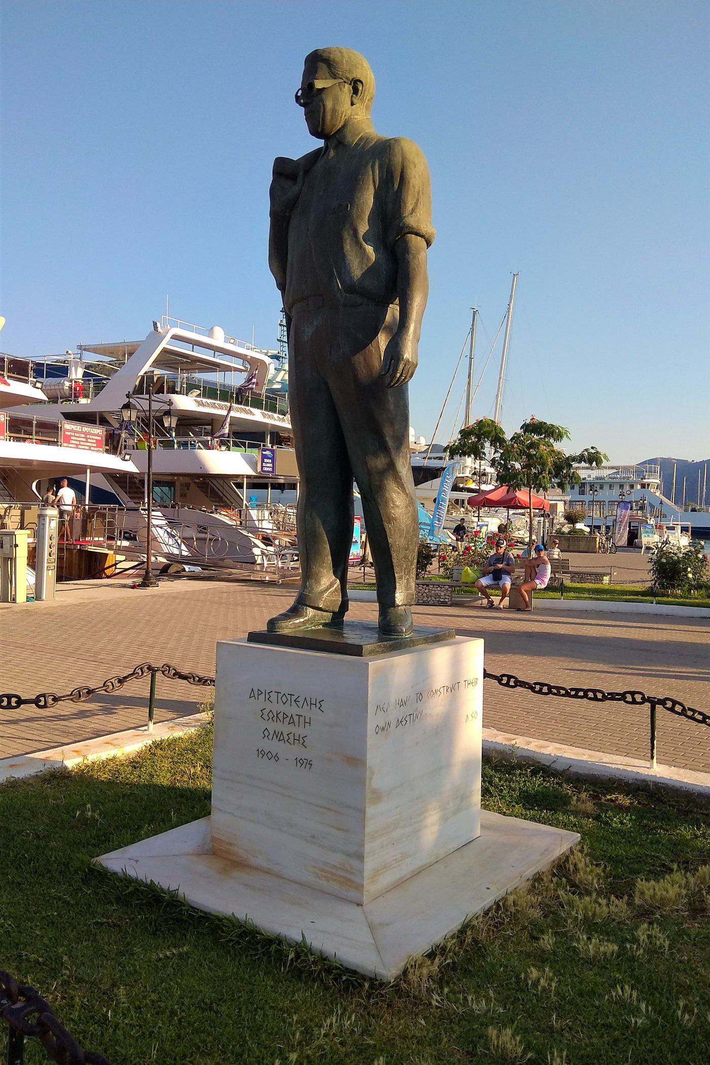 To centrum miasta , na placu dumnie stoi pomnik Onasisa, a w porcie zacumowane są statki wycieczkowe oferujące przeróżne rodzaje wycieczek po wyspach, plażach z opcją atrakcji dodatkowych lub bez – dla każdego coś miłego. Opis rodzajów wycieczek oraz relację z jednej z nich znajdziecie już tutaj >>> REJS 7 WYSP >>>