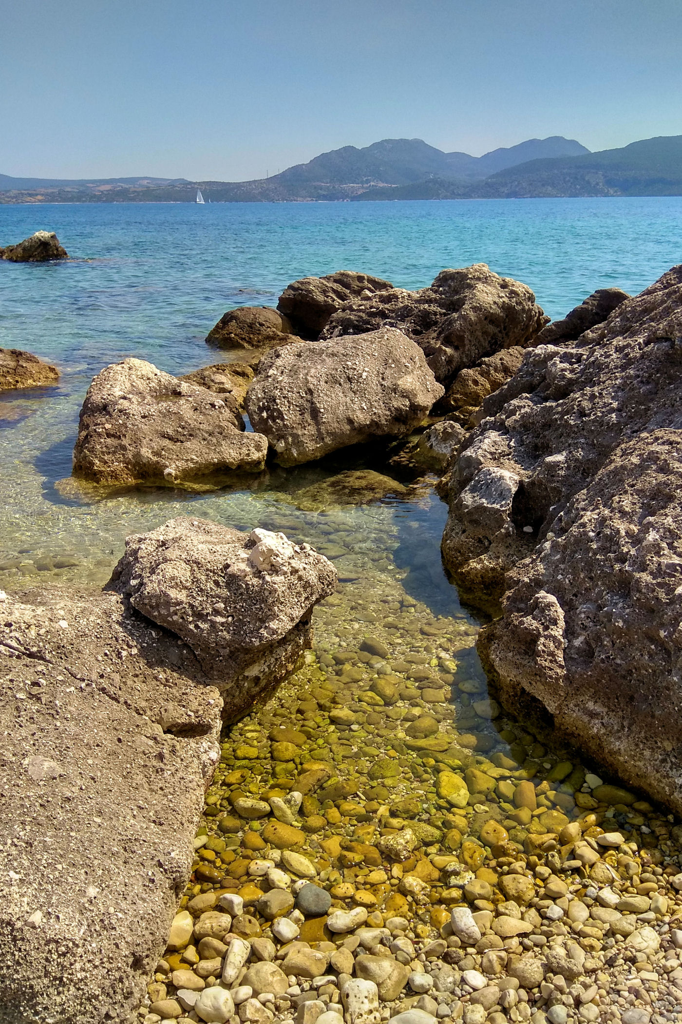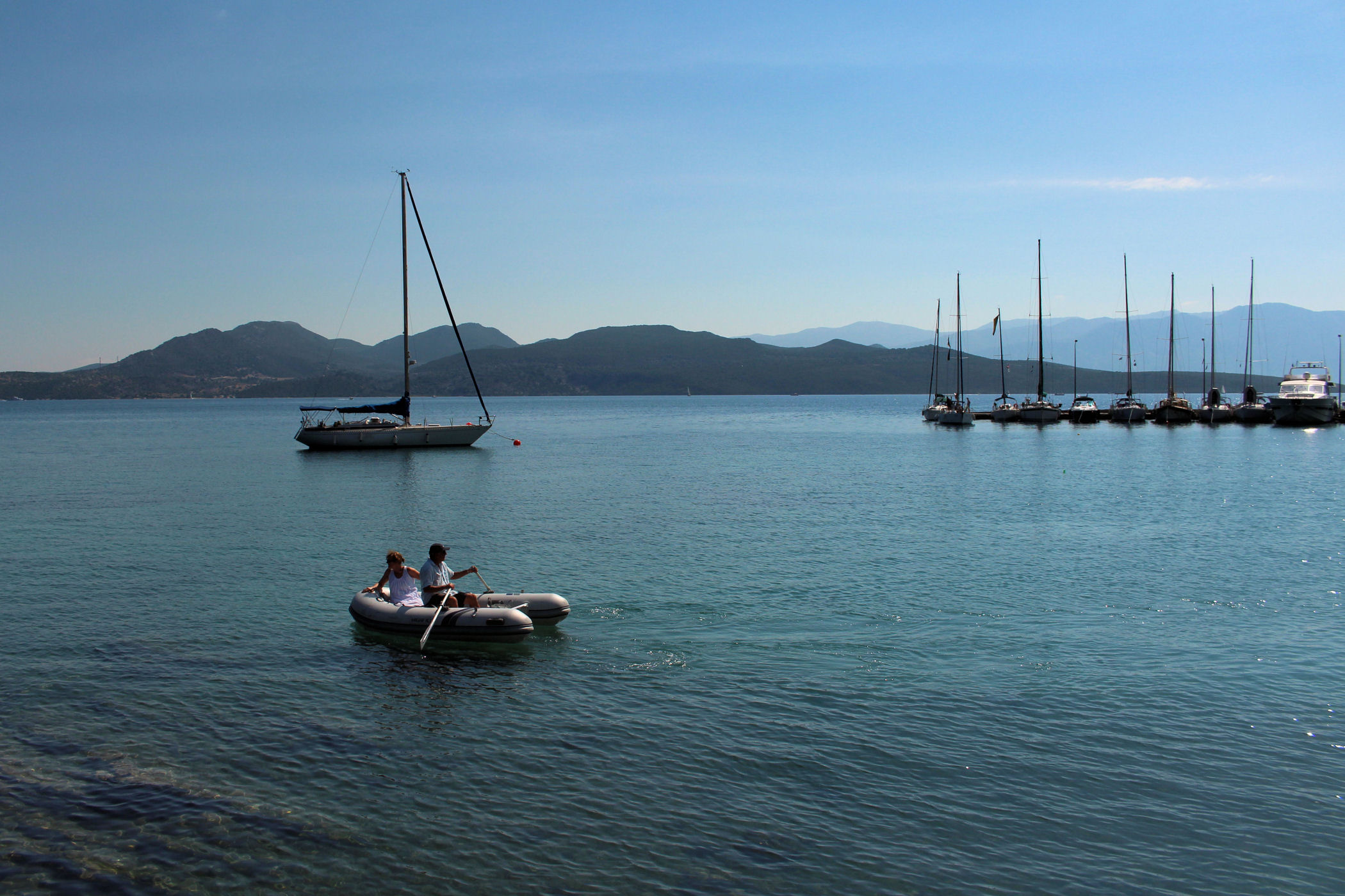 W północnej części miasta znajduje się urocza kolorowa marina . Wzdłuż nabrzeża kilka kolorowych kafejek i tawern. Przysiadam na chwilę w kawiarni APICO , aby odpocząć od upału przyglądając się leniwej atmosferze miasteczka. Idąc dalej na południe dochodzę do miejsca w którym są skały – nie da się dalej przejść .