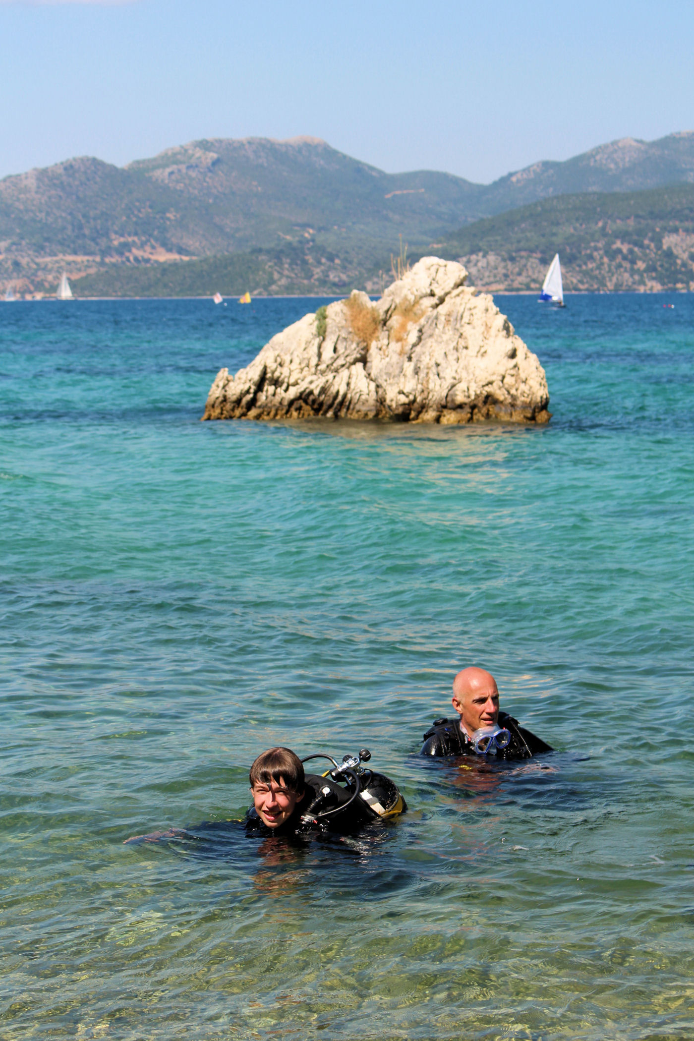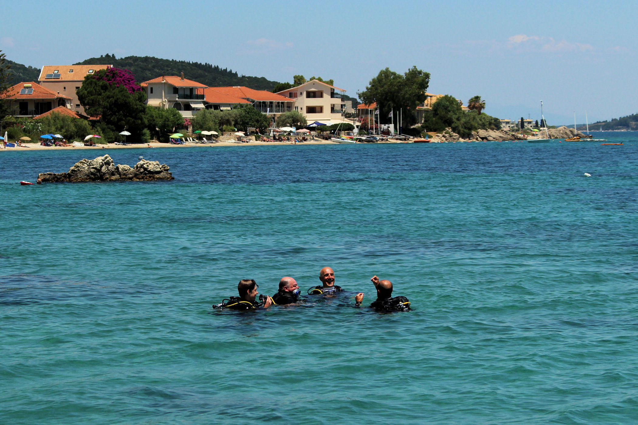 Na stronie centrum opisywane szkolenie robi się w 4-5 dni. Jeśli jednak będziecie zdolnymi uczniami (jak moje chłopaki) – zrobicie to nawet w 3 dni. Kurs składa się z 5 sesji teoretycznych ( warto zabrać sobie podręcznik z centrum i pouczyć się 1/2 dni wcześniej ). 5 sesji umiejętności nurkowania przy brzegu w celu poćwiczenia umiejętności i 4 nurkowania na wodach Lefkada z łodzi lub brzegu, w zależności od odwiedzanego miejsca nurkowania. Po ukończeniu kursu uzyskujesz certyfikat PADI Open Water Diver, uznawany na całym świecie.