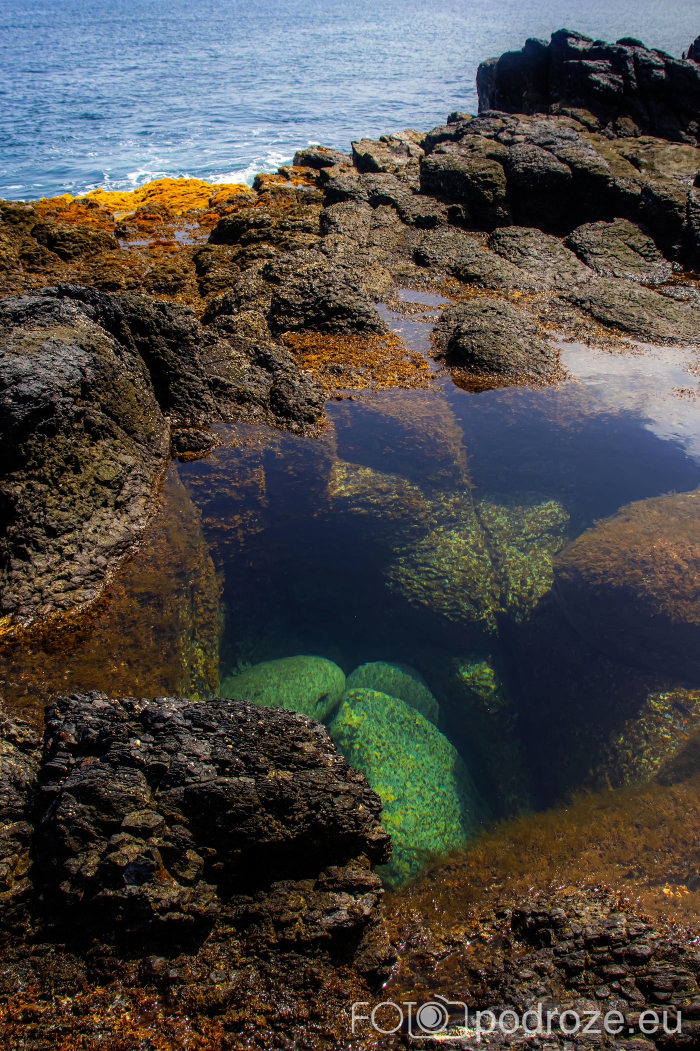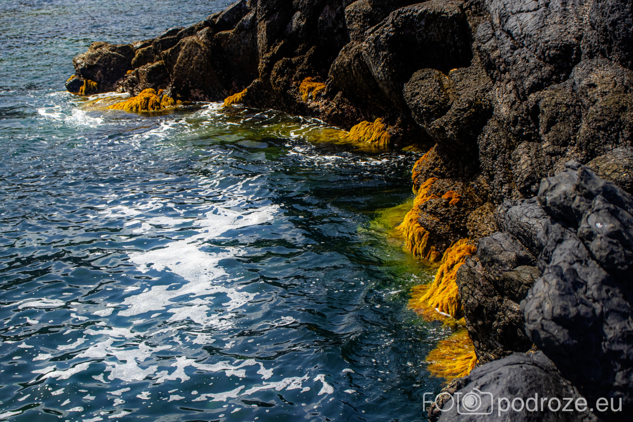 Na pierwszy rzut oka miejsce wydaje się dwukolorowe, bo czarne skały klifów kontrastują tu z błękitem nieba i wody. Kiedy jednak przyjrzymy się detalom, okazuje się, że miejsce ma wiele kolorów.