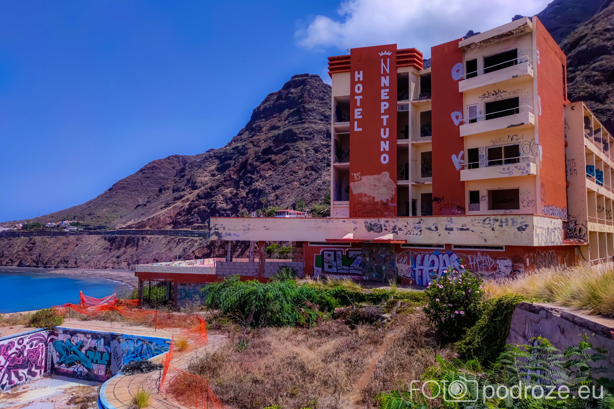 Było najpiękniejsze miejsce tej części wybrzeża jakie odwiedziliśmy, to teraz czas na to, które nas kompletnie rozczarowało. Bajamar to małe, kolorowe nadmorskie miasteczko znane z naturalnych basenów oceanicznych oraz spokojnej, lokalnej atmosfery, która przyciąga zarówno mieszkańców wyspy, jak i turystów szukających relaksu z dala od tłumów. Miasteczko ma jednak swoje brzydkie strony. To ruiny starego, opuszczonego hotelu Neptun, który psuje tu dosłownie cały urok tego miejsca. Niestety takich miejsc jak to na wyspie jest bardzo dużo, a kolejne niestety pokażę jeszcze w tym przewodniku.