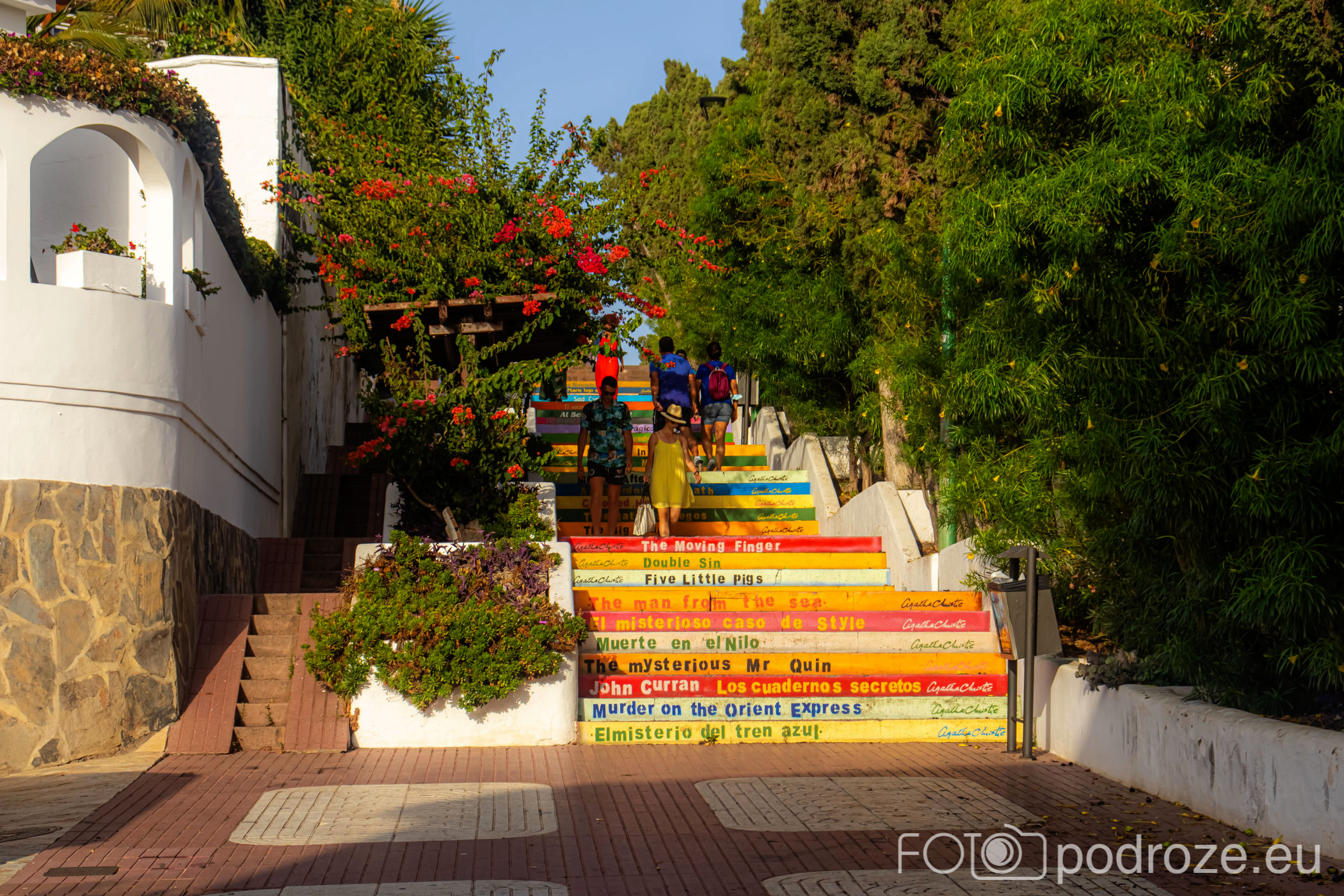 Samo dojście do ogrodów stanowi atrakcje, można się bowiem przejść takimi oto schodami . Wymalowano je w okładki książek i można się poczuć jak w wielkiej bibliotece.