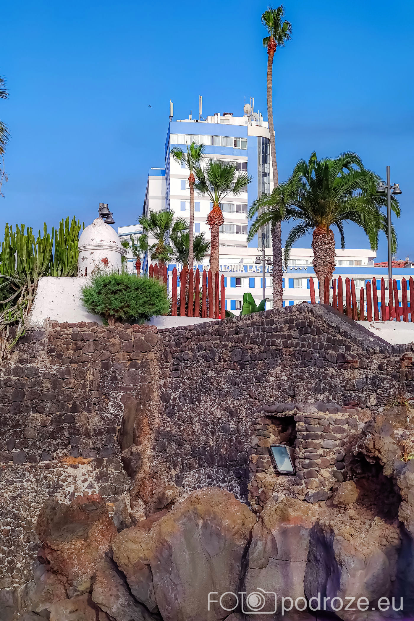 Wybrzeże we wschodniej części nie jest atrakcyjne. Wielkie betonowe moduły zabezpieczają betonowe nabrzeże na którym jest jeden wielki parking. Pośrodku niego znajduje się wieża Faro de Puerto de la Cruz. Niestety podczas mojego spaceru w tym miejscu była nieczynna .