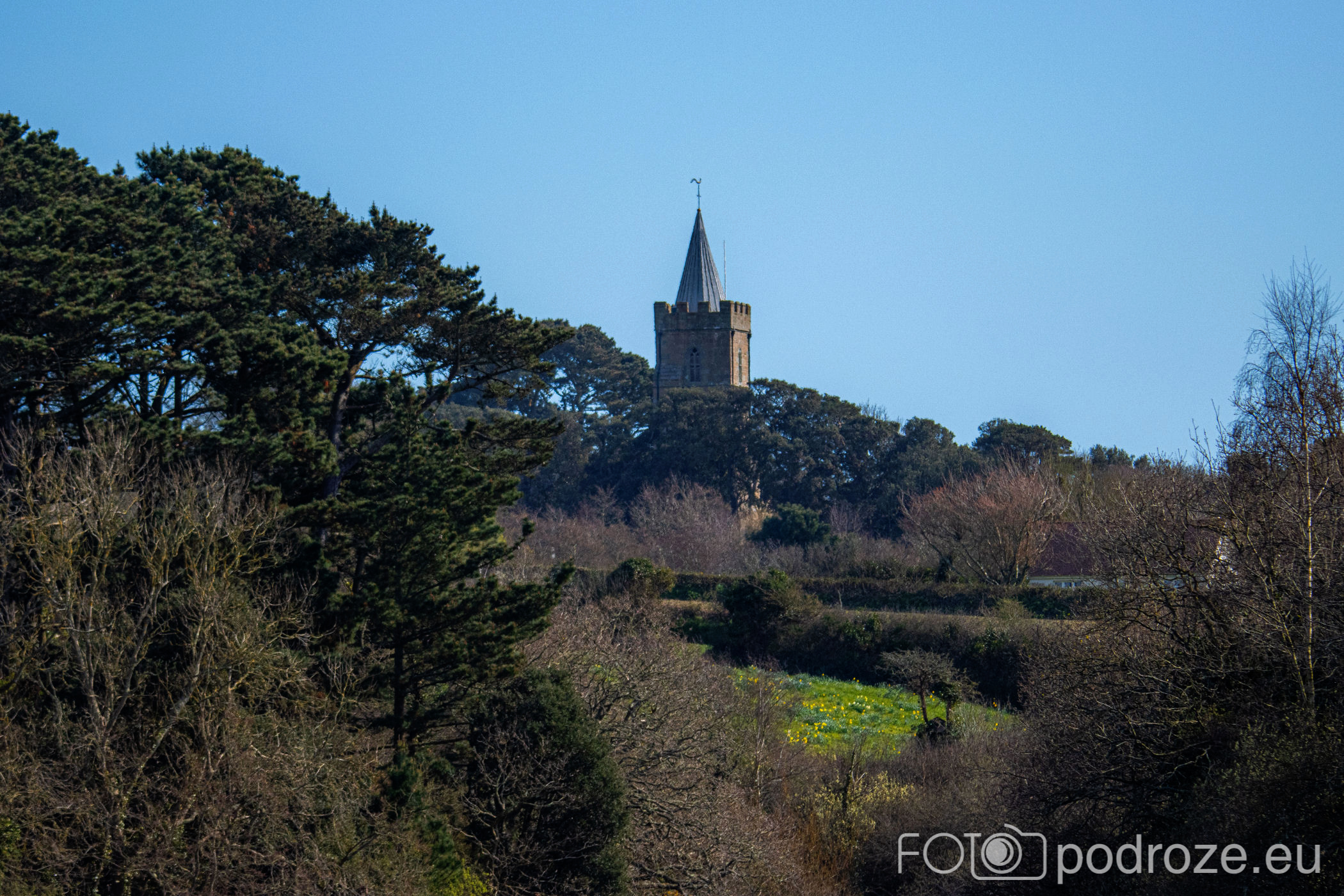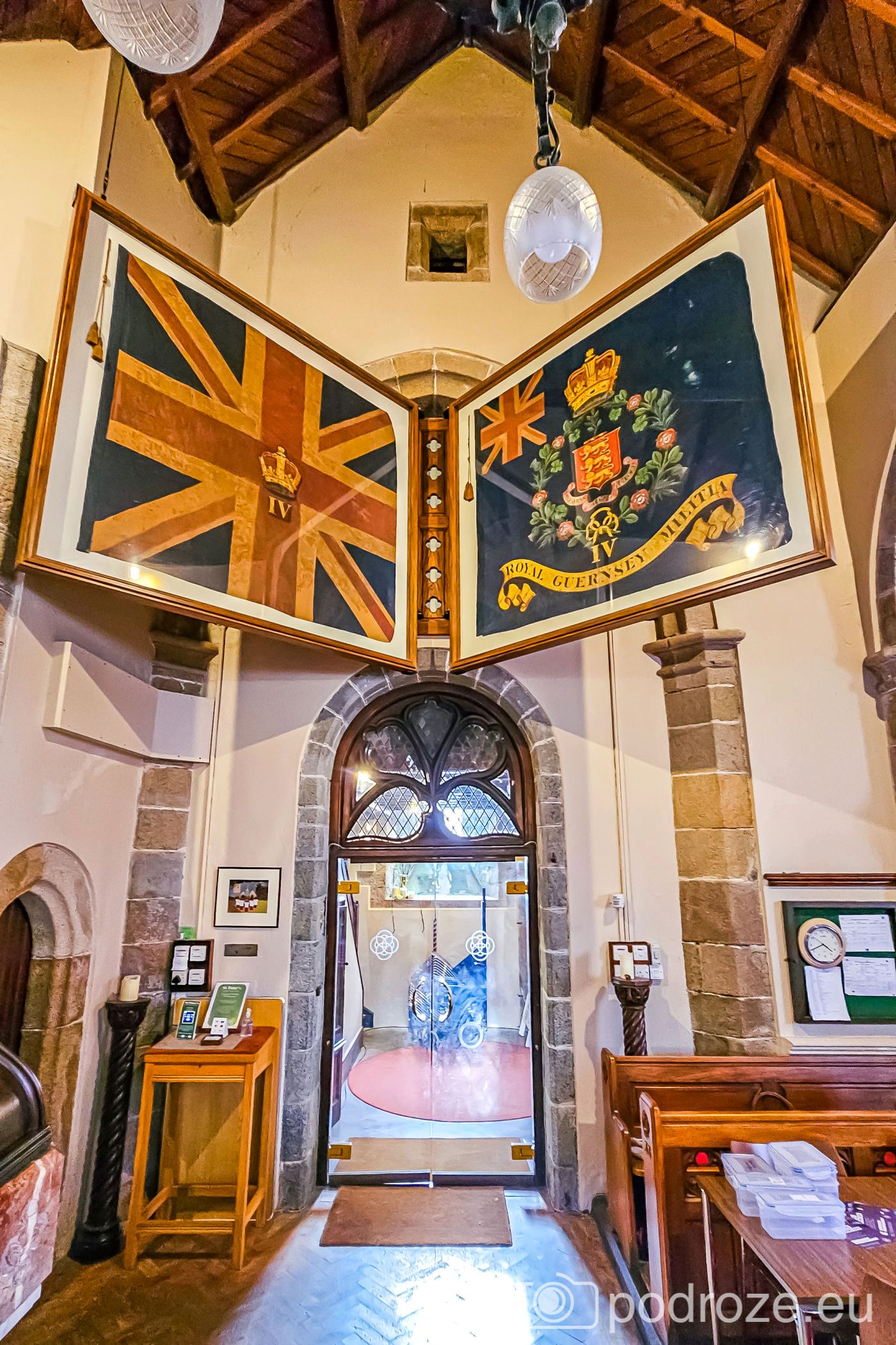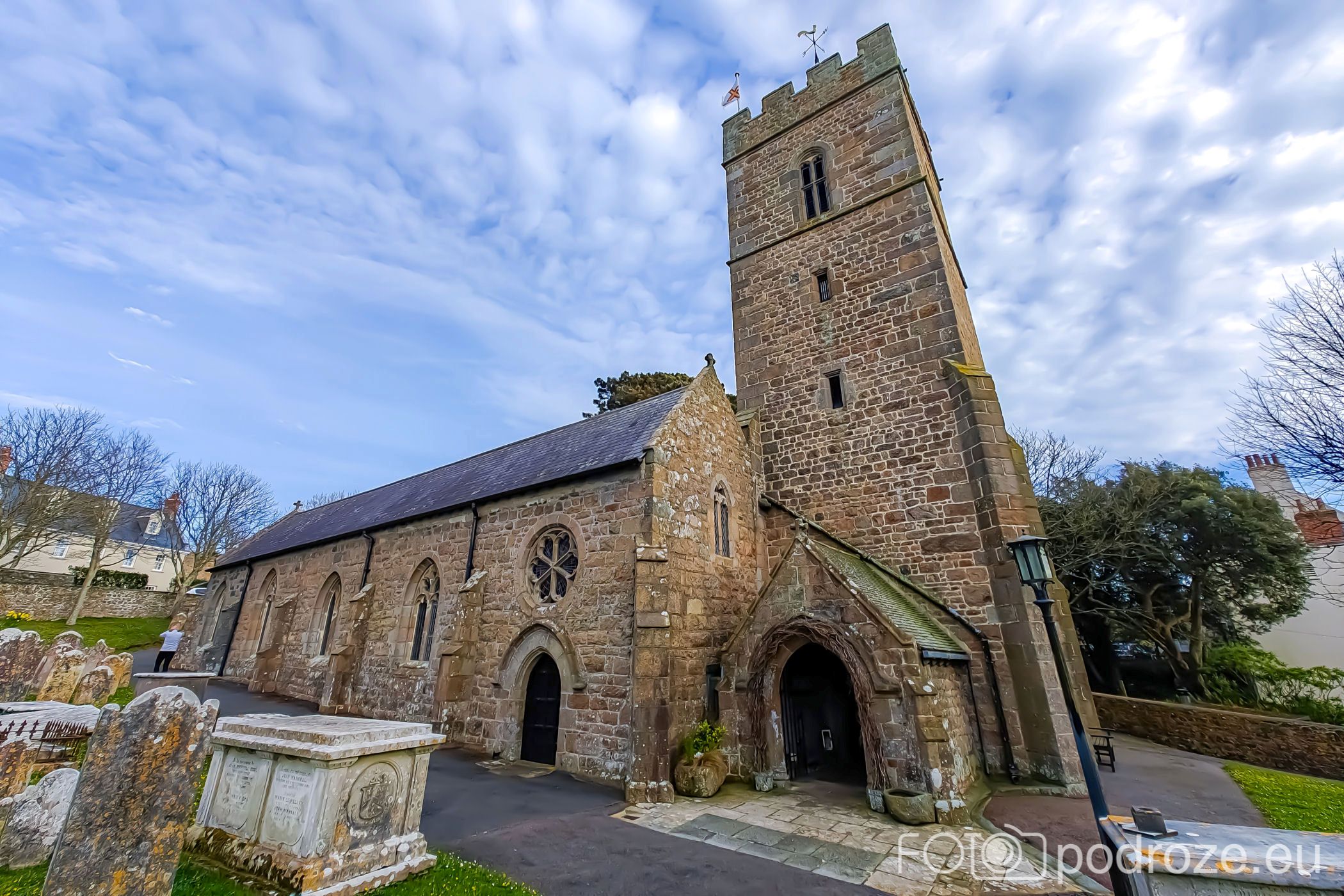 Teraz polecam odbić nieco od wybrzeża, aby obejrzeć świątynie, które z racji swojego wyglądu i historii także zasługują na uwagę. Wieże pierwszego z nich dojrzeliśmy właśnie spod kamiennego domku. Obecna świątynia została zbudowana w 1816–1818 r. według projektu architekta Johna Wilsona, który przybył na Guernsey w 1813 roku i zaprojektował także m.in. St James oraz budynki w St Peter Port. Zastąpiła wcześniejszy kościół, akt jej konsekracji przypada na 4 listopada 1140 r., co potwierdza historia parafii. Charakterystyczną cechą jest okrągła wieża nakryta wysoką, smukłą iglicą. To najwyższa wieża kościelna na wyspie, pełniąca kiedyś rolę punktu orientacyjnego dla marynarzy. Przy świątyni znajdują się trzy dzwony, z których najstarszy pochodzi z 1432 roku. To zresztą najstarszy dzwon na Wyspach Normandzkich .